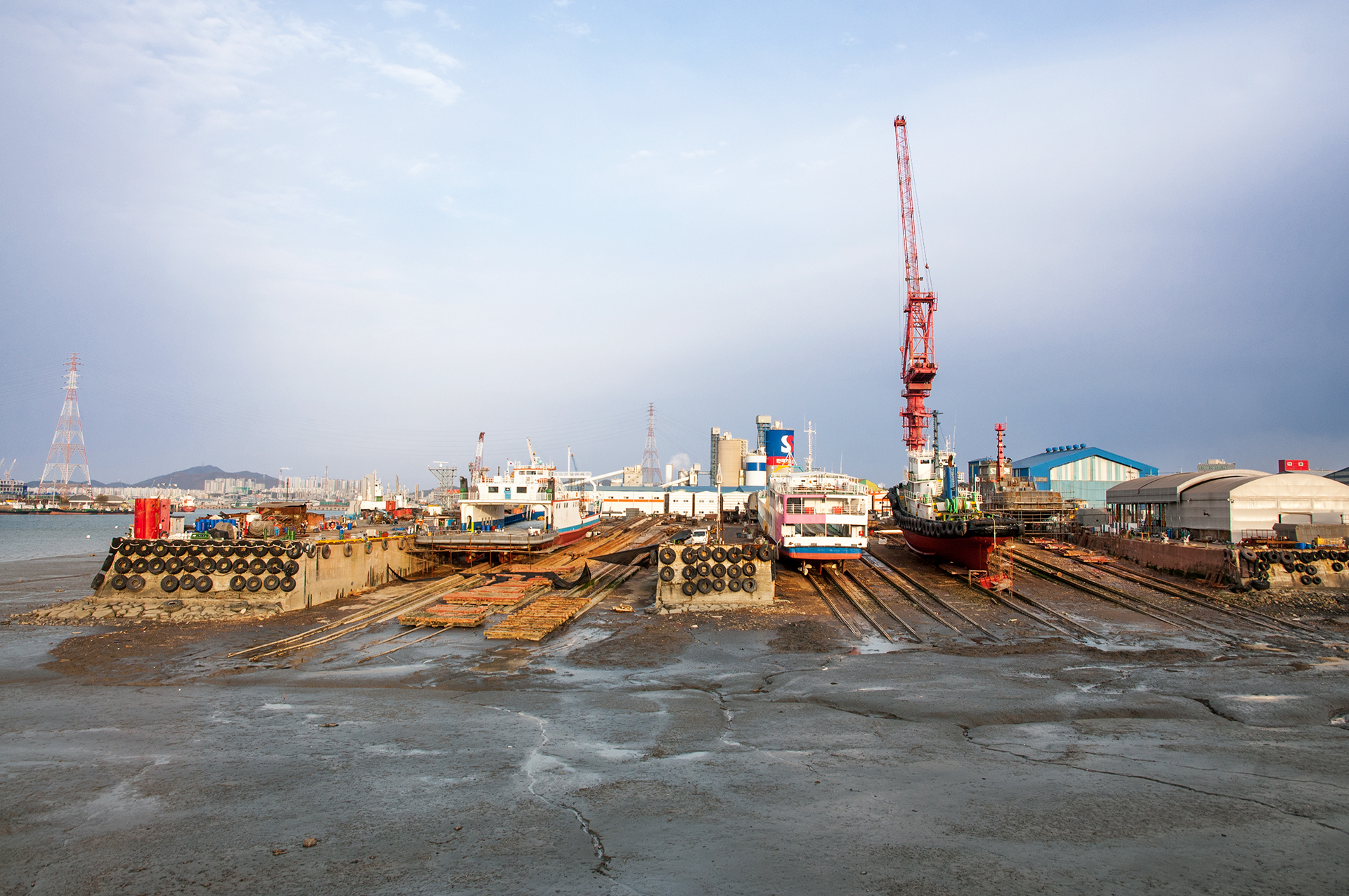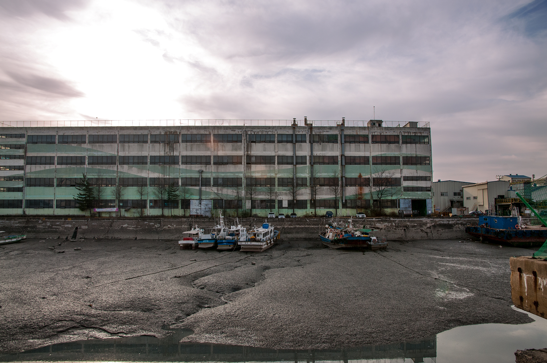 시장 뒷쪽 배가 들어오는 포구가 훤히 보이는 지점에서 바라본 대성목재 공장의 풍경