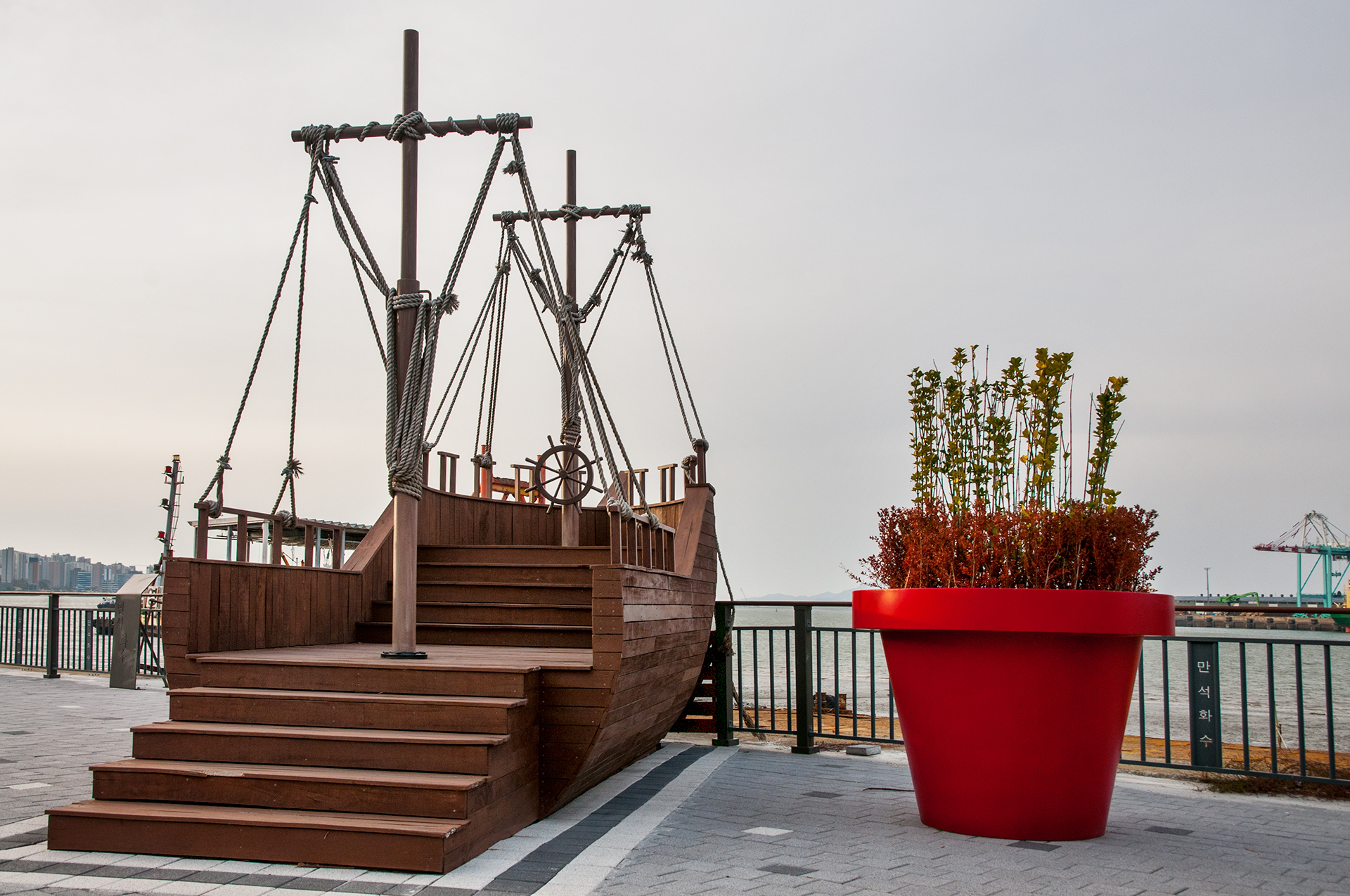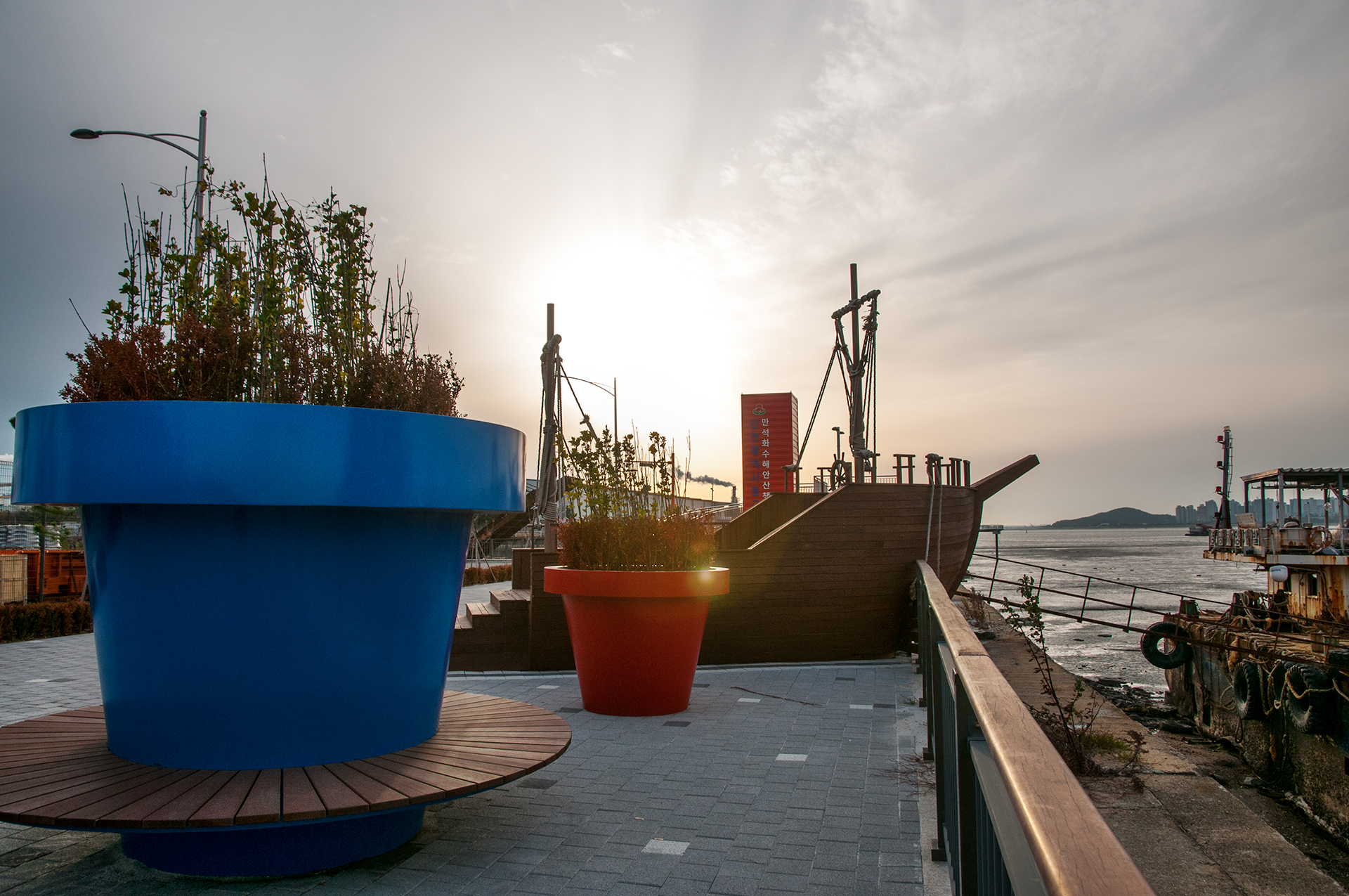 범선 포토존 옆에 대형 화분벤치가 놓아 쉴수 있는 공간도 만들었다.