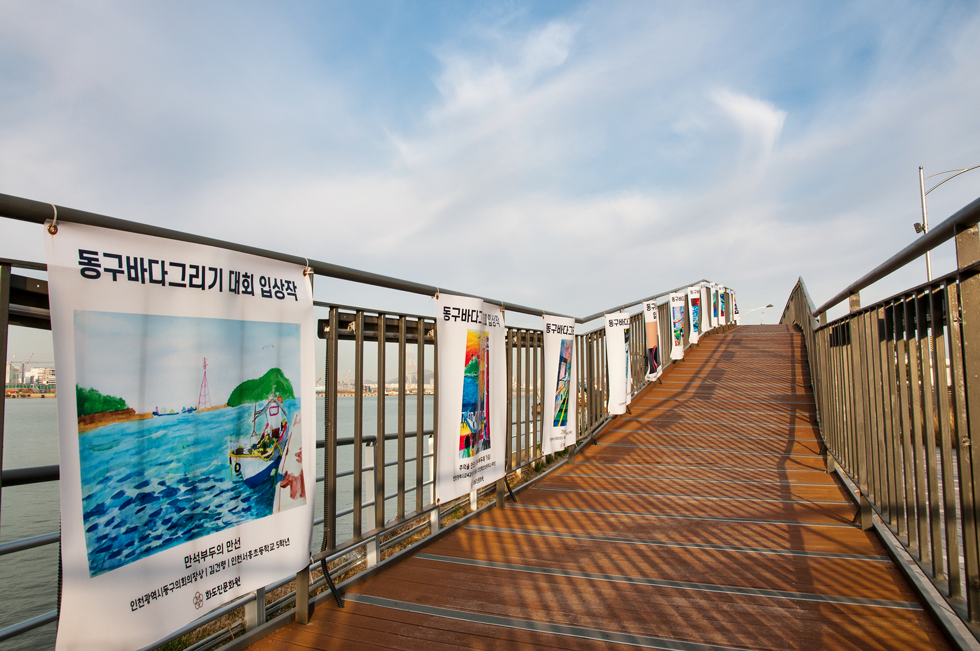 난간에는 동구바다그리기 대회의 작품들이 전시되어 있는데 초등생 치고는 그림 수준이 높아 보인다.