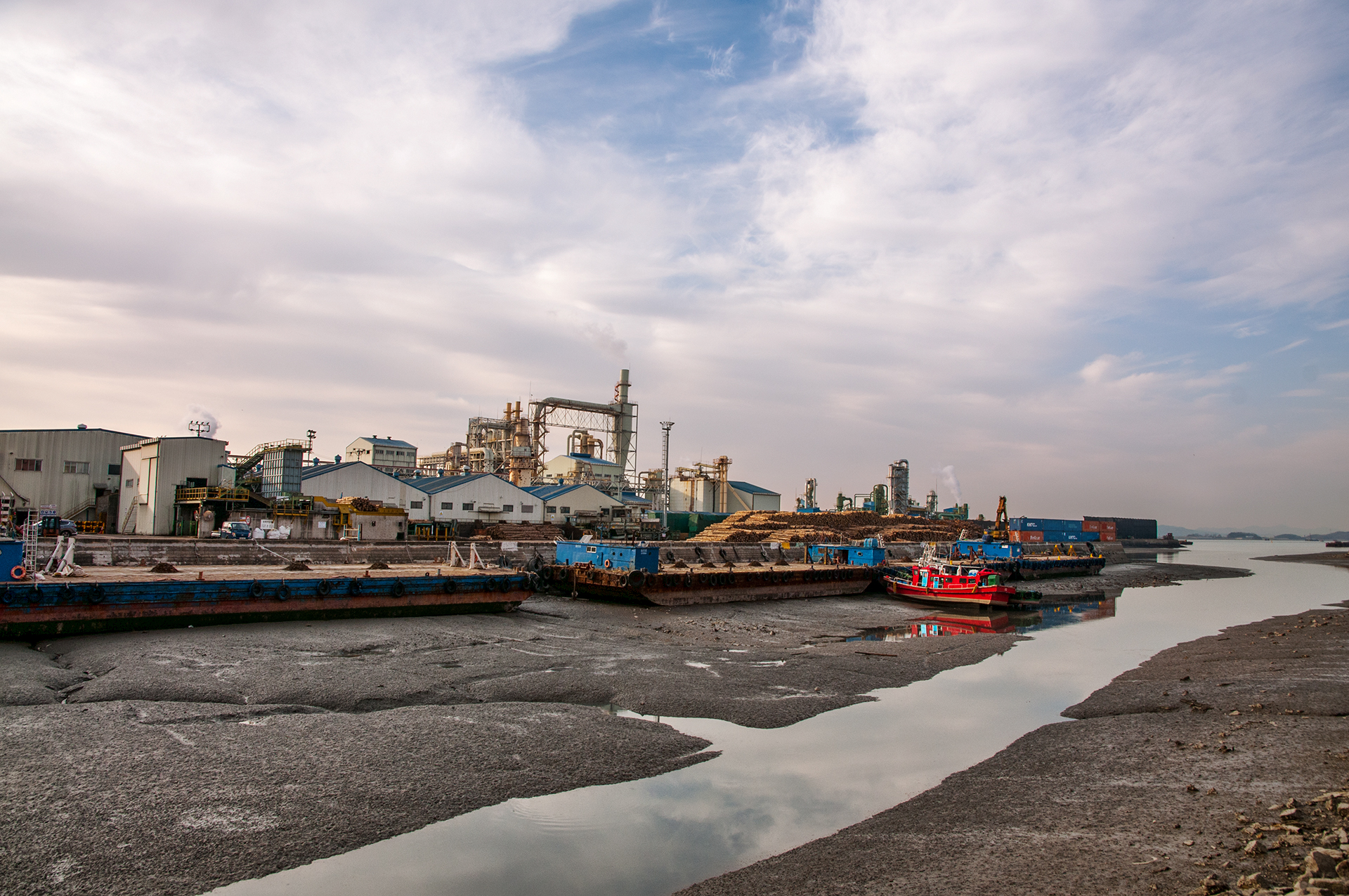 북성포구 일대는 대성목재의 저목장이 위치해 있어 독특한 풍경을 보여주는 곳이다.