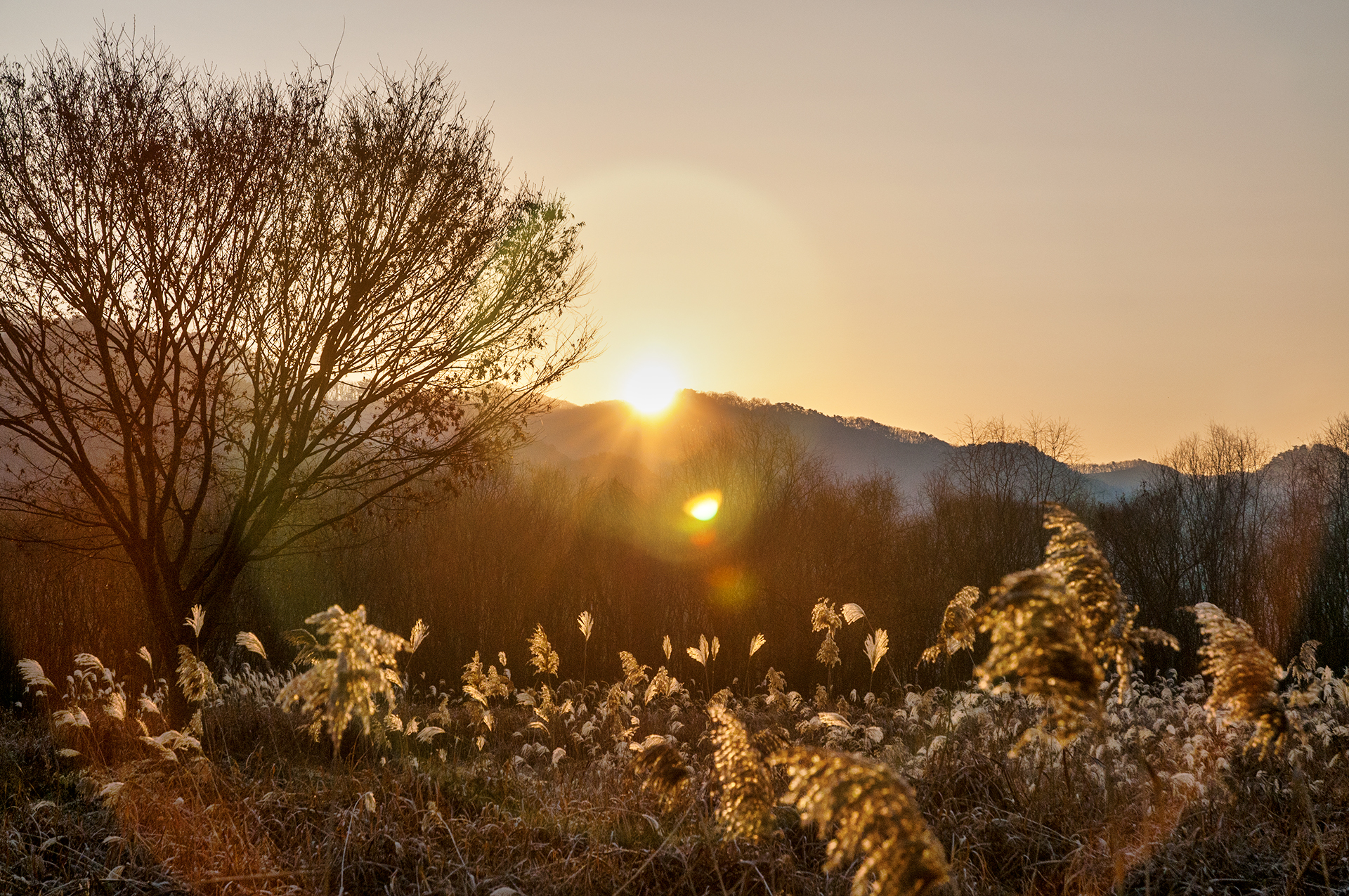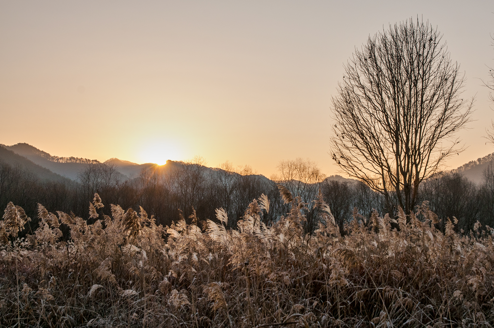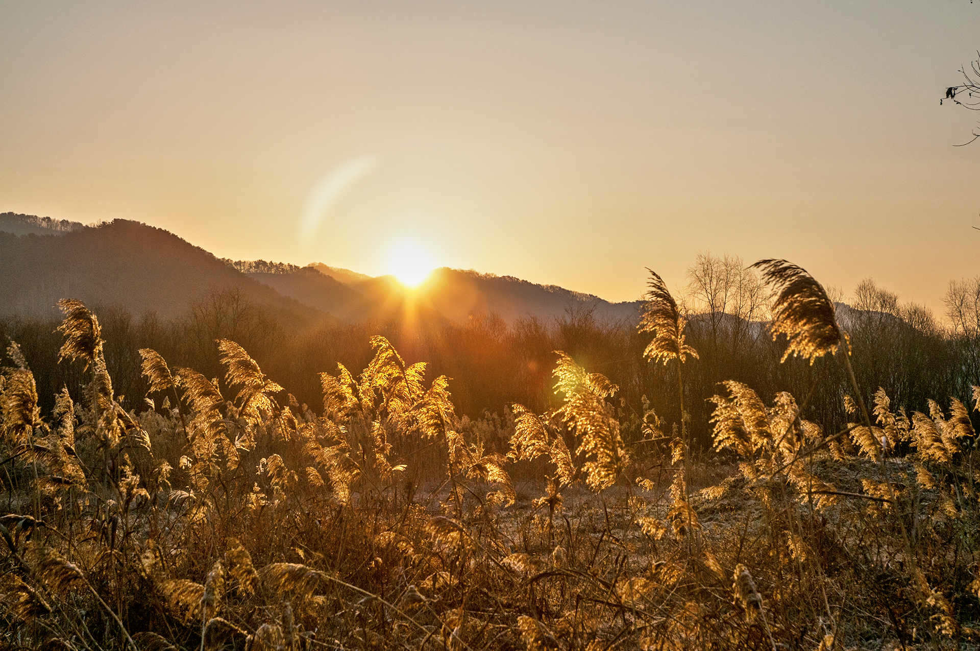갈대도 어느새 아침 햇살에 물이 들고,