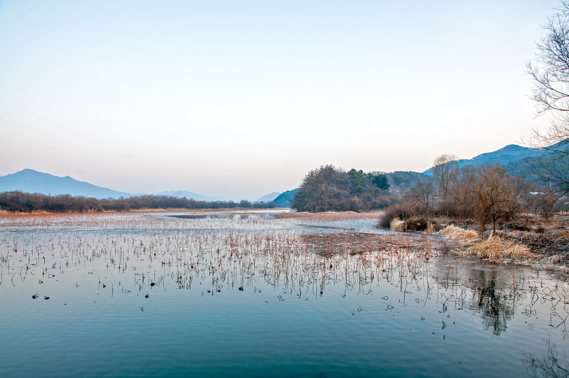 연이 가득했을 팔당호의 겨울 풍경