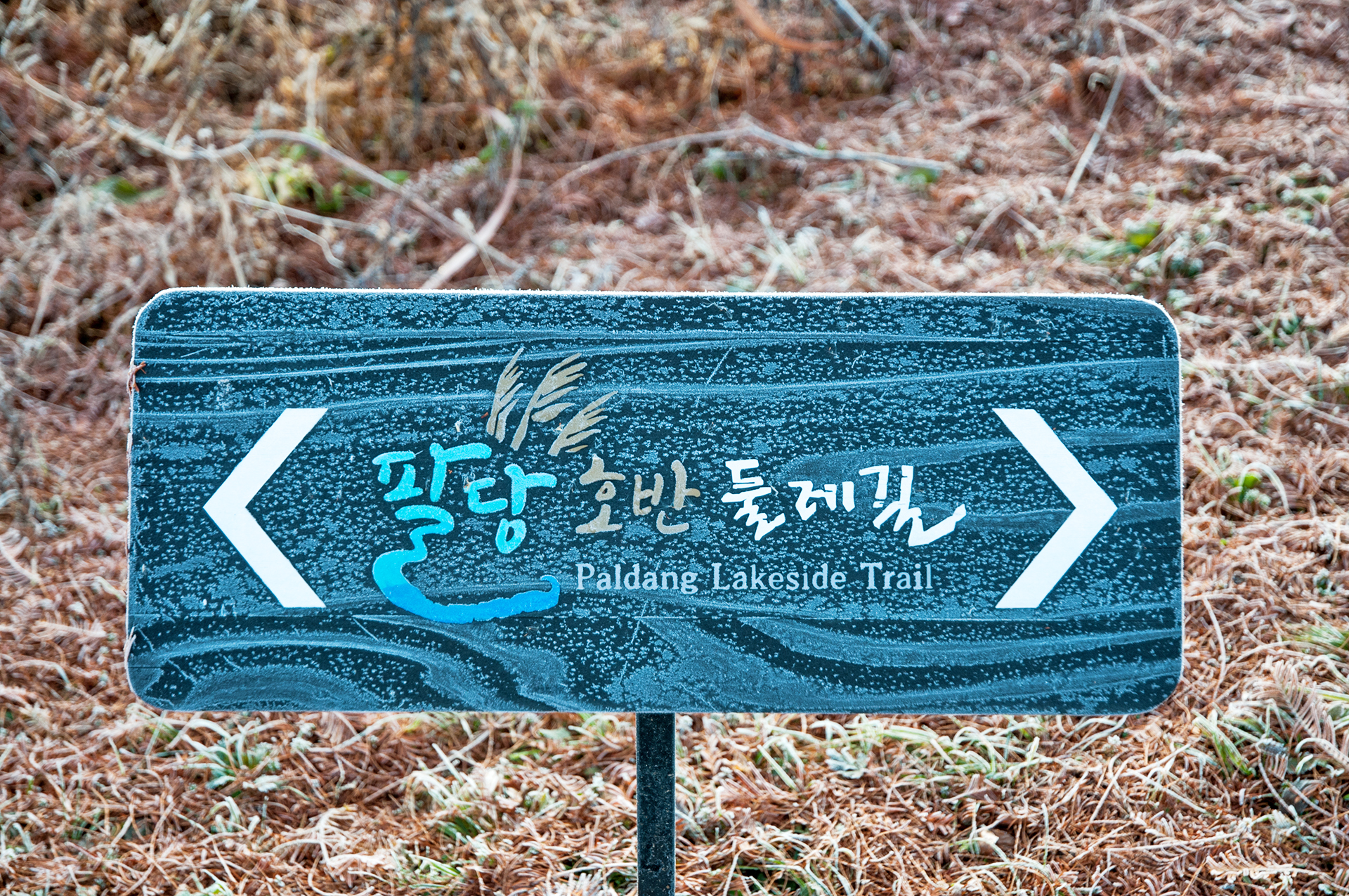 잠시 앉아 쉬어가려다 벤치에 하얀 서리가 잔뜩, 엉덩이가 흠뻑 젖을것만 같아 포기하고,