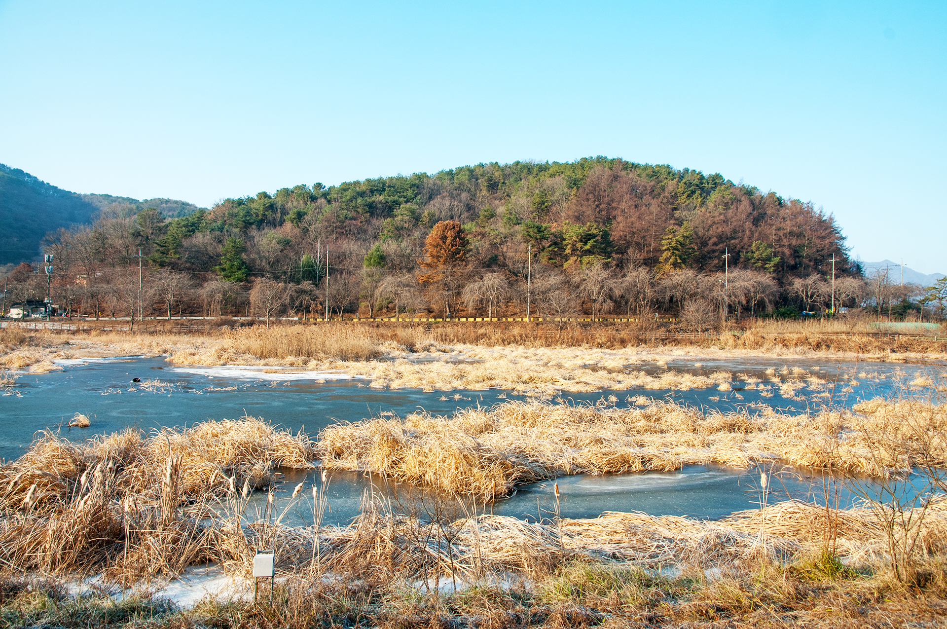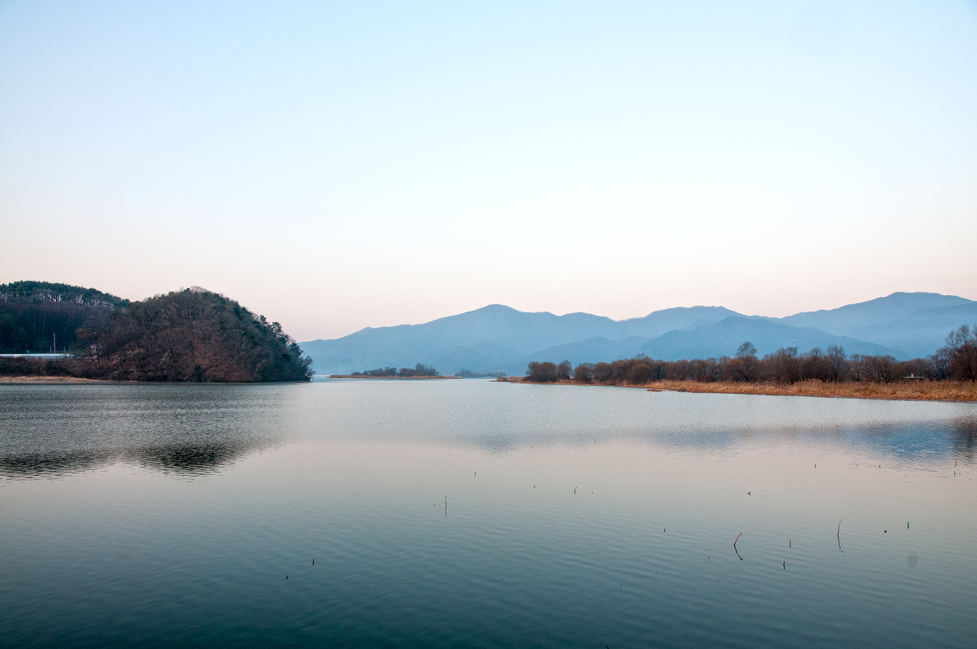 물안개가 피어 오르거나 상고대가 핀다면 좋았을 풍경이다.