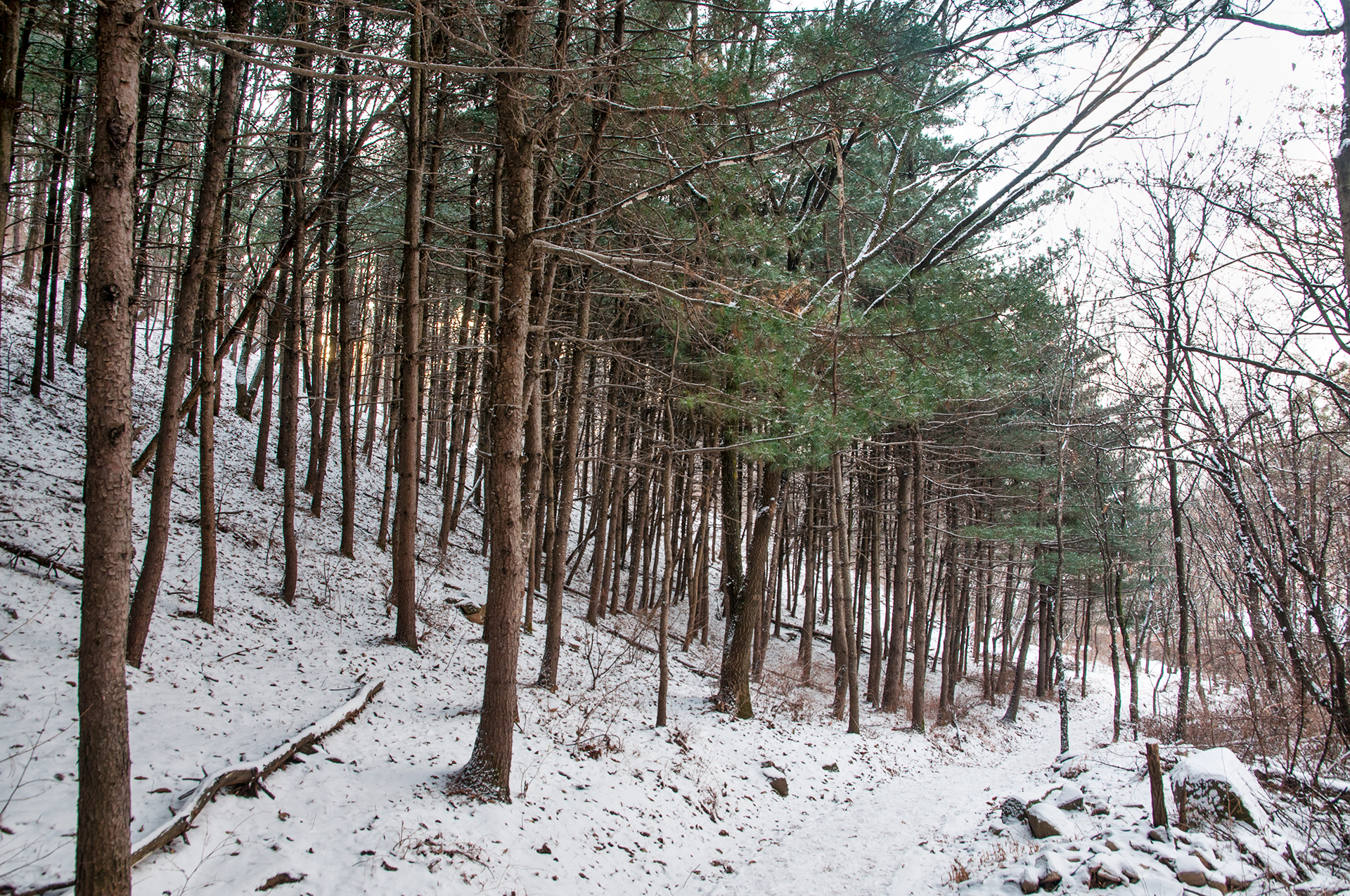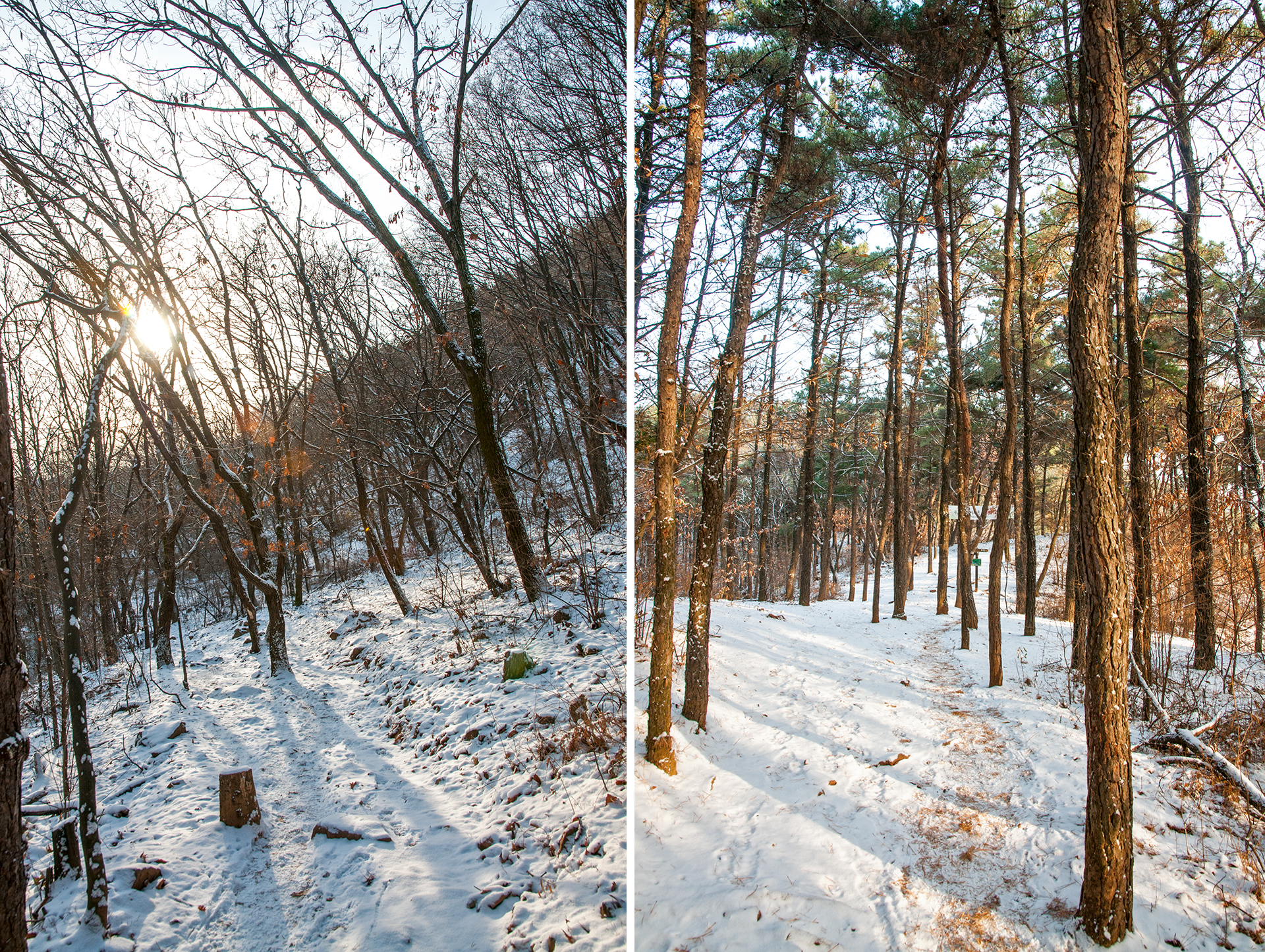 산 위로는 해가 드는데 걷는 길은 산그늘에 가려 추워지다보니 이제부터는 조금도 속도를 올려야겠다.
