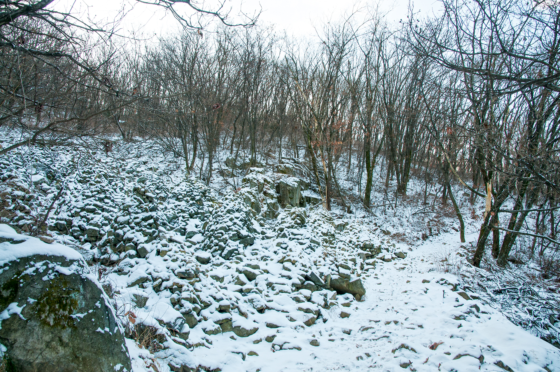 내리막길로 내려가는 길이라 편하지만 너덜길이라 눈 아래 돌을 밟을때 조심해야 한다.