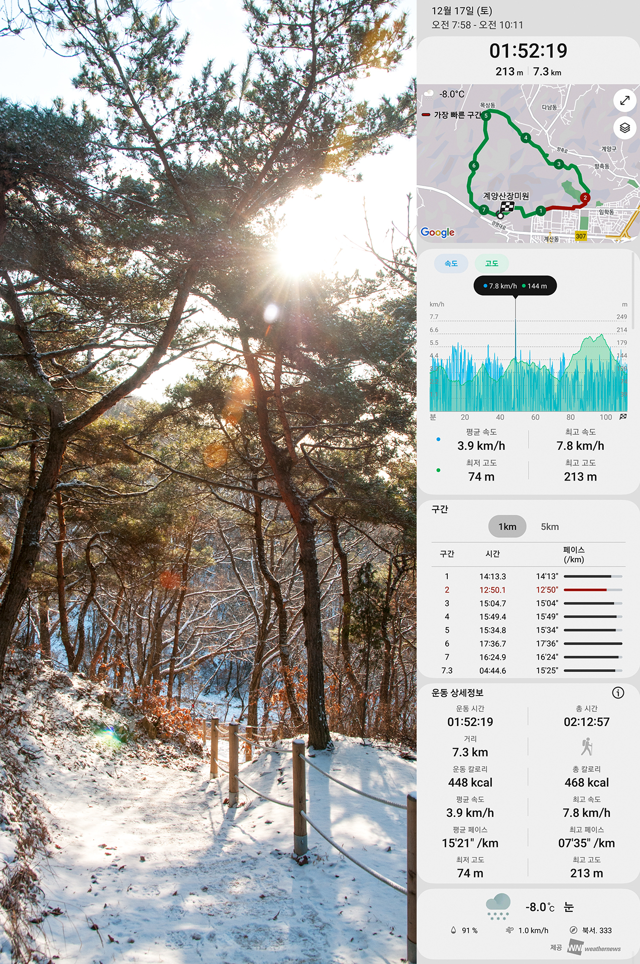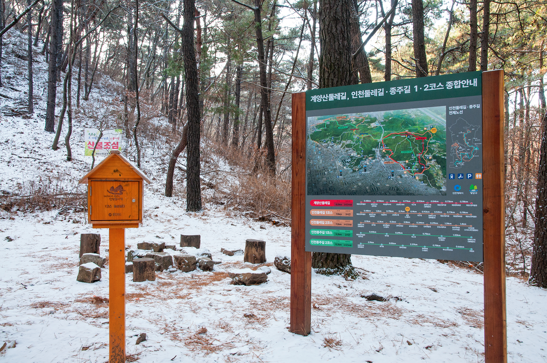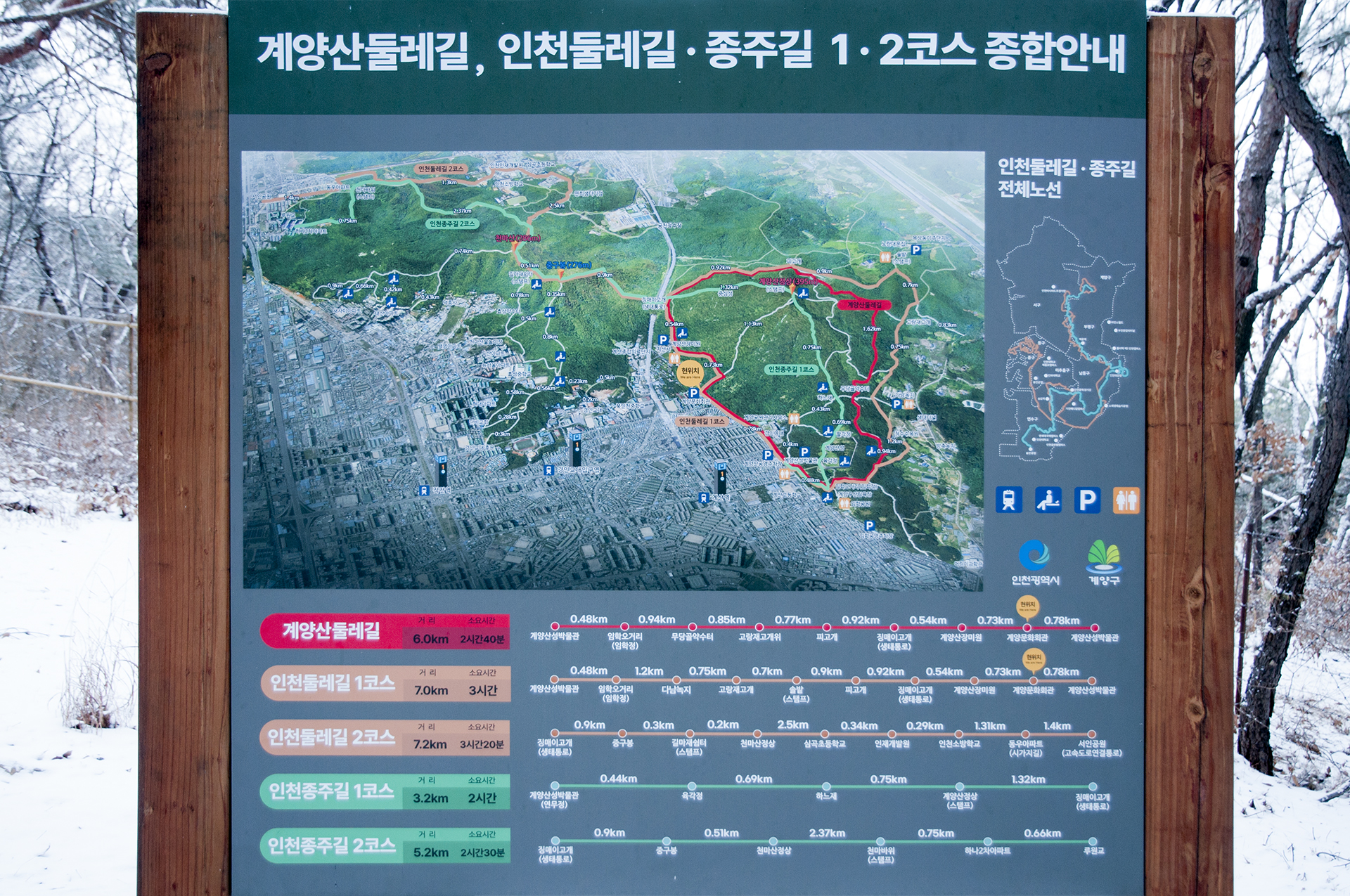 다시 걷고싶게 만드는 풍경을 뒤로하고, 눈 내린 아침 계양산 둘레길을 종료한다.