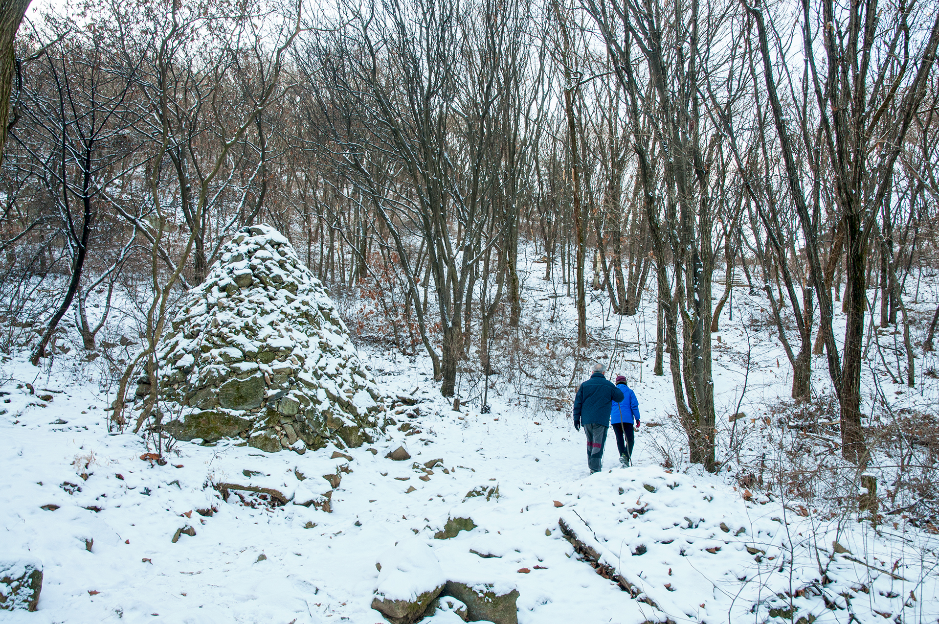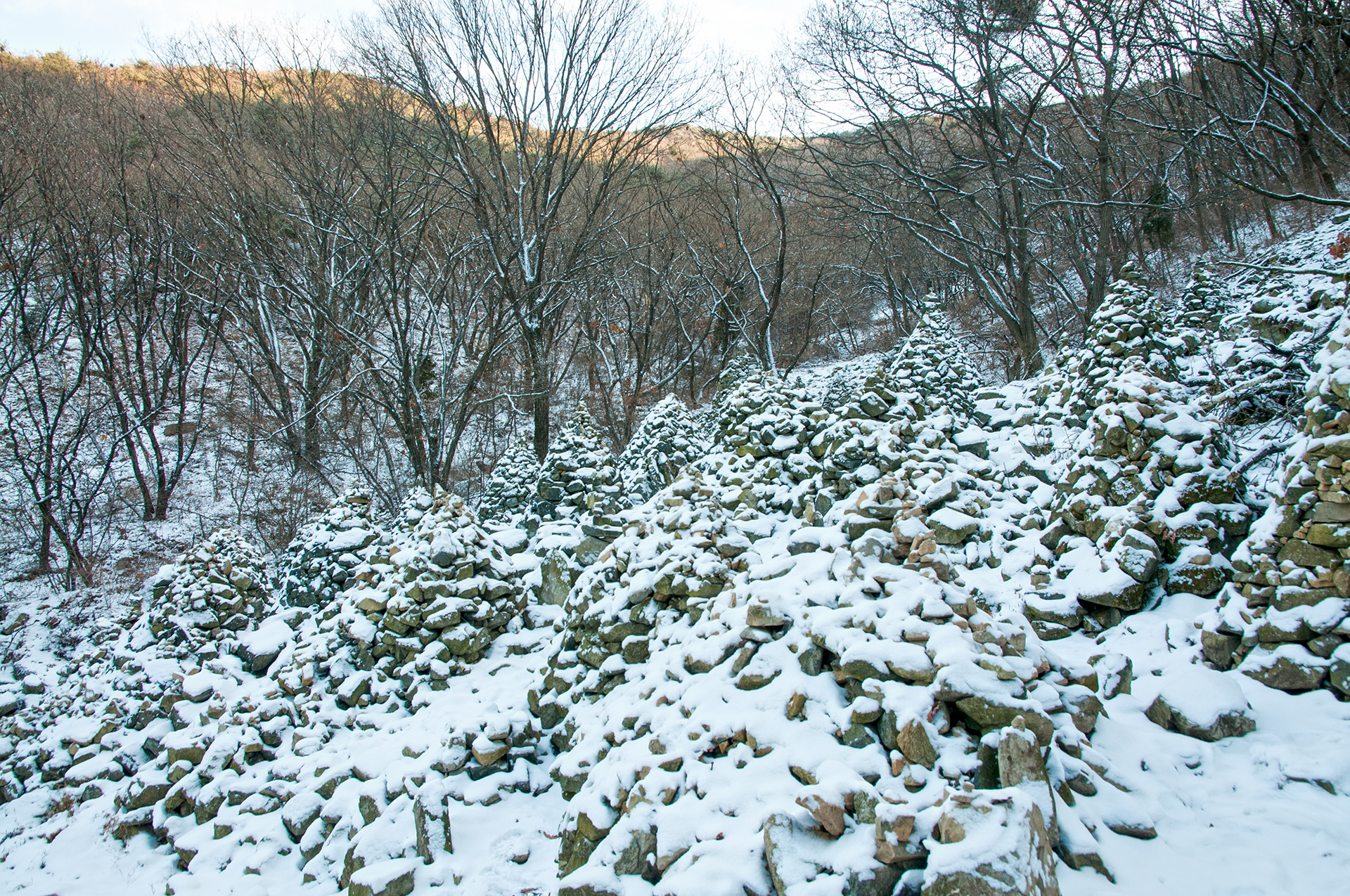 눈이 덮여 있어 돌탑이라고 하기에는 쉽게 알아볼수 없는 풍경이다.