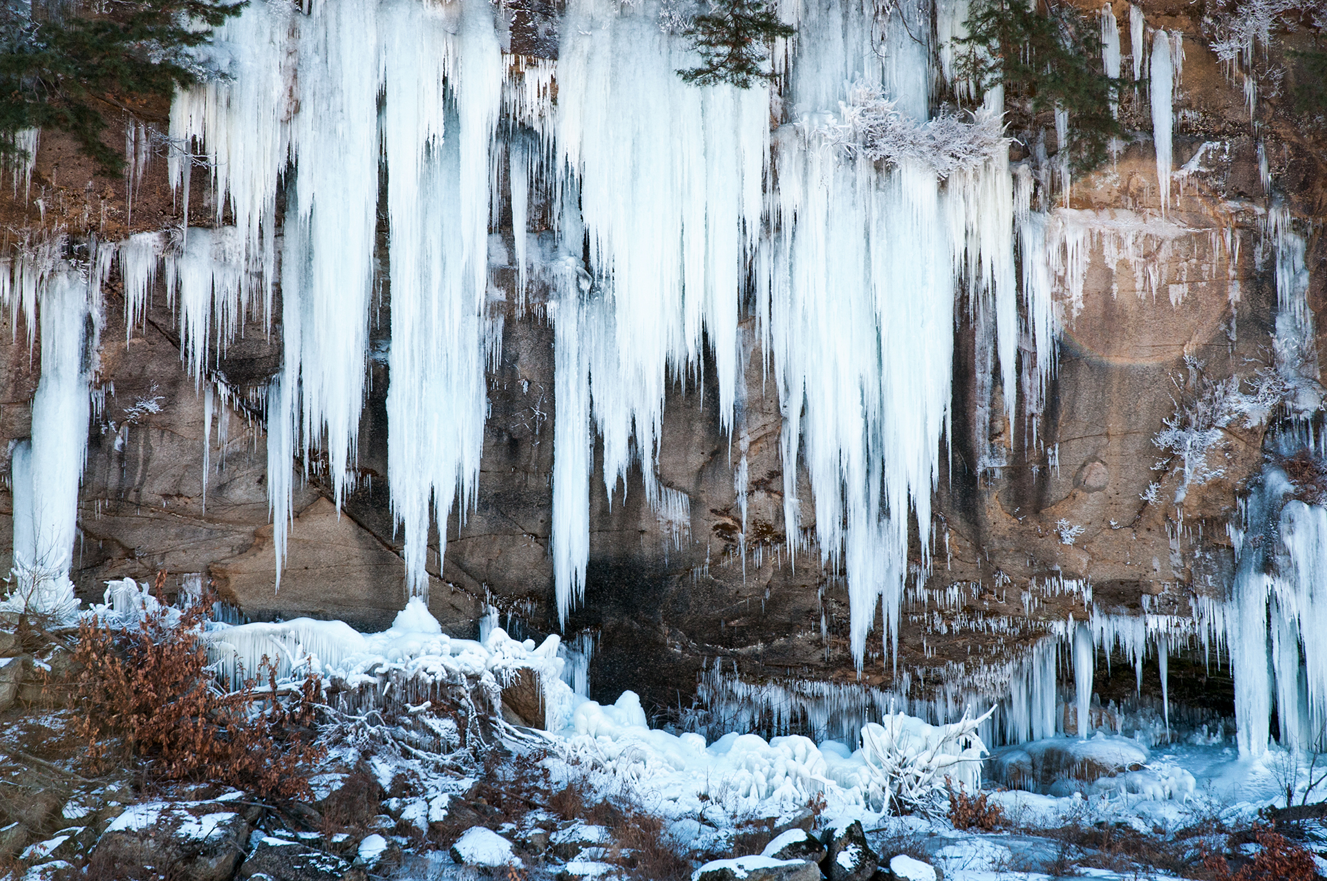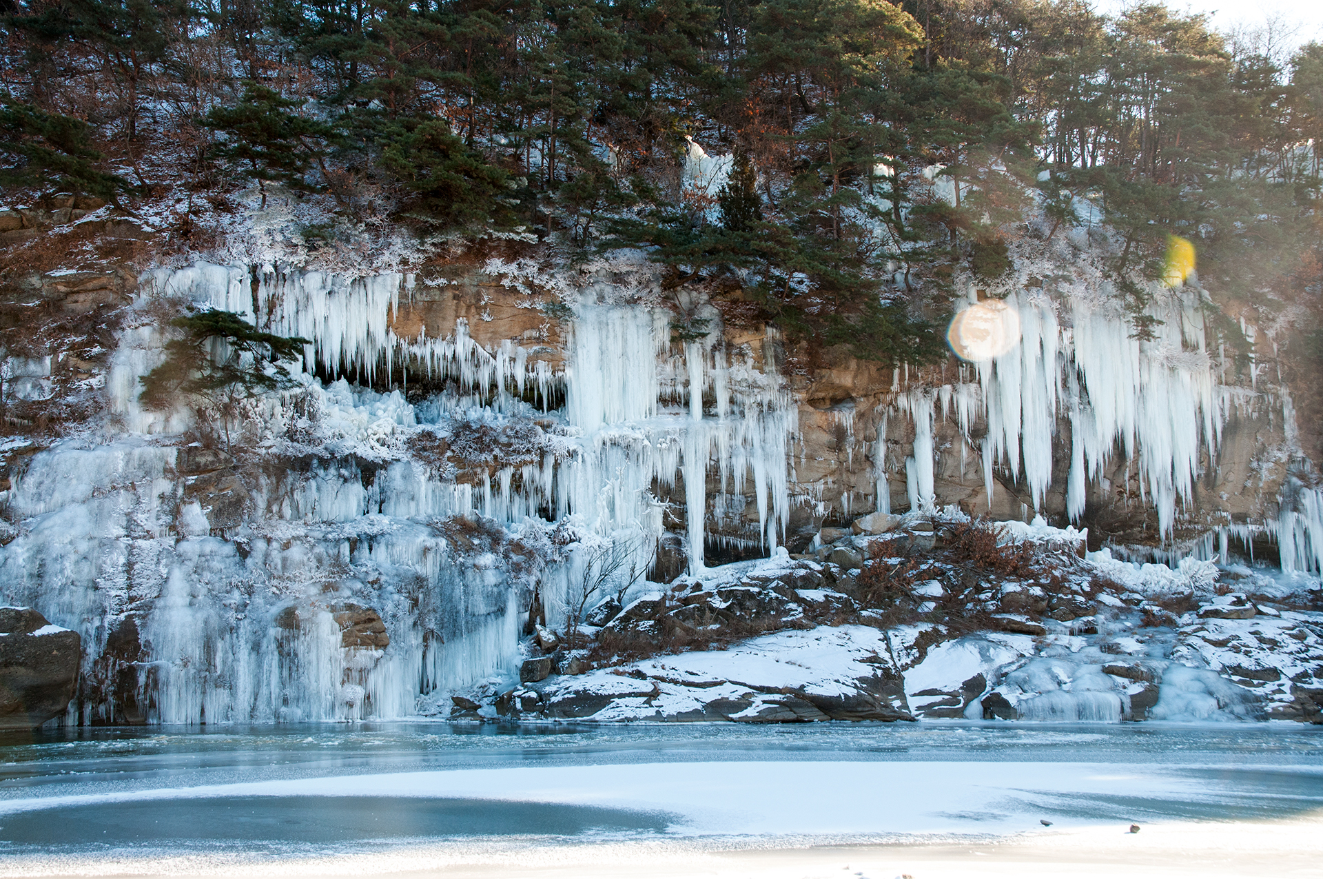 조금더 당겨 찍어보니 고드름과 얼음 기둥이 날카롭게 절경을 연출해 준다.