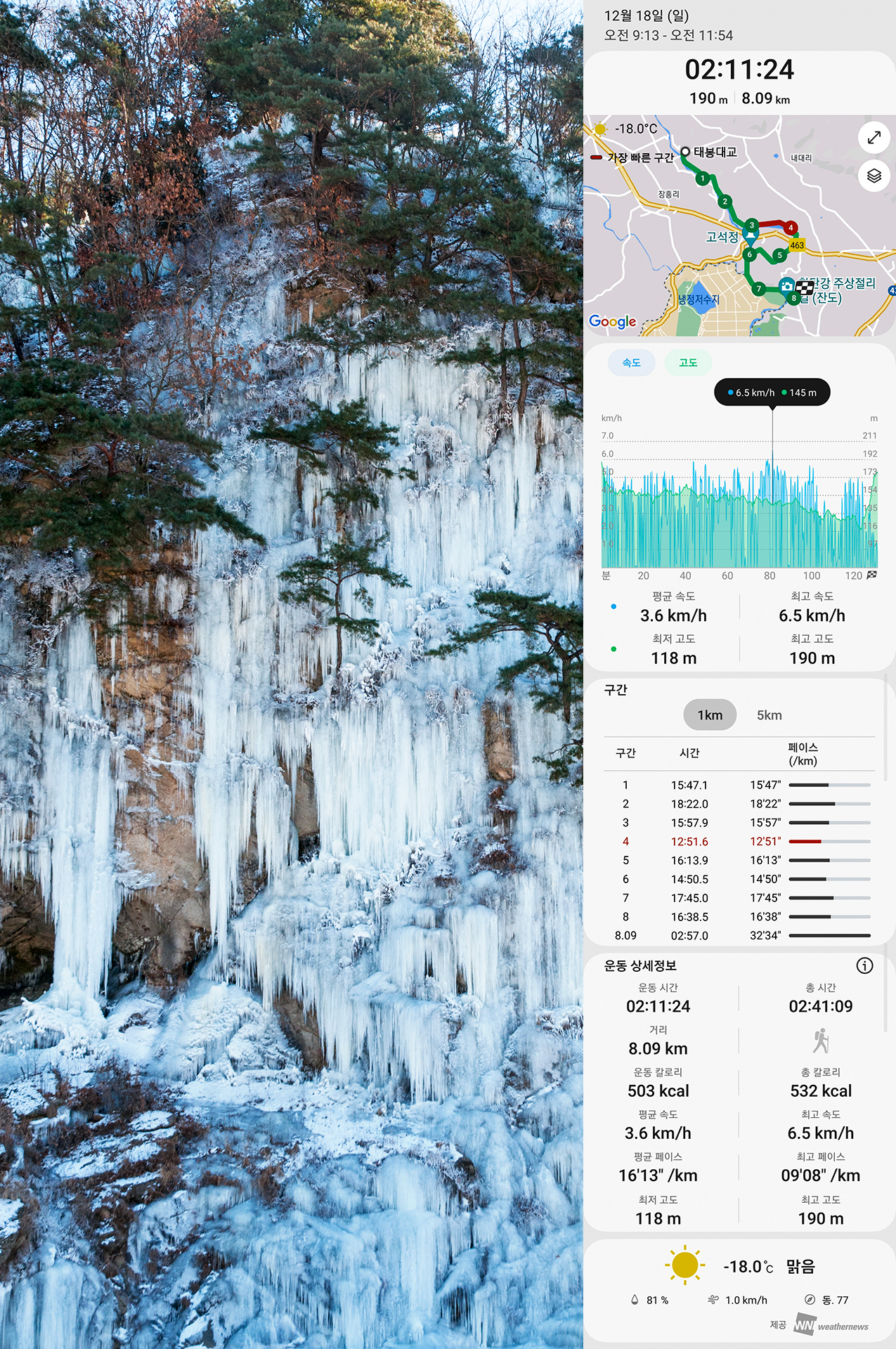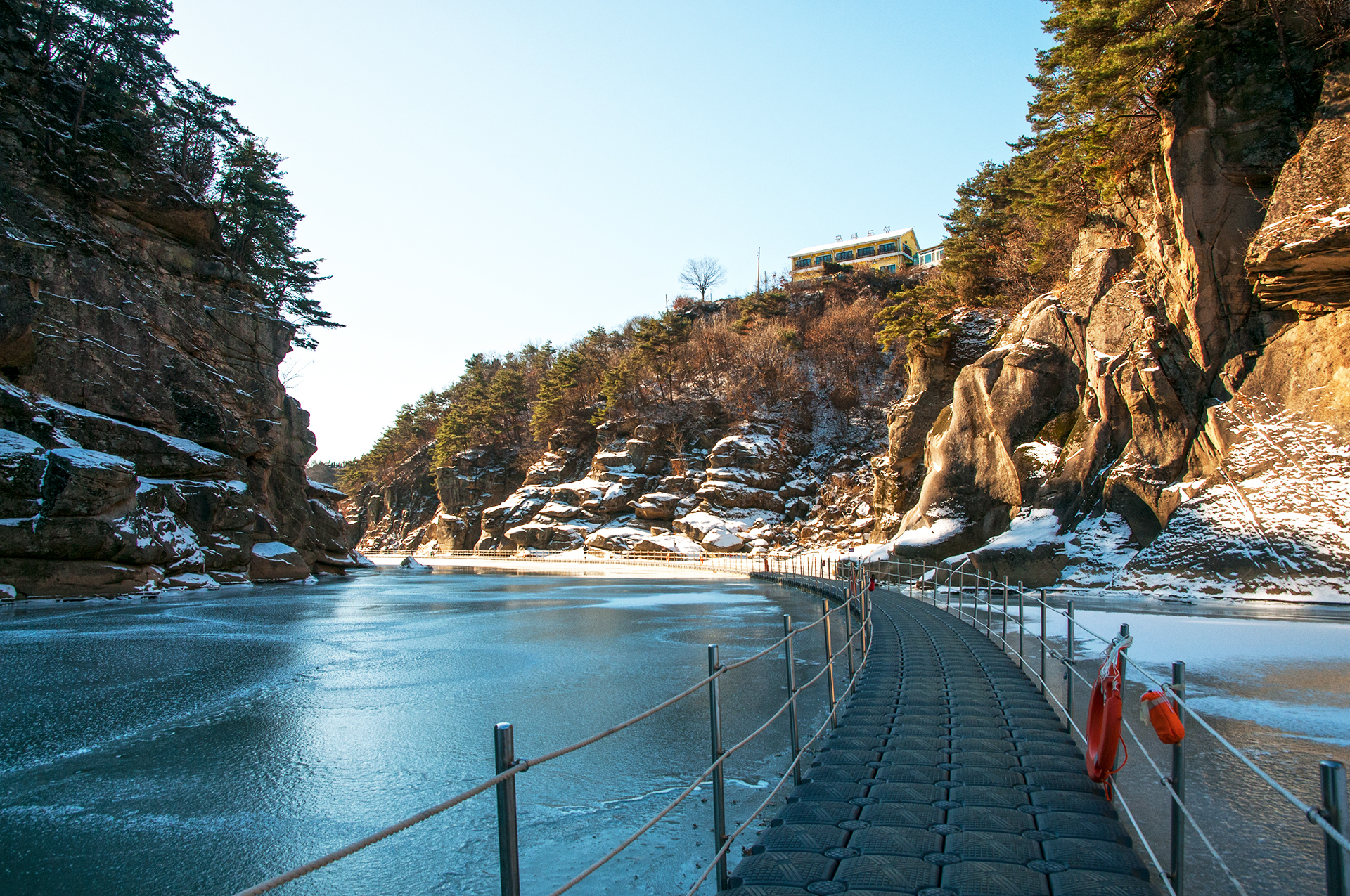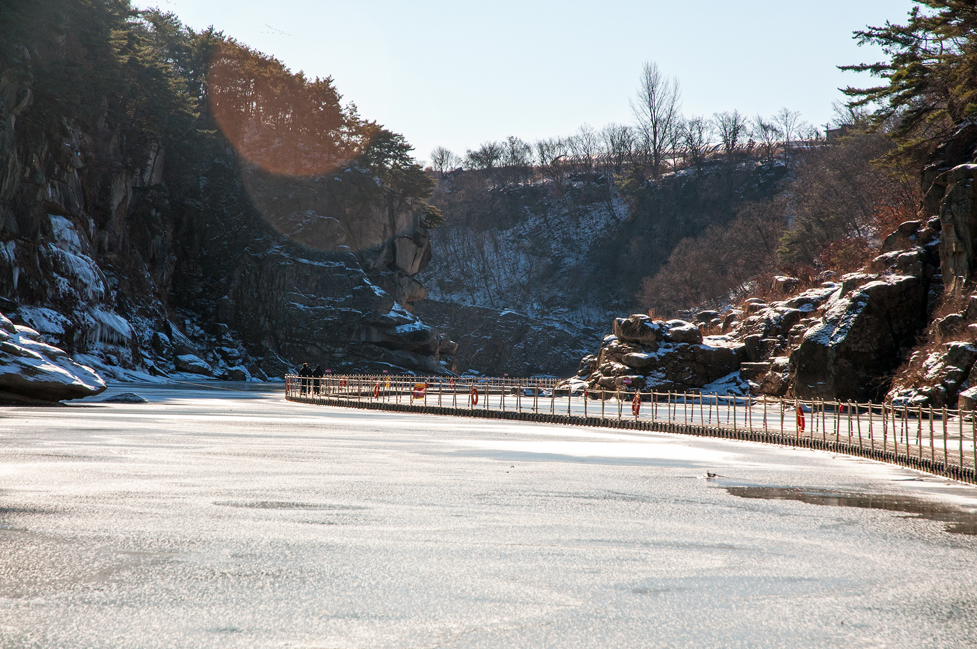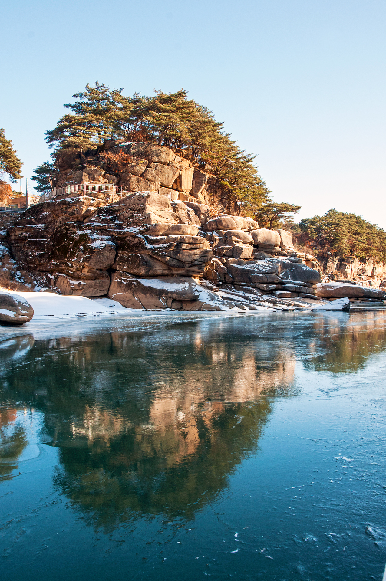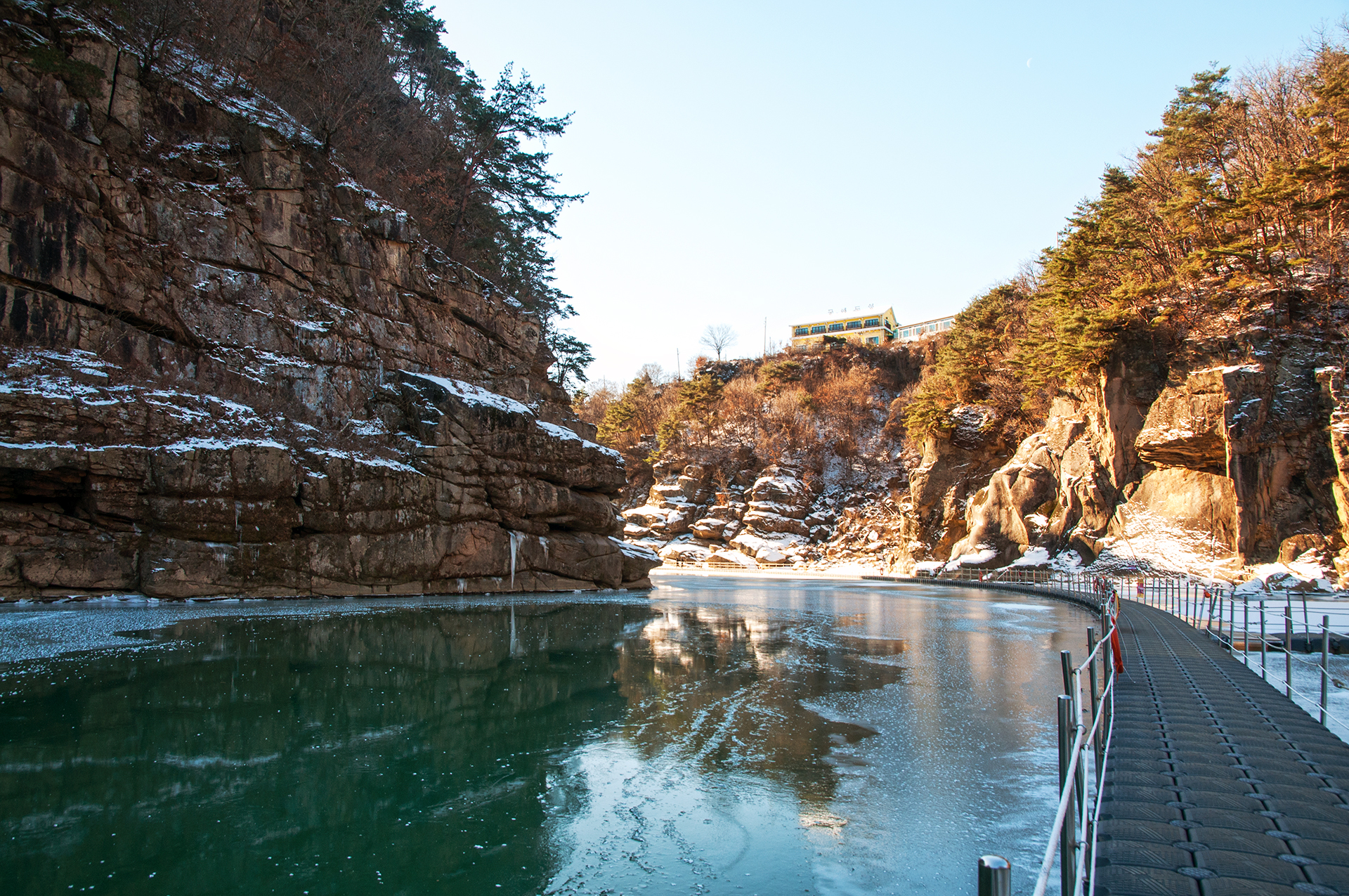 인공으로 조성한 빙벽이겠지만 물윗길만이 갖는 자연스러워 보이는 풍경이라 할수 있다.