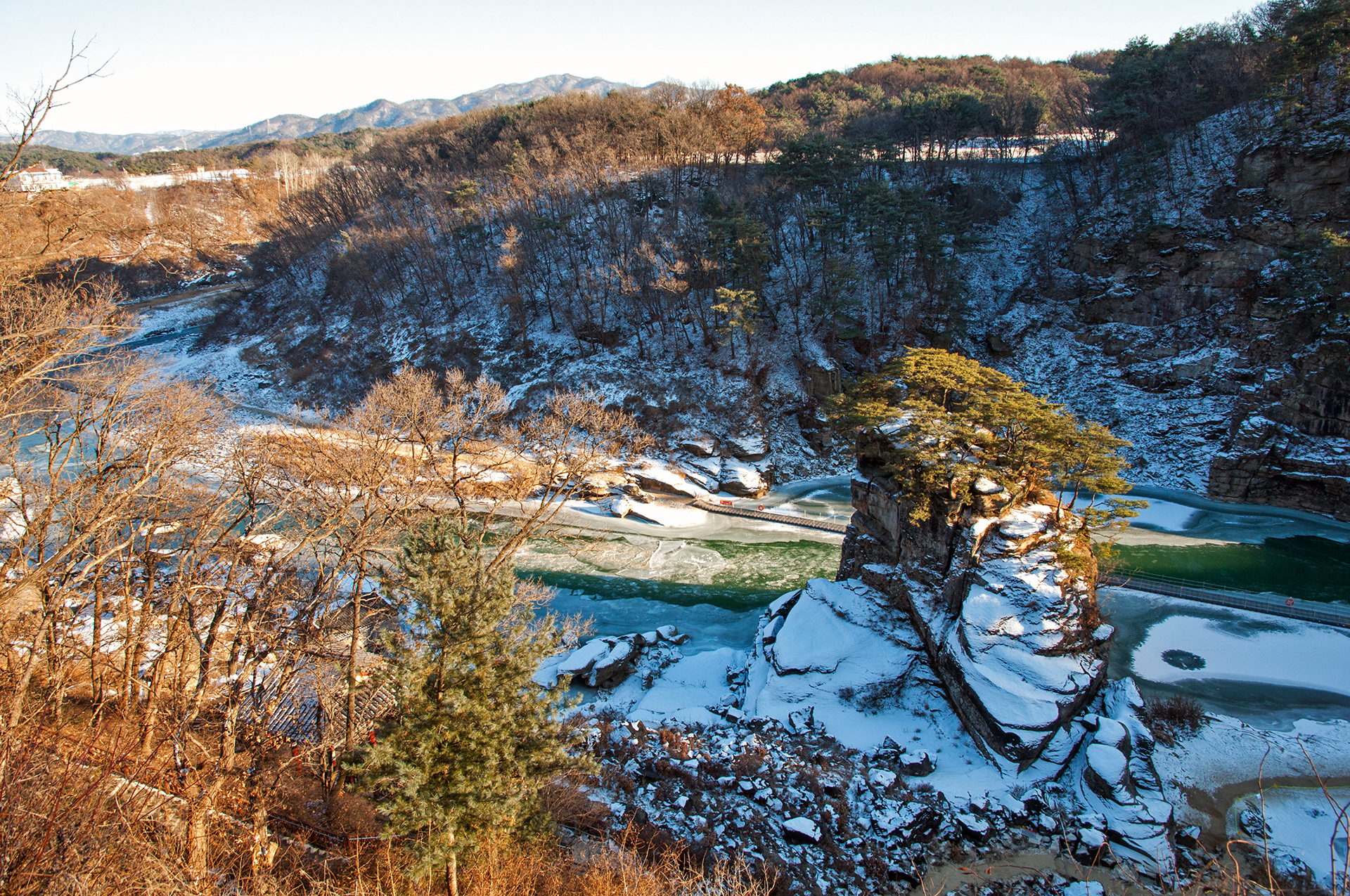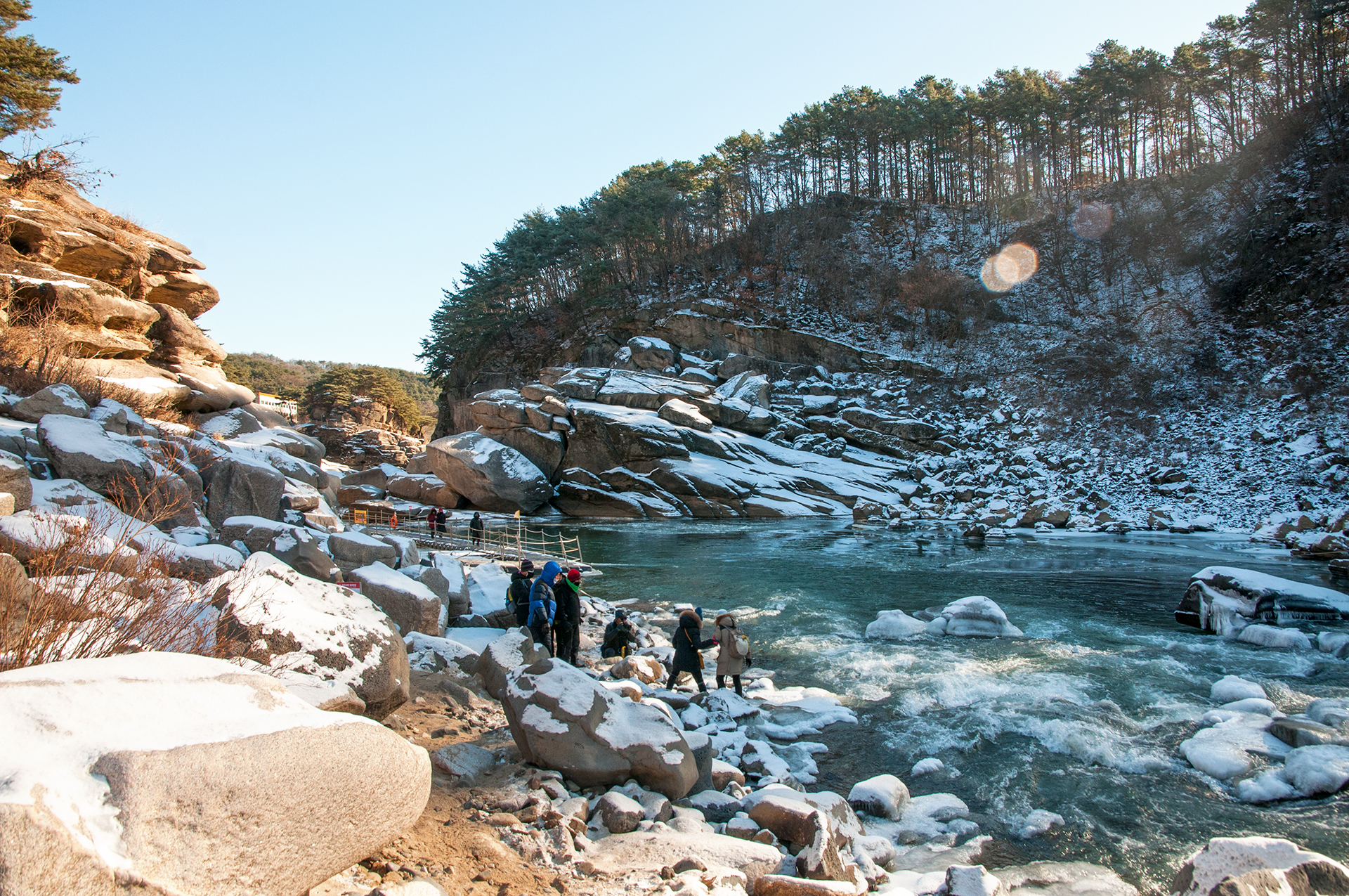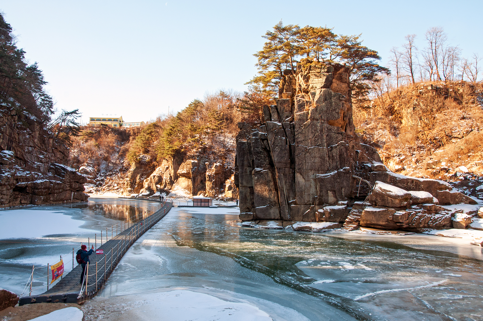 승일교 옆의 산 절벽에는 빙벽이 만들어져 많은 사람들이 사진을 찍으며 쉬어가는 곳이다.