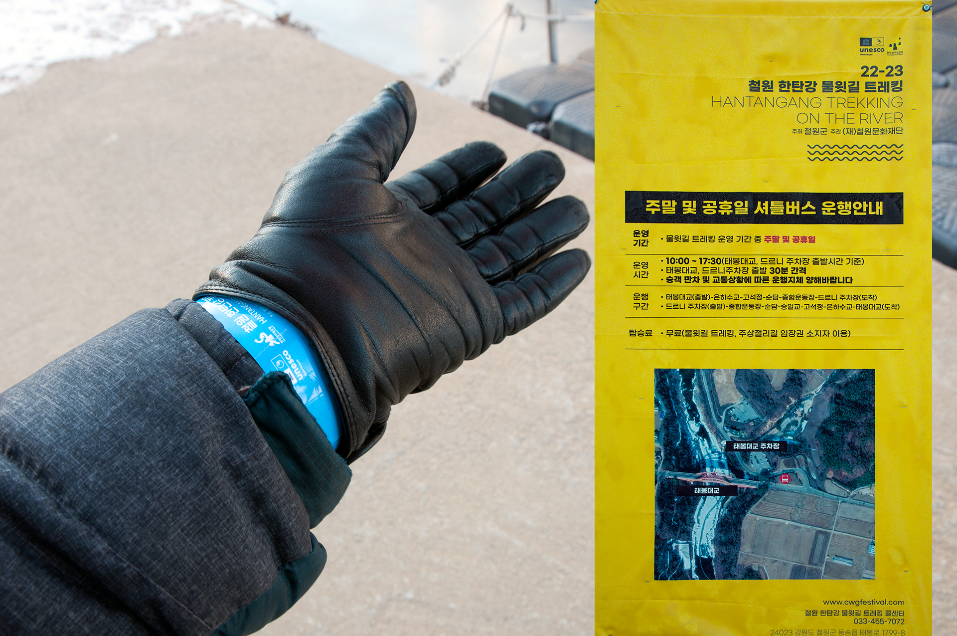 * 손목 띠지를 보여준후 다시 물윗길을 역방향으로 걸어 고석정까지 걸은후 셔틀버스를 이용해도 된다.