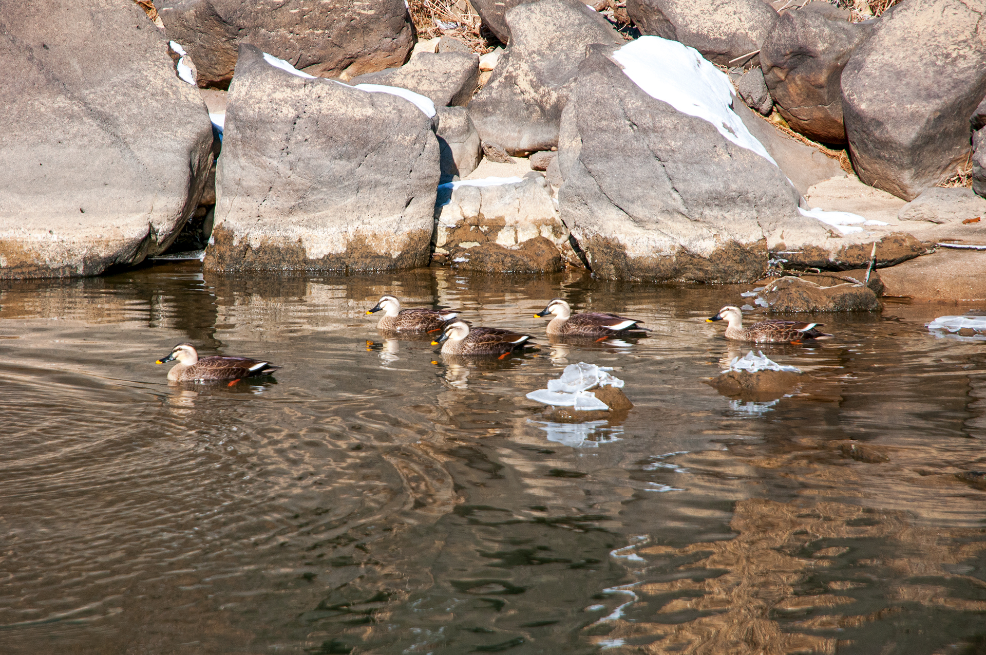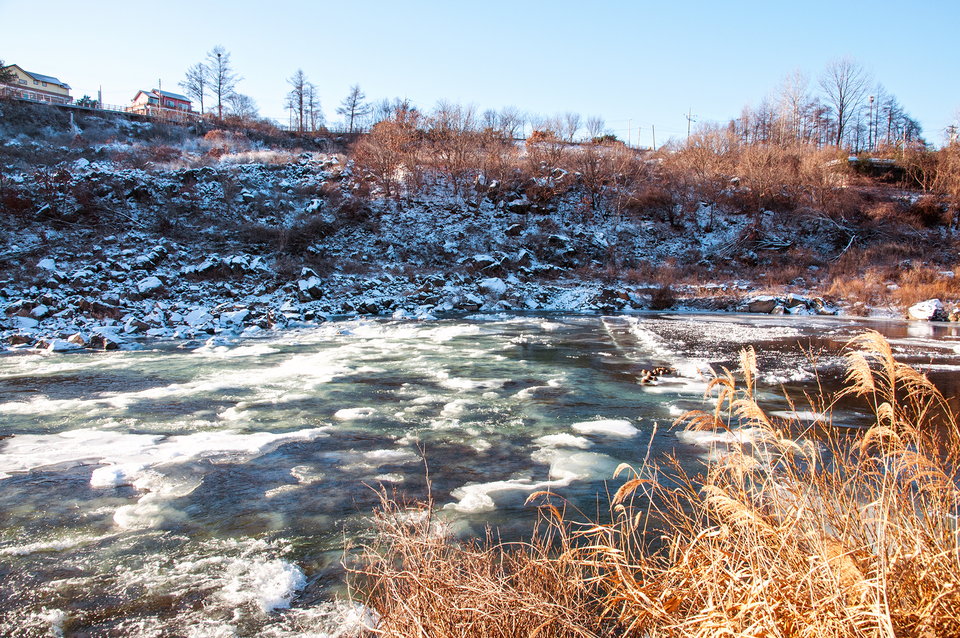 물살이 센 구간이라 쉽게 얼지 않을것처럼 보이는데 군데군데 얼음덩이를 형성하고 있다.