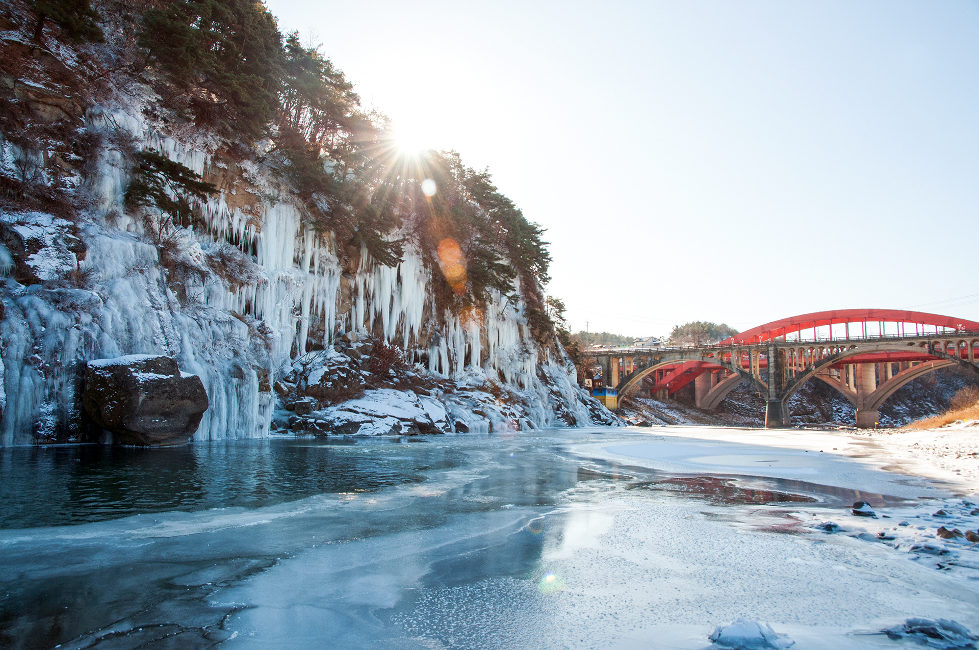 빙벽 바로 옆에 승일교가 있는데, 북한이 착공해서 남한이 완공한 다리라고 한다.