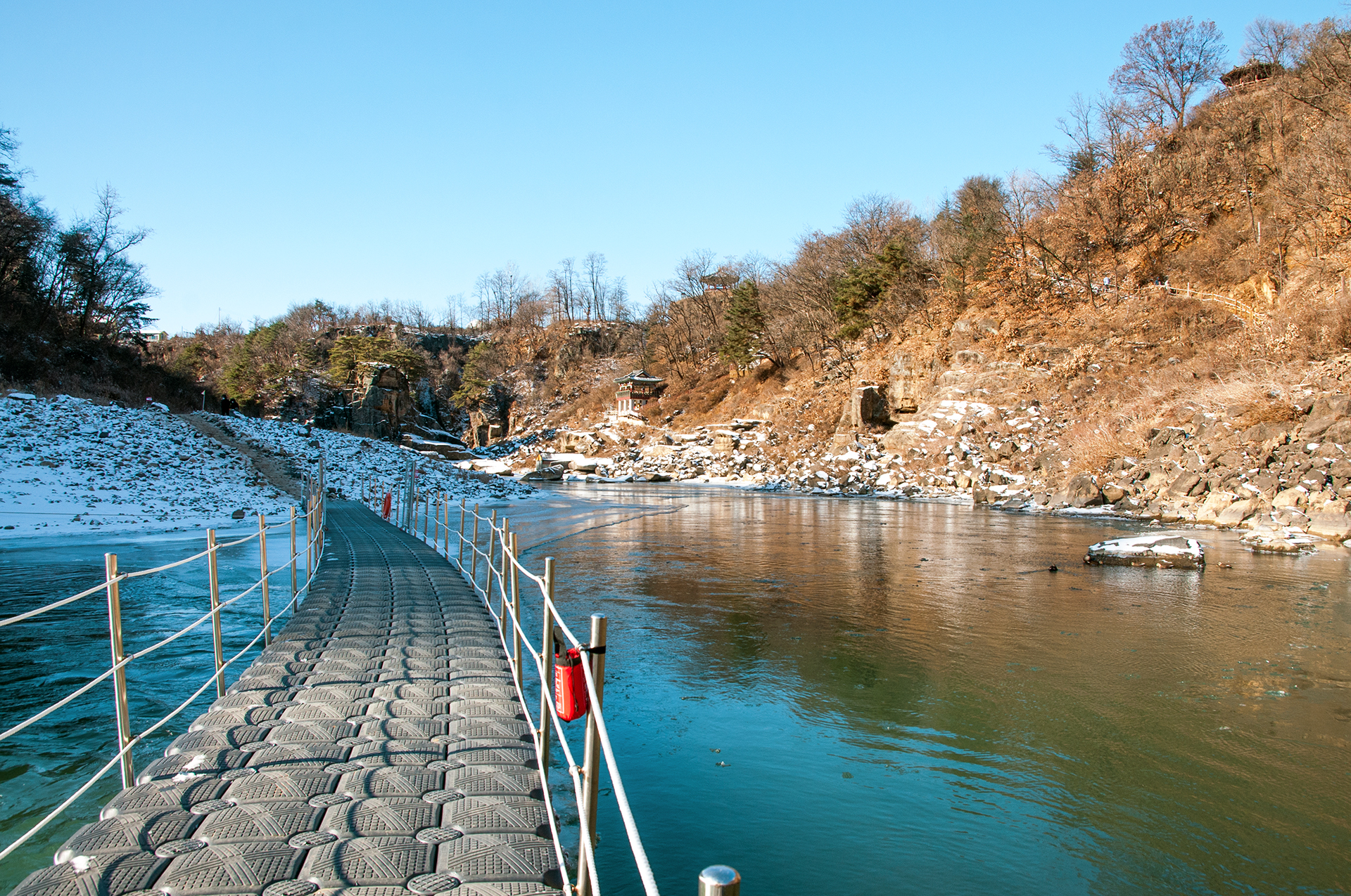 물살이 빠른 구간이지만 부교가 설치되어 있어 조금은 더 편하게 풍경들을 즐길 수가 있다.