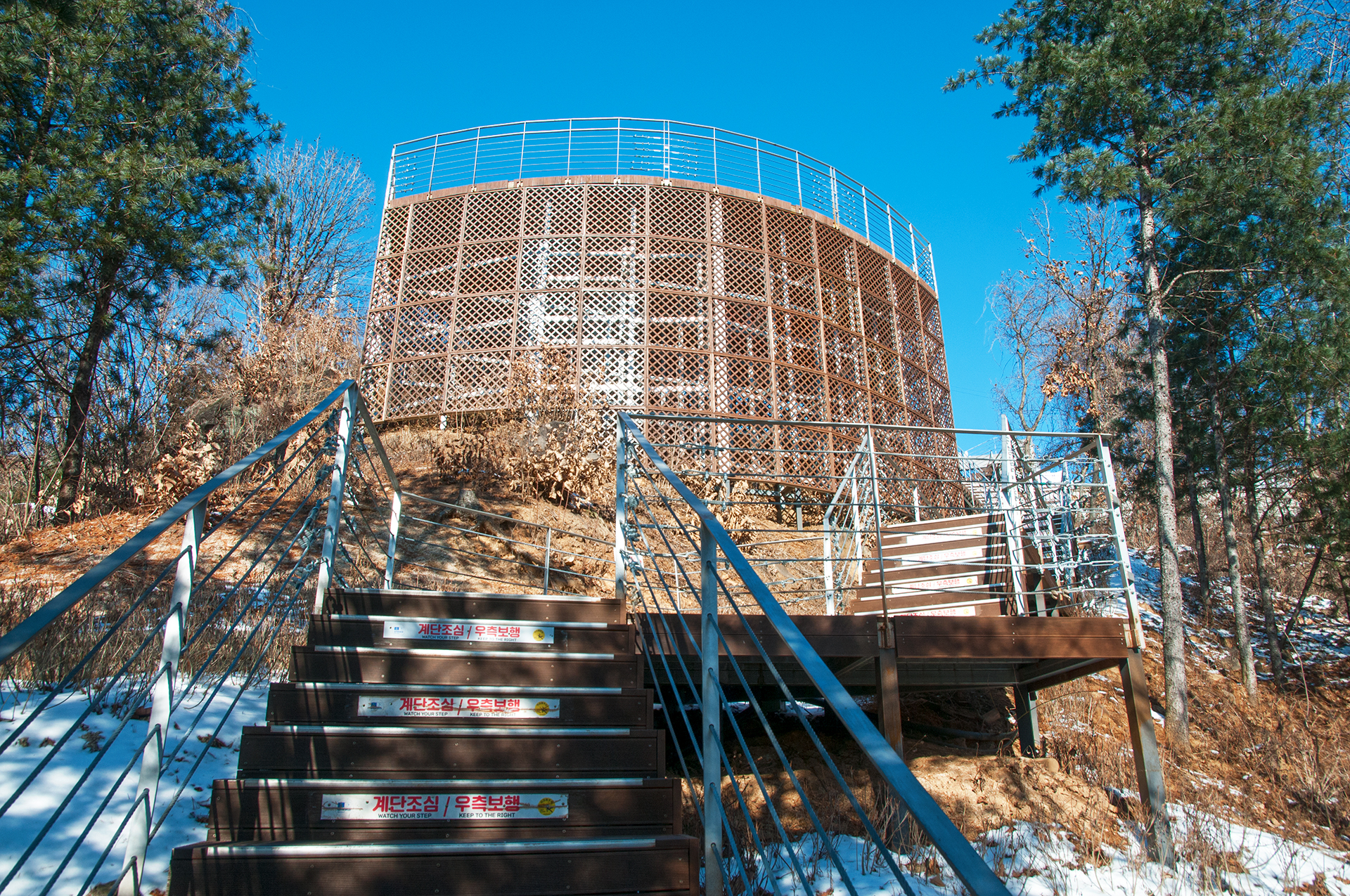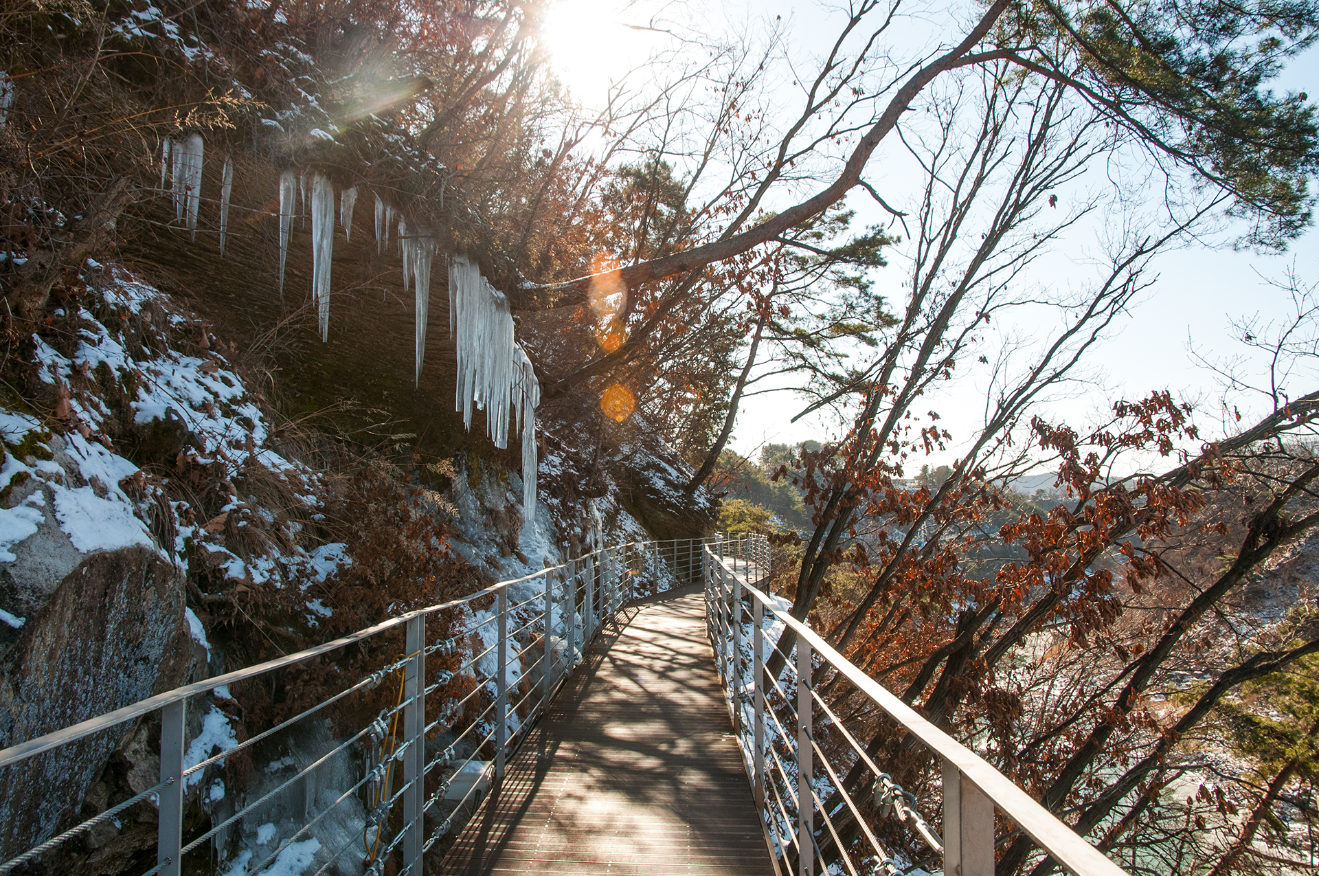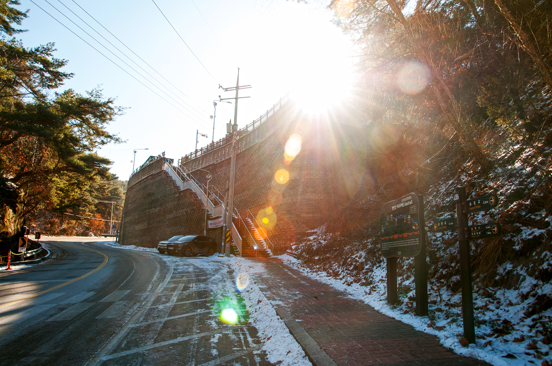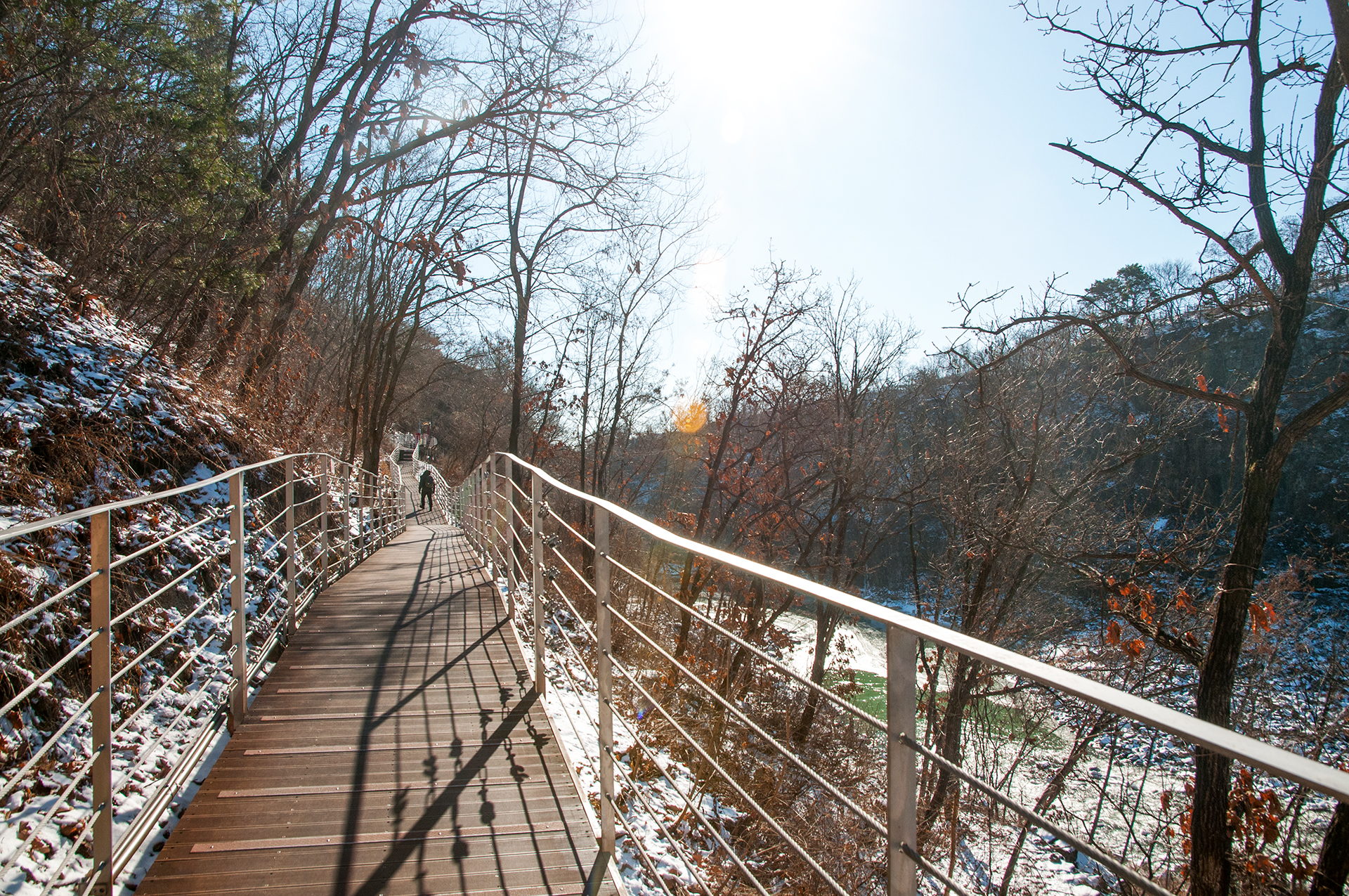 철로 만들어진 길이라 눈이 와 미끄럽지 않을까 걱정했는데 전혀 미끄럽지 않다.
