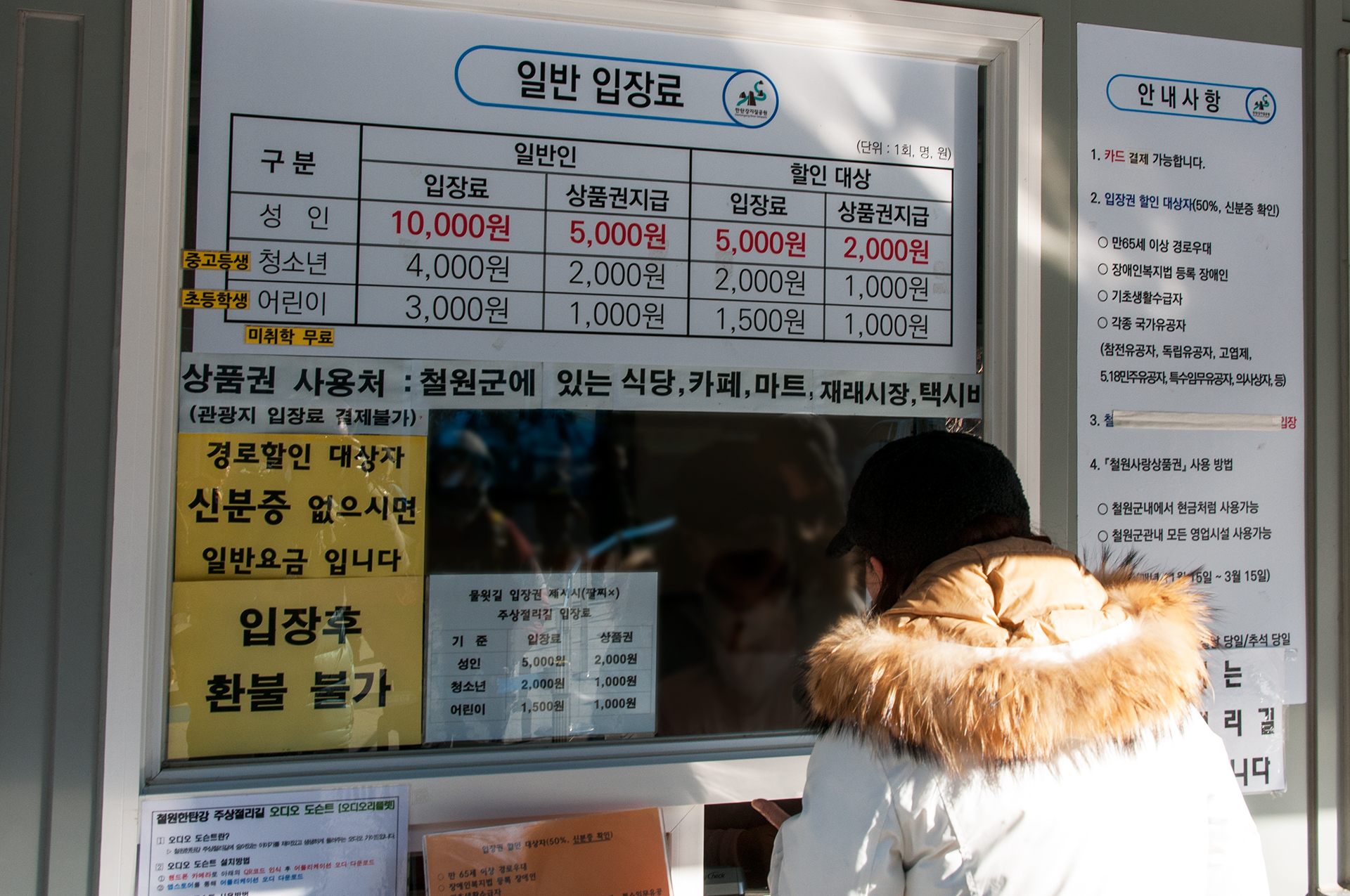 성인기준 10,000원을 내면 5,000원은 철원상품권으로 돌려준다.