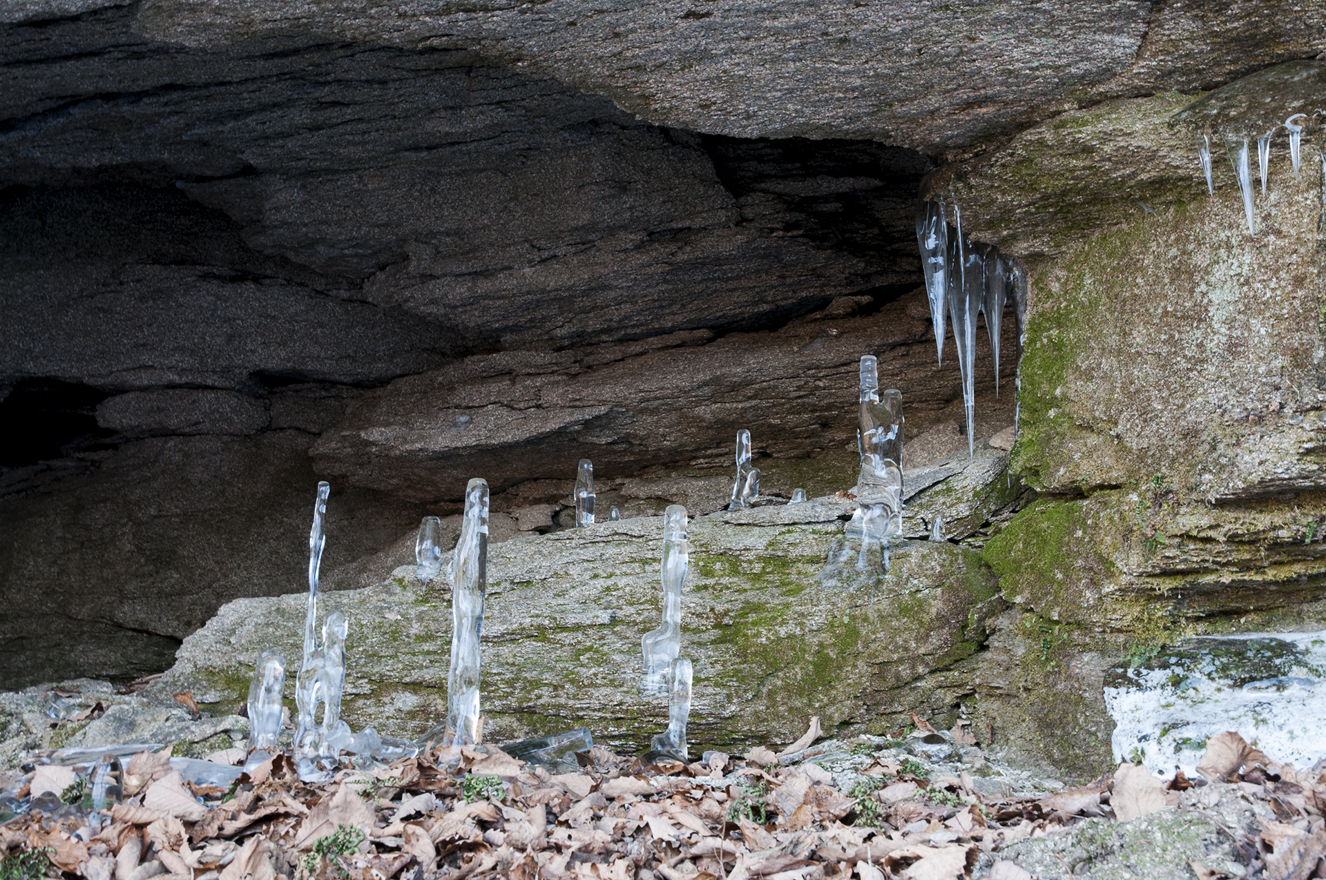 동주황벽에 시선을 뺏긴걸 시기라도 하는지 잔도길 좌측벽에 얼음기둥이 만들어지고 있는 중이다.