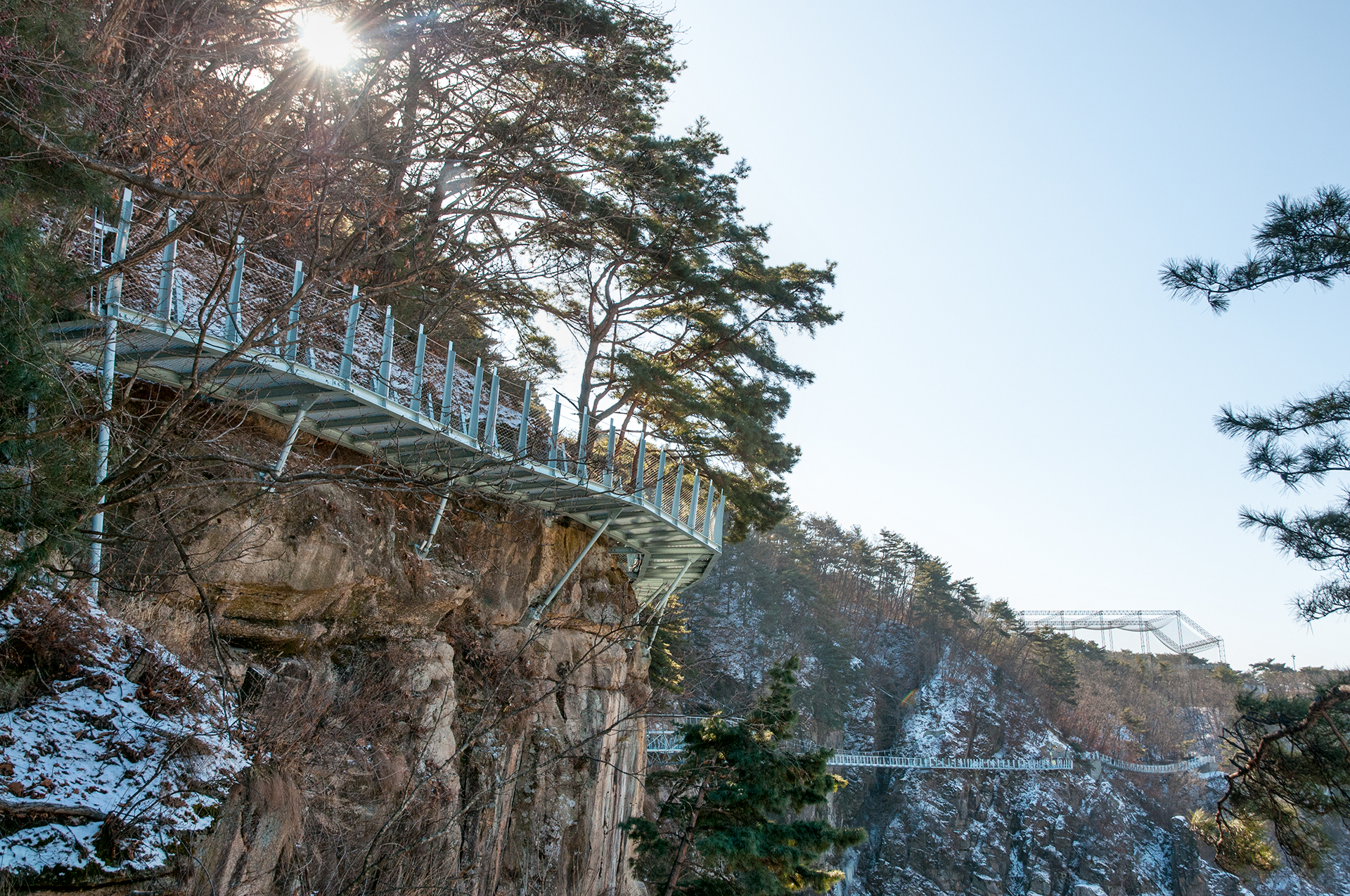 계곡 절벽에 매달린 잔도길,