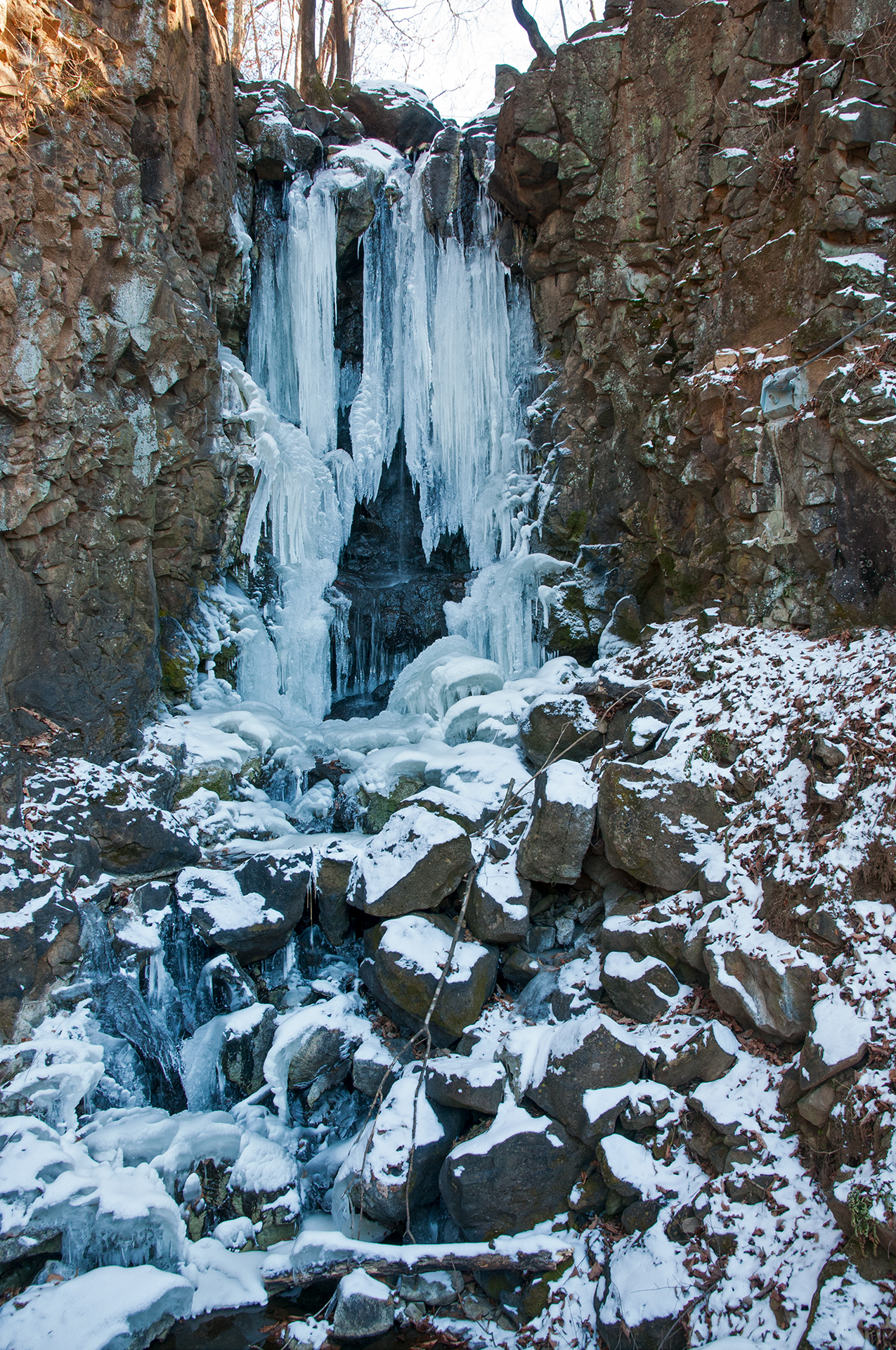 바위그늘교를 건너 산 위로 올라가는 코스, 산너머에서 해가 드니 빛이 드리울 시간이 없었는지 눈이 제법 많은 곳이다.