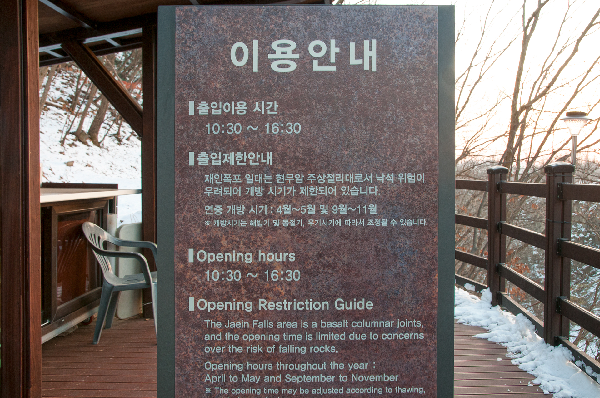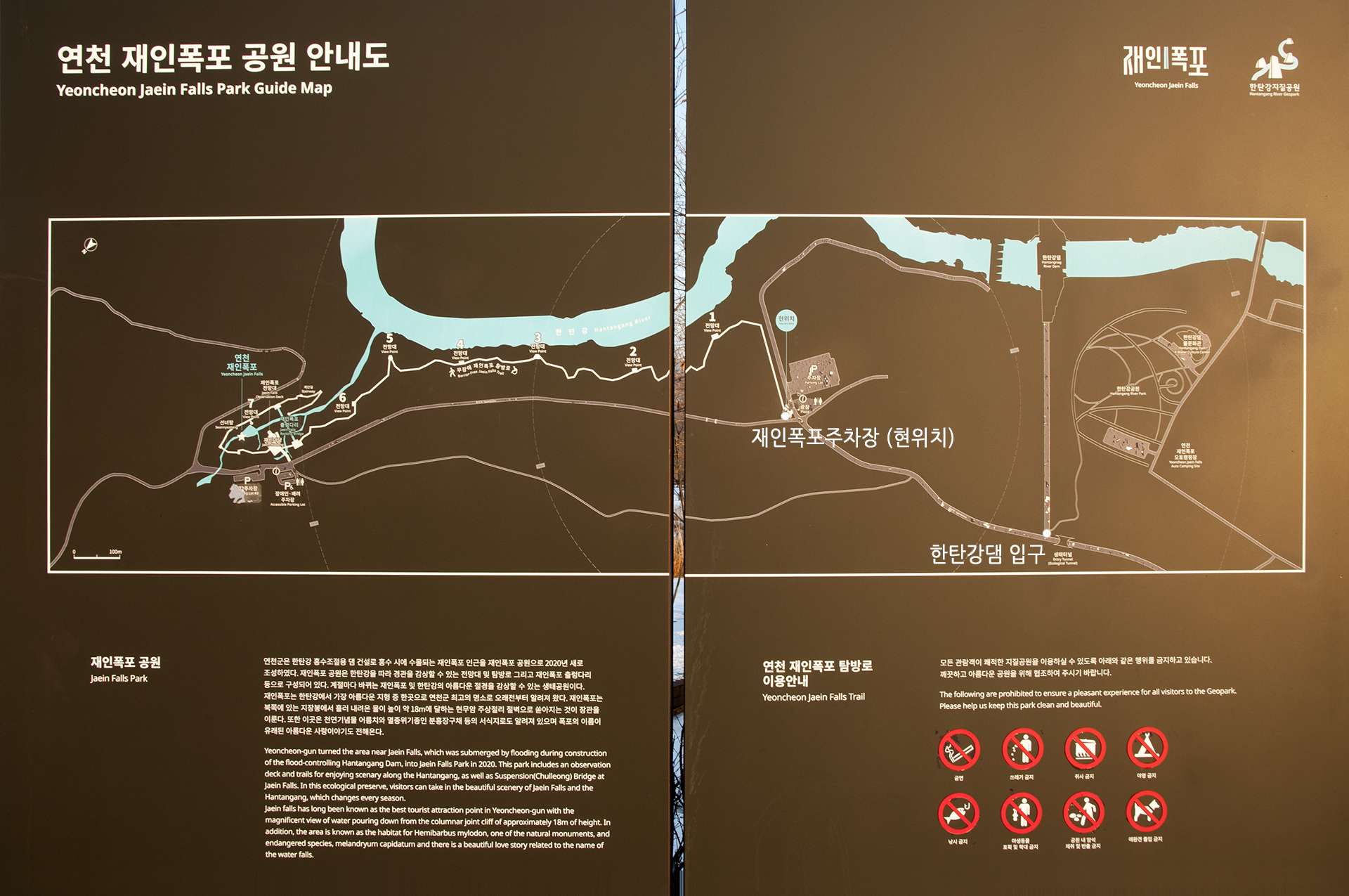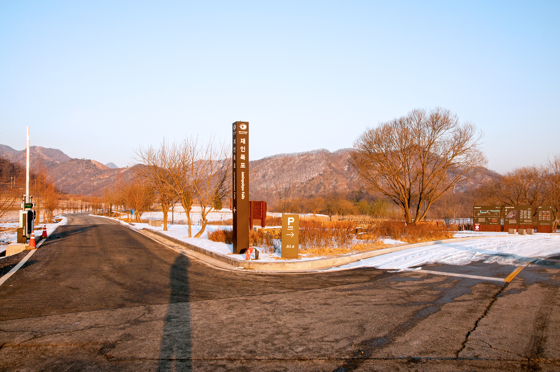 트레킹이 아니라 재인폭포만 볼 경우 좌측길로 더 들어가면 제2주차장이 있고 바로 앞에 재인폭포가 위치해 있다.