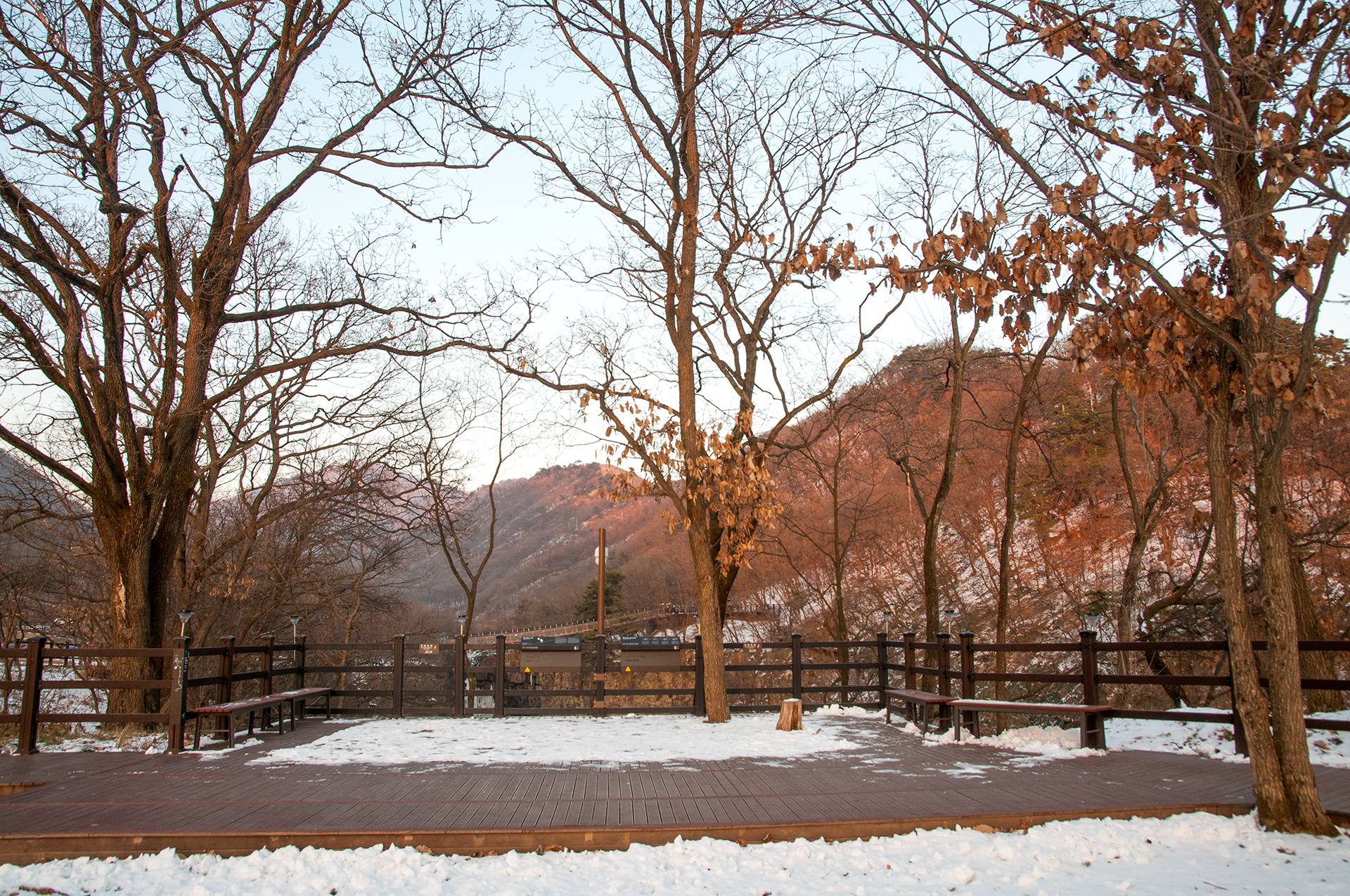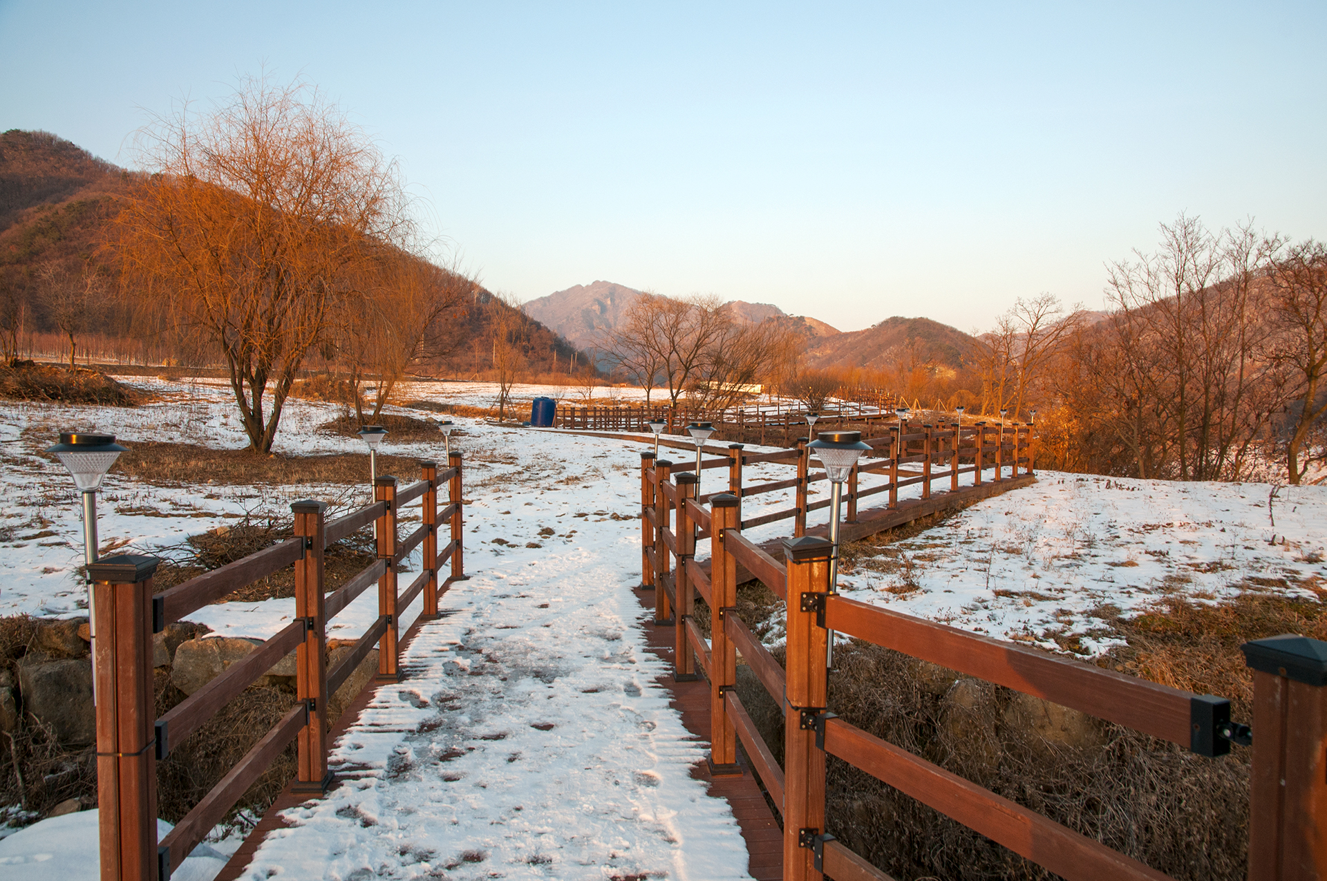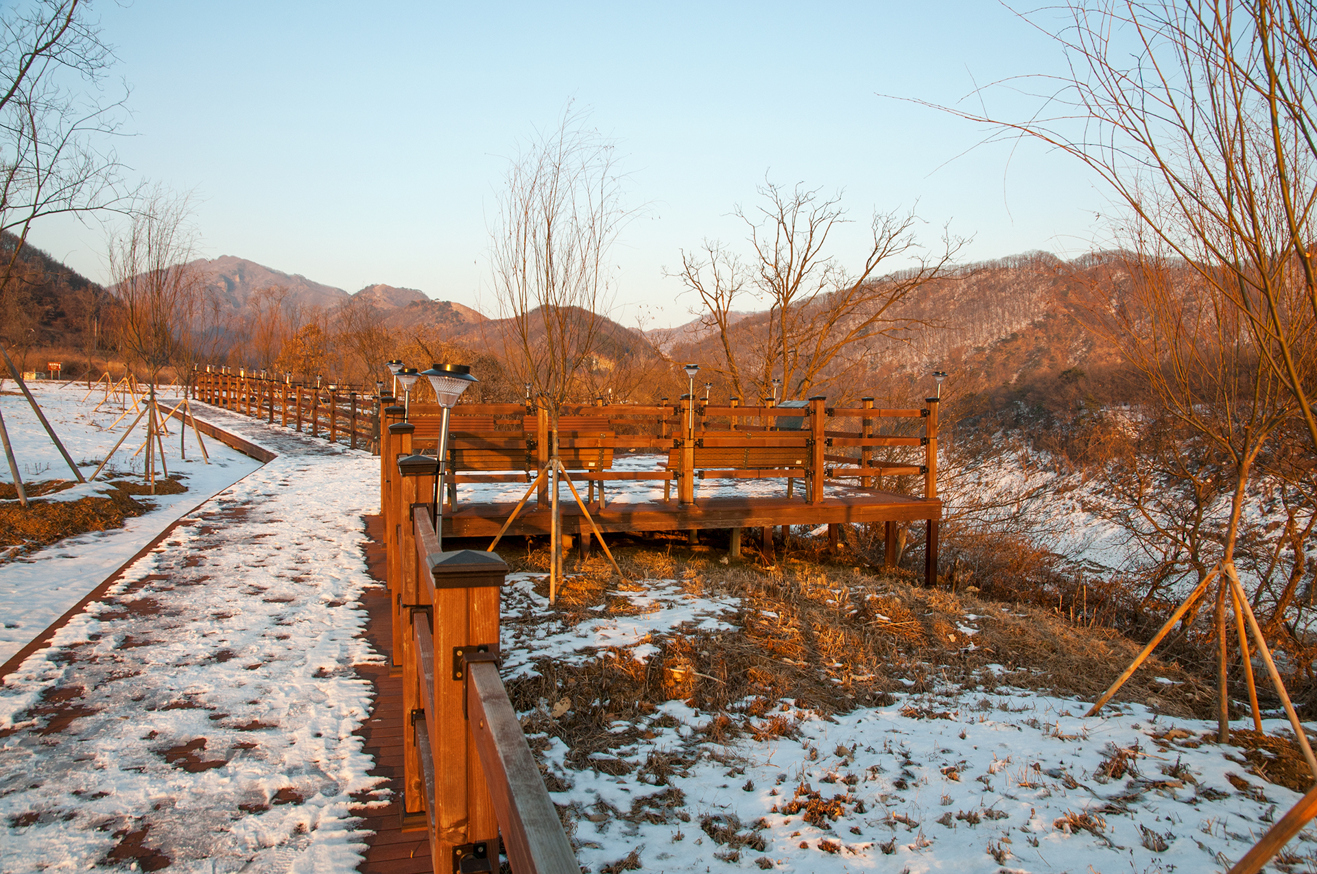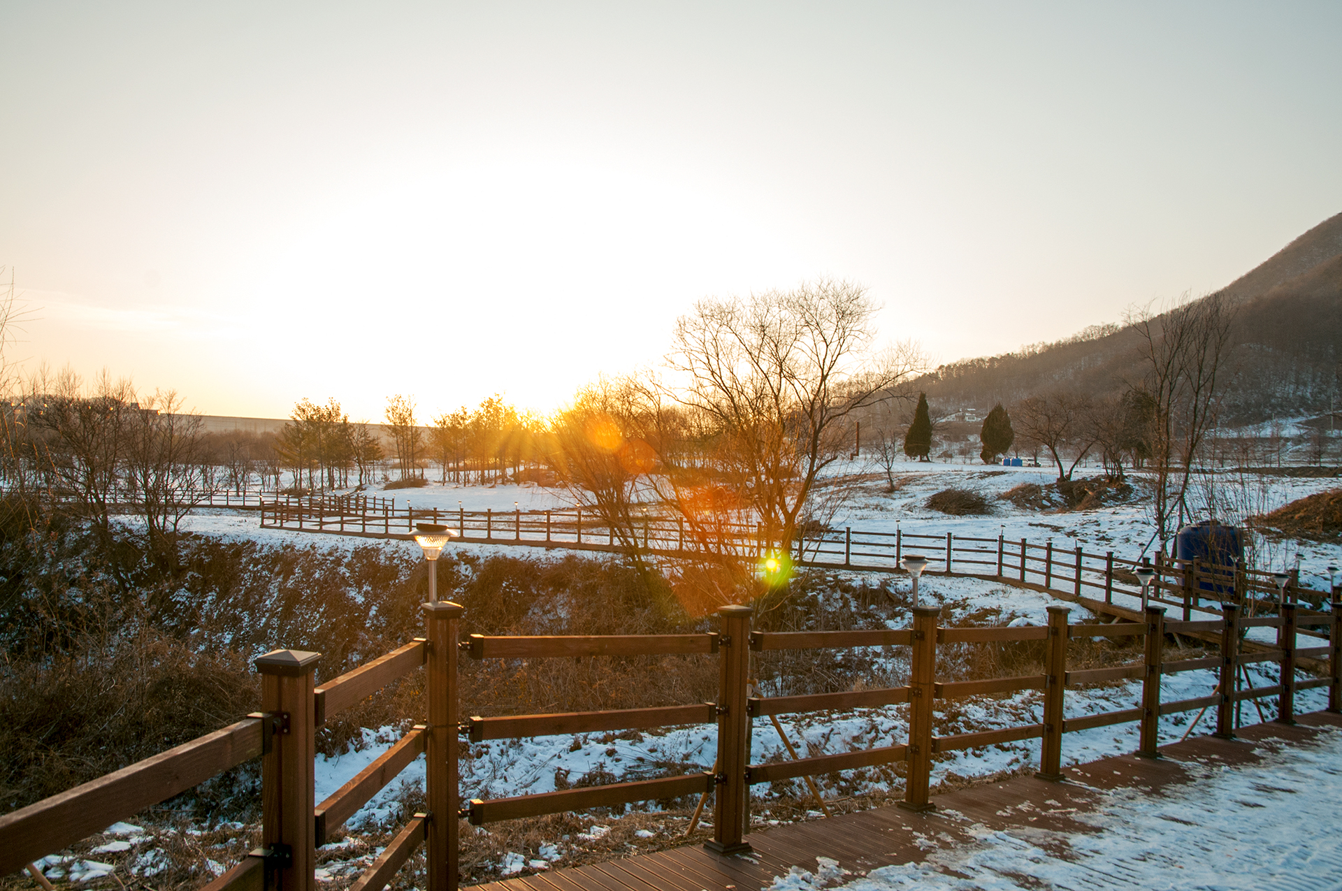 데크길에서는 눈 밟는 발자국 소리가 해 지는 저녁 시간때라 그런지 엄청 크게 들린다.