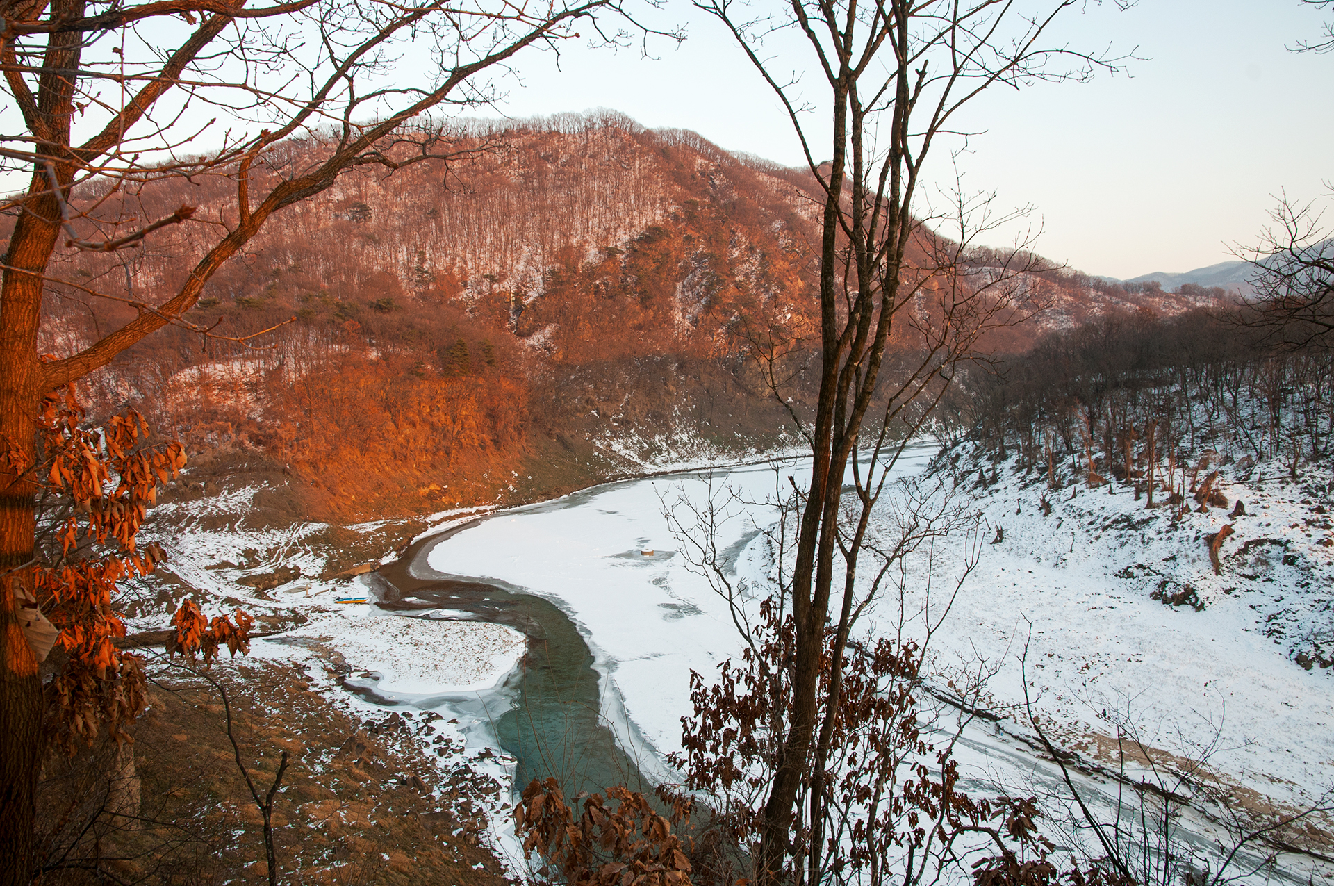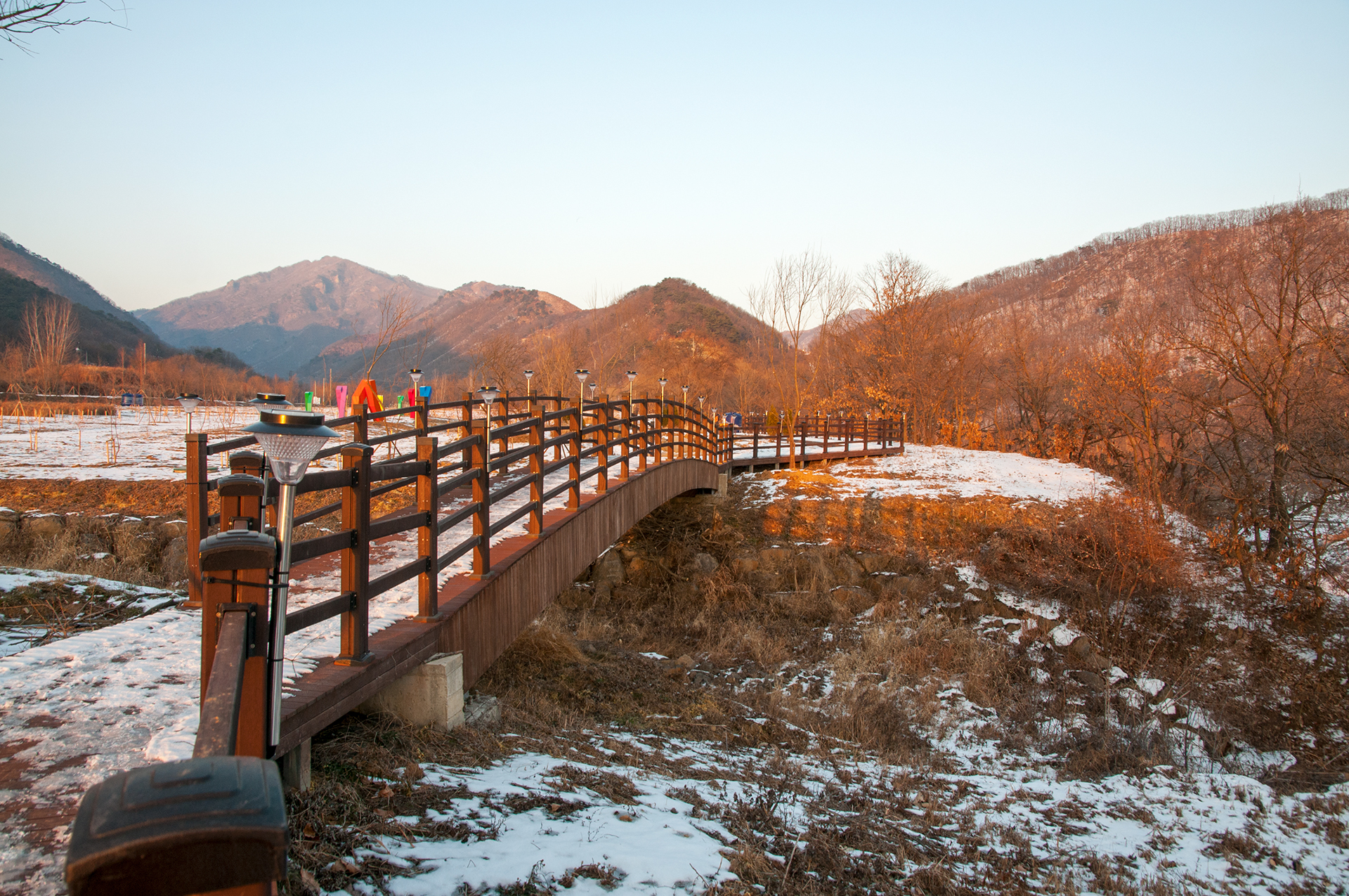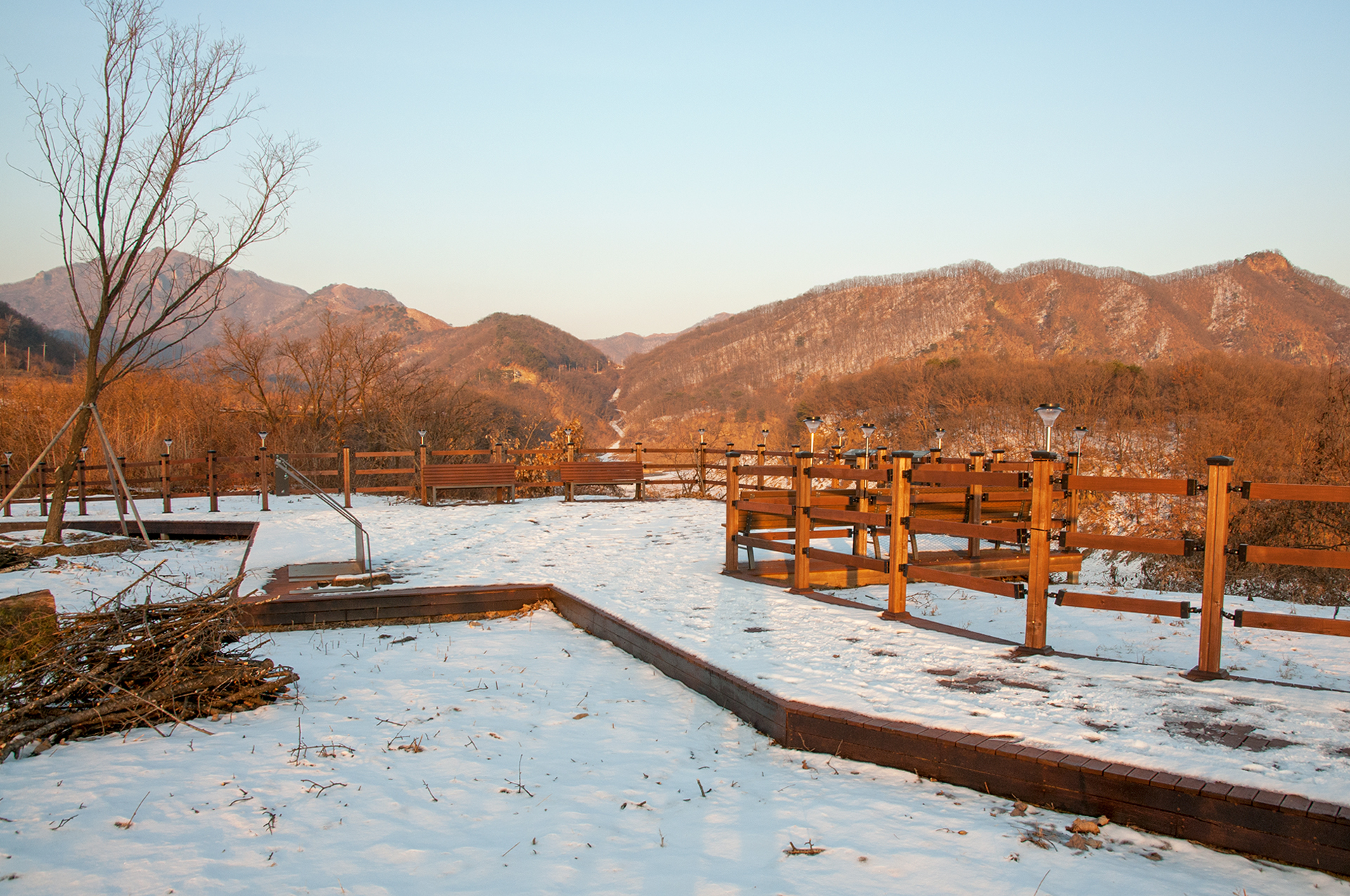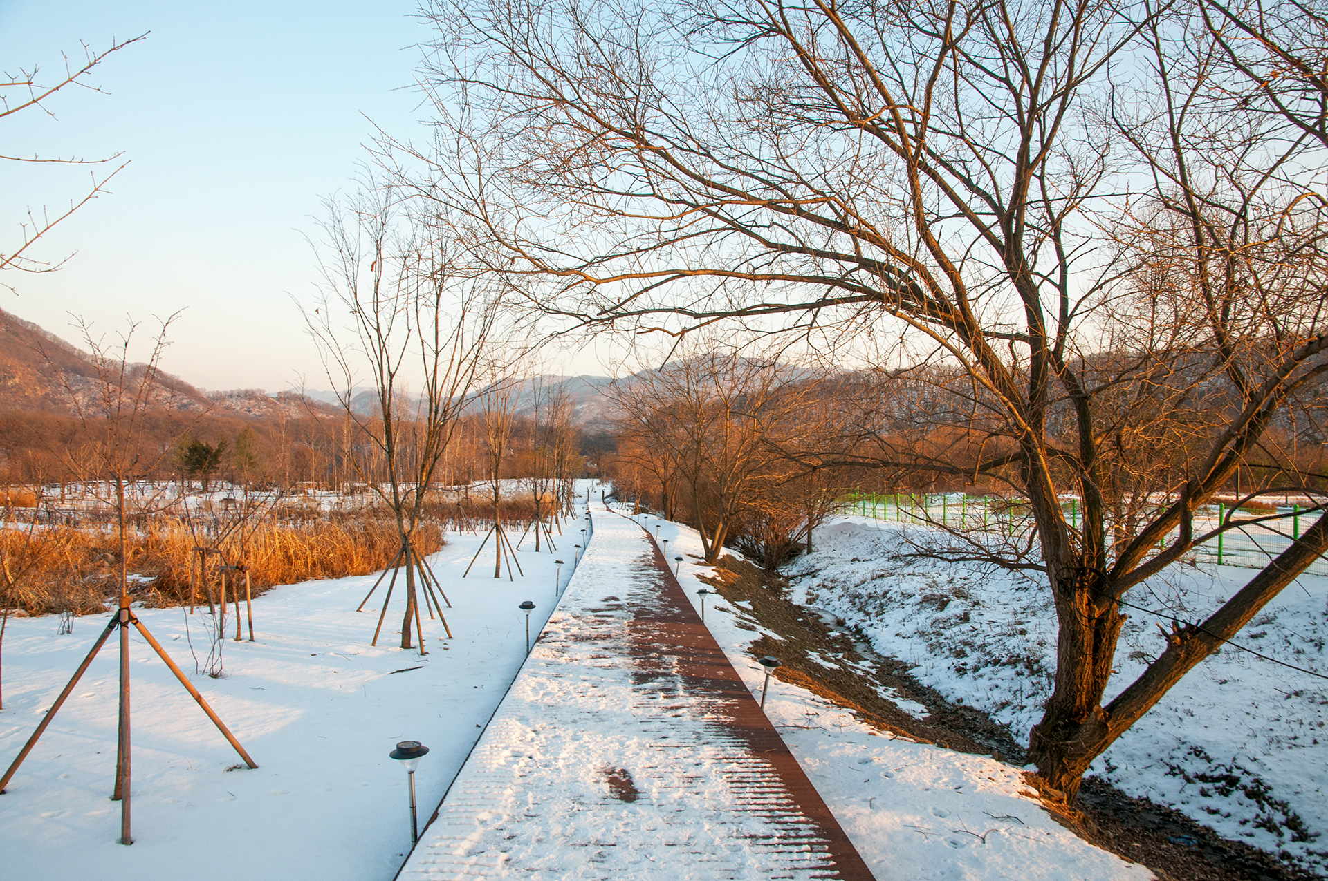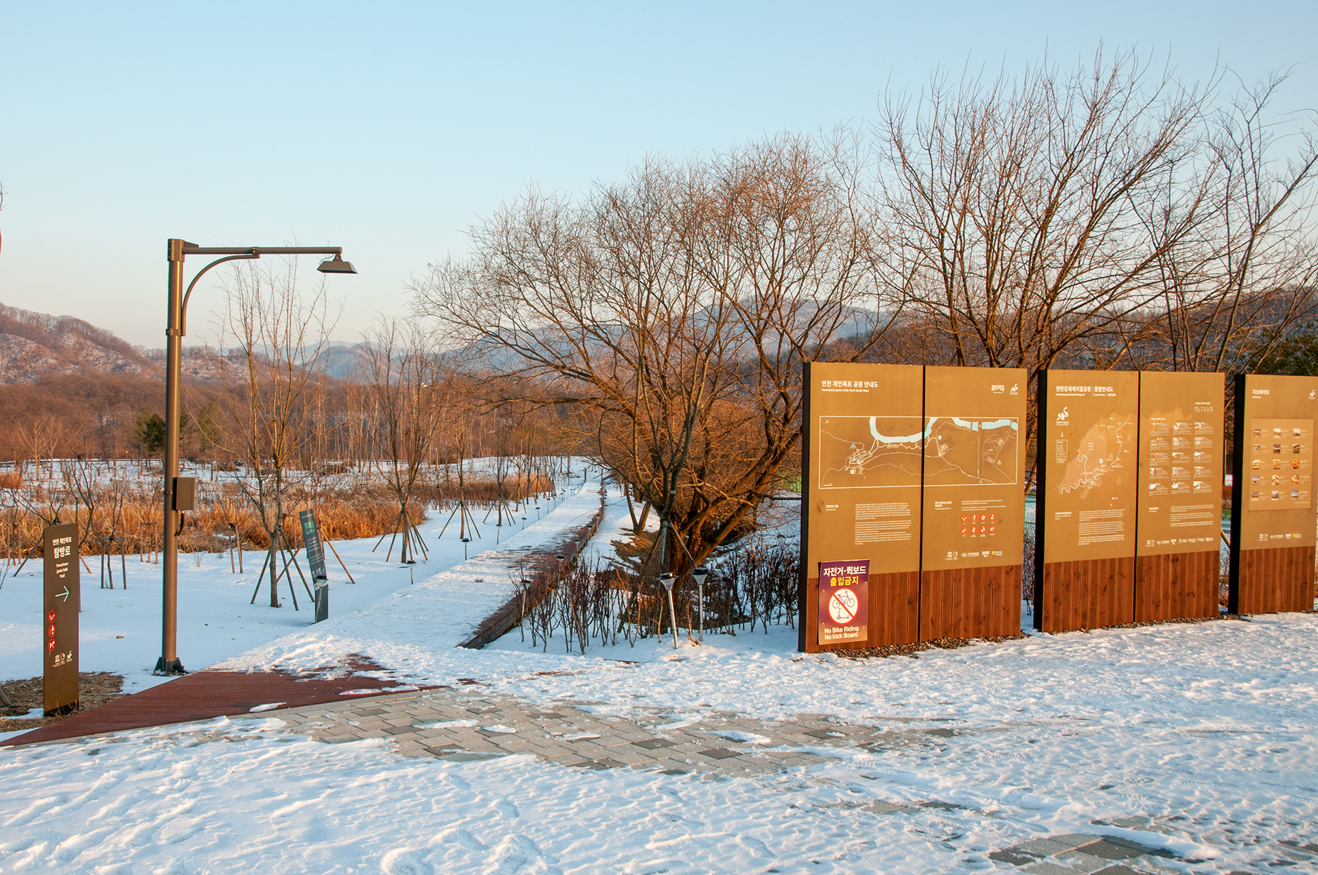 데크길에서는 눈 밟는 발자국 소리가 해 지는 저녁 시간때라 그런지 엄청 크게 들린다.