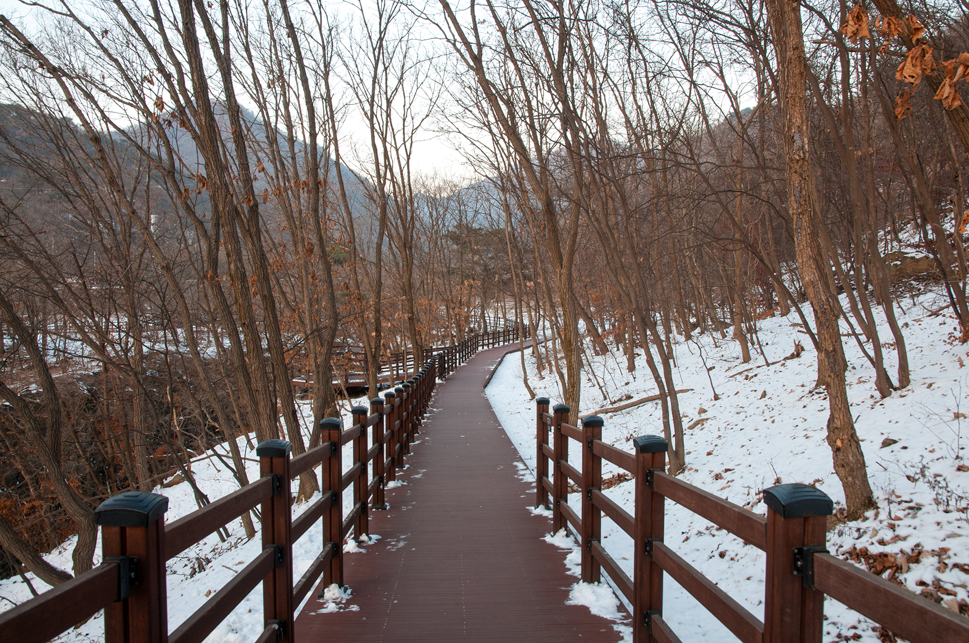 무장애나눔길로 데크가 평지에 놓여 있어 눈만 아니었다면 편하게 이동할 수 있는 길이다.
