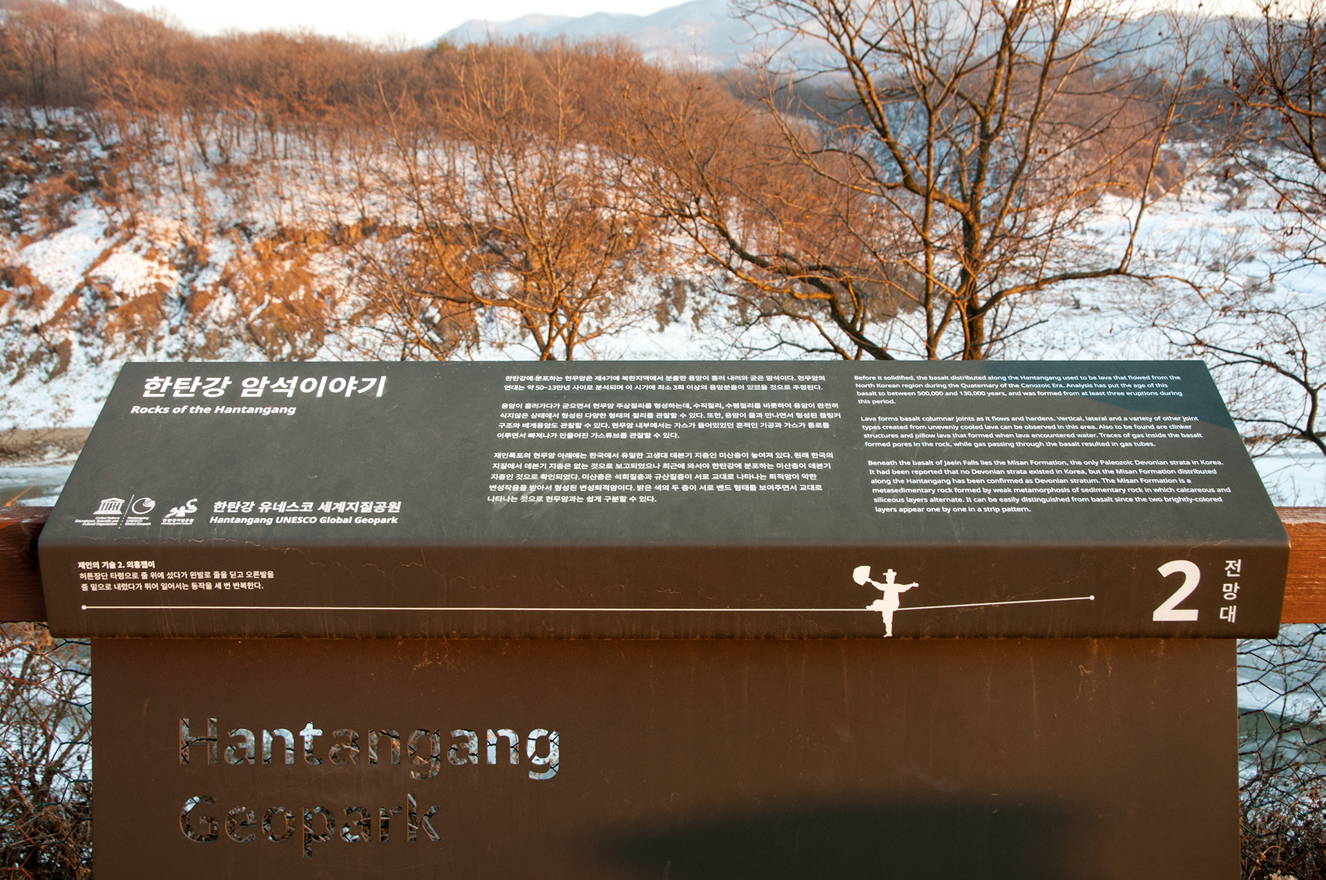 한탄강에 분포하는 현무암은 제4기에 북한 지역에서 분출한 용암이 흘러 내려와 굳은 암석이라는 글을 읽어볼수 있다.