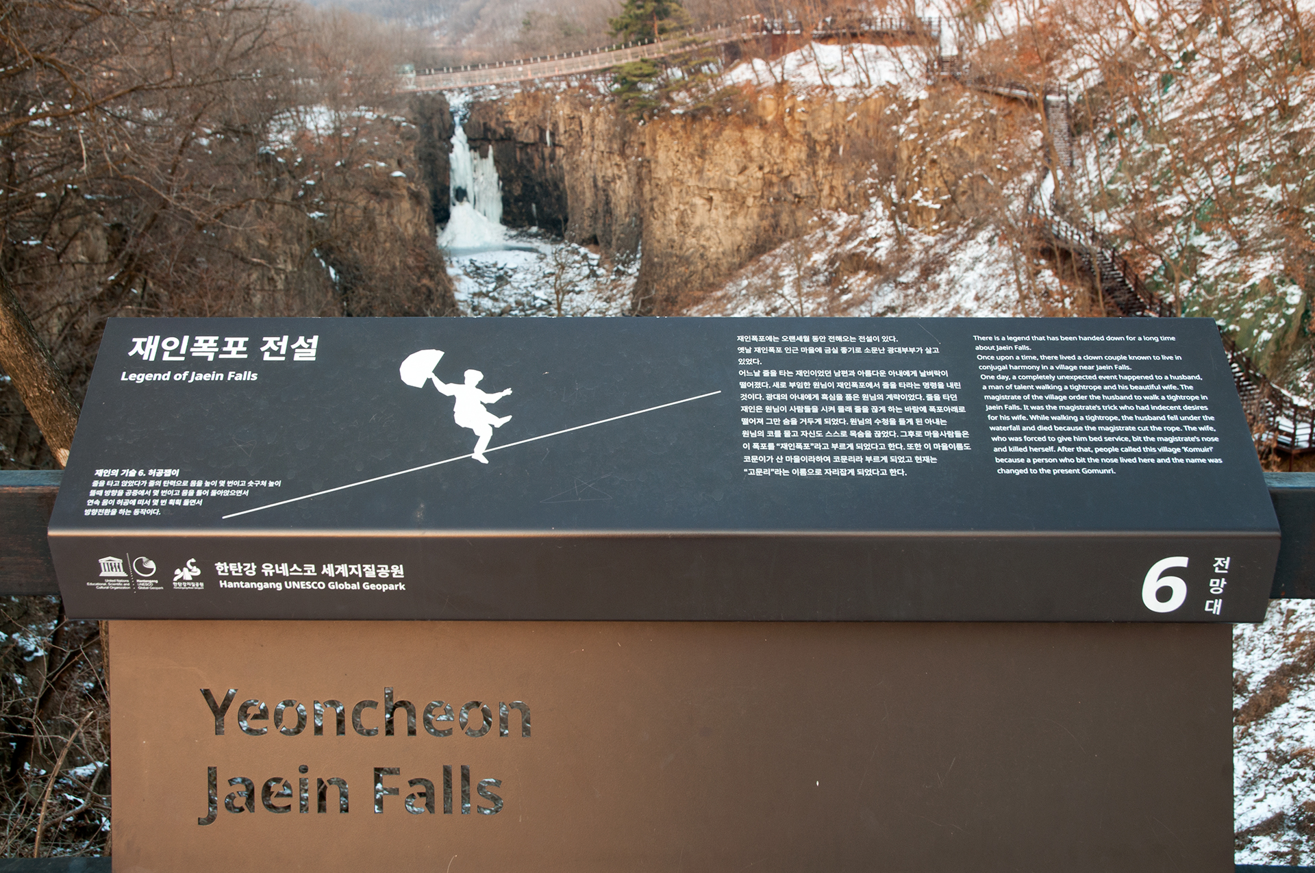 각 전망대의 안내판에는 재인의 기술이 적혀 있는데, 이는 재인폭포의 광대부부 전설 때문인것 같다.