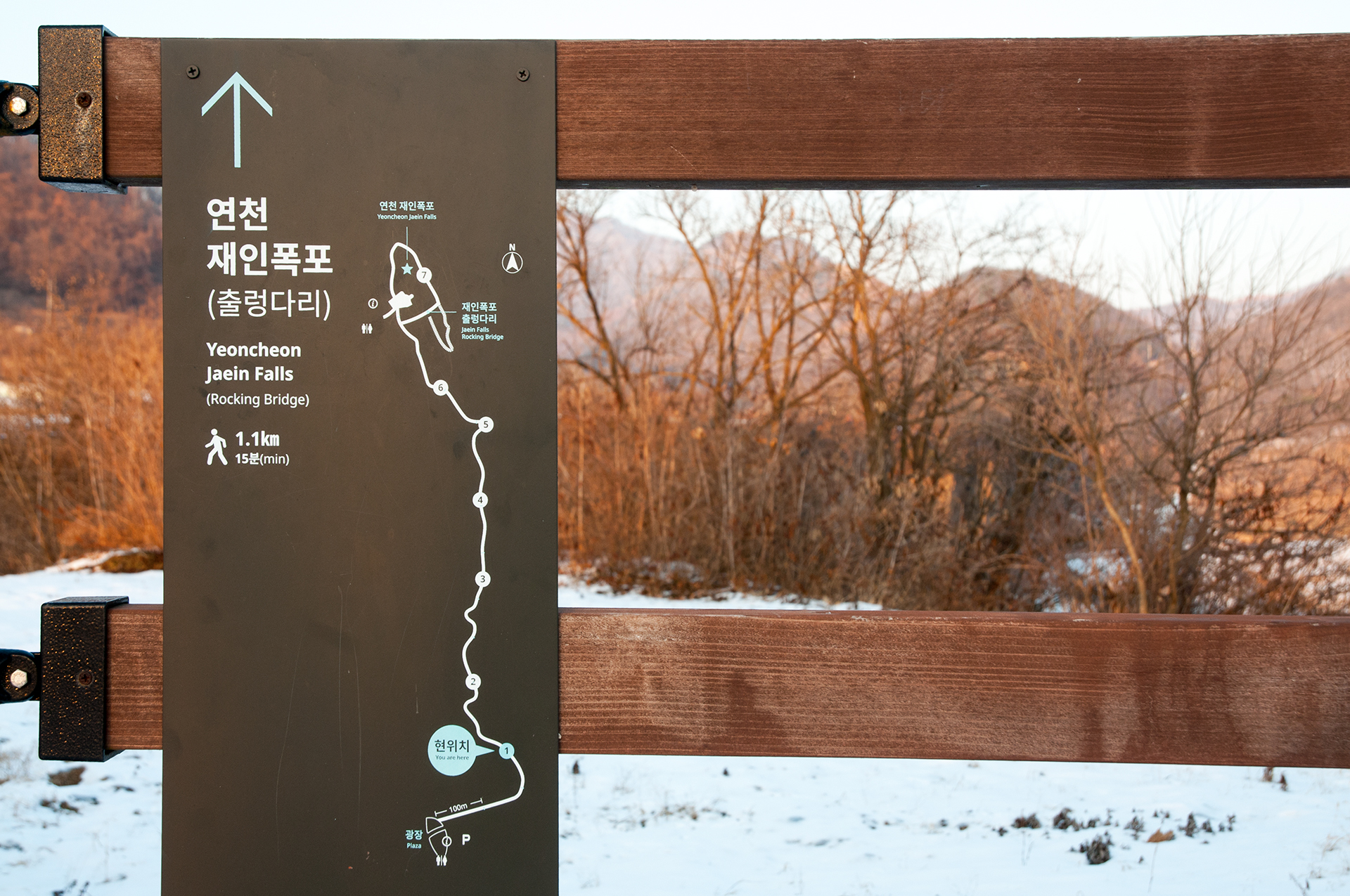 트레킹은 주차장에서 탐방로를 걸어 재인폭포까지 걷는 코스다.