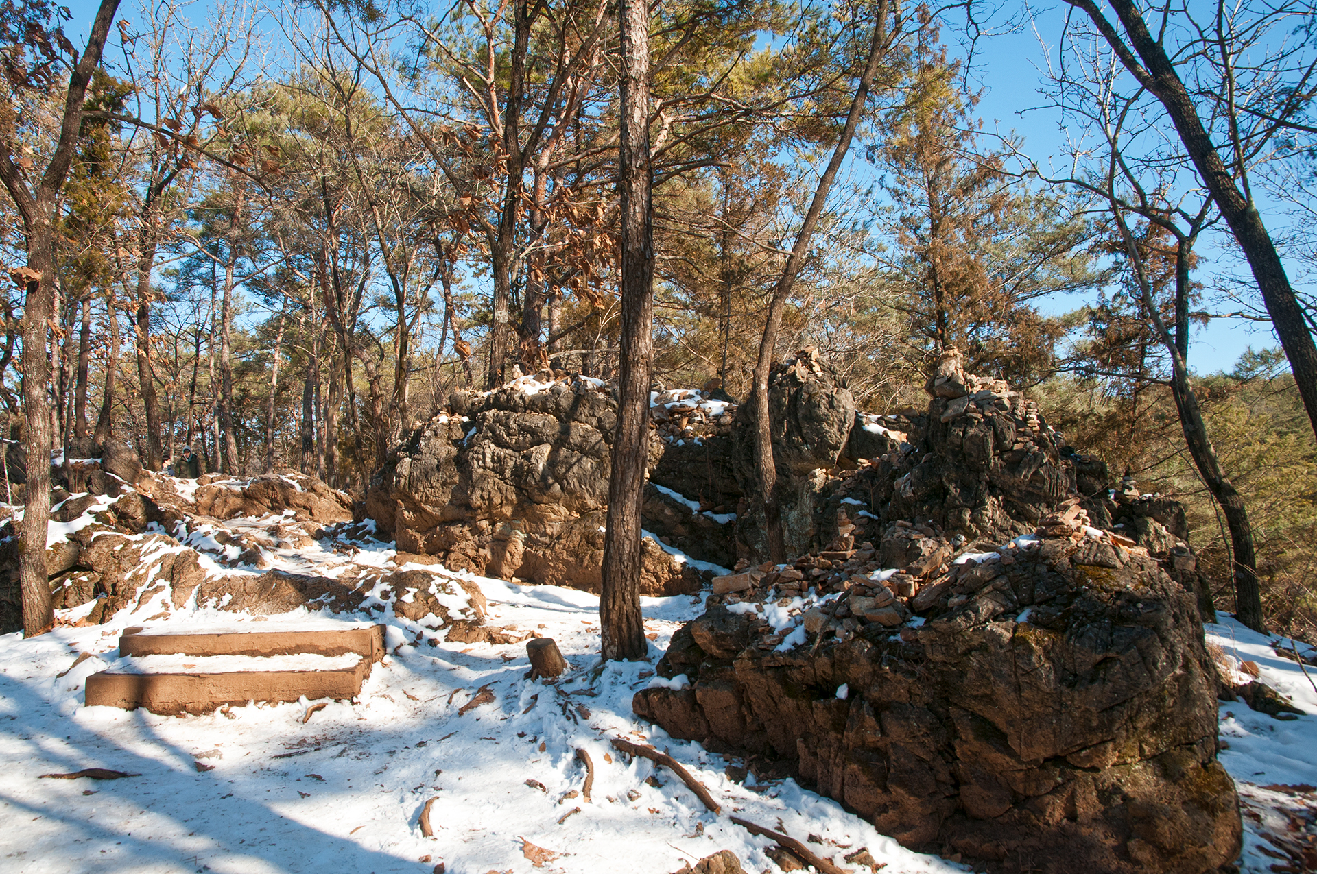 탐방로 옆 암석에 소소하게 쌓아놓은 돌탑들
