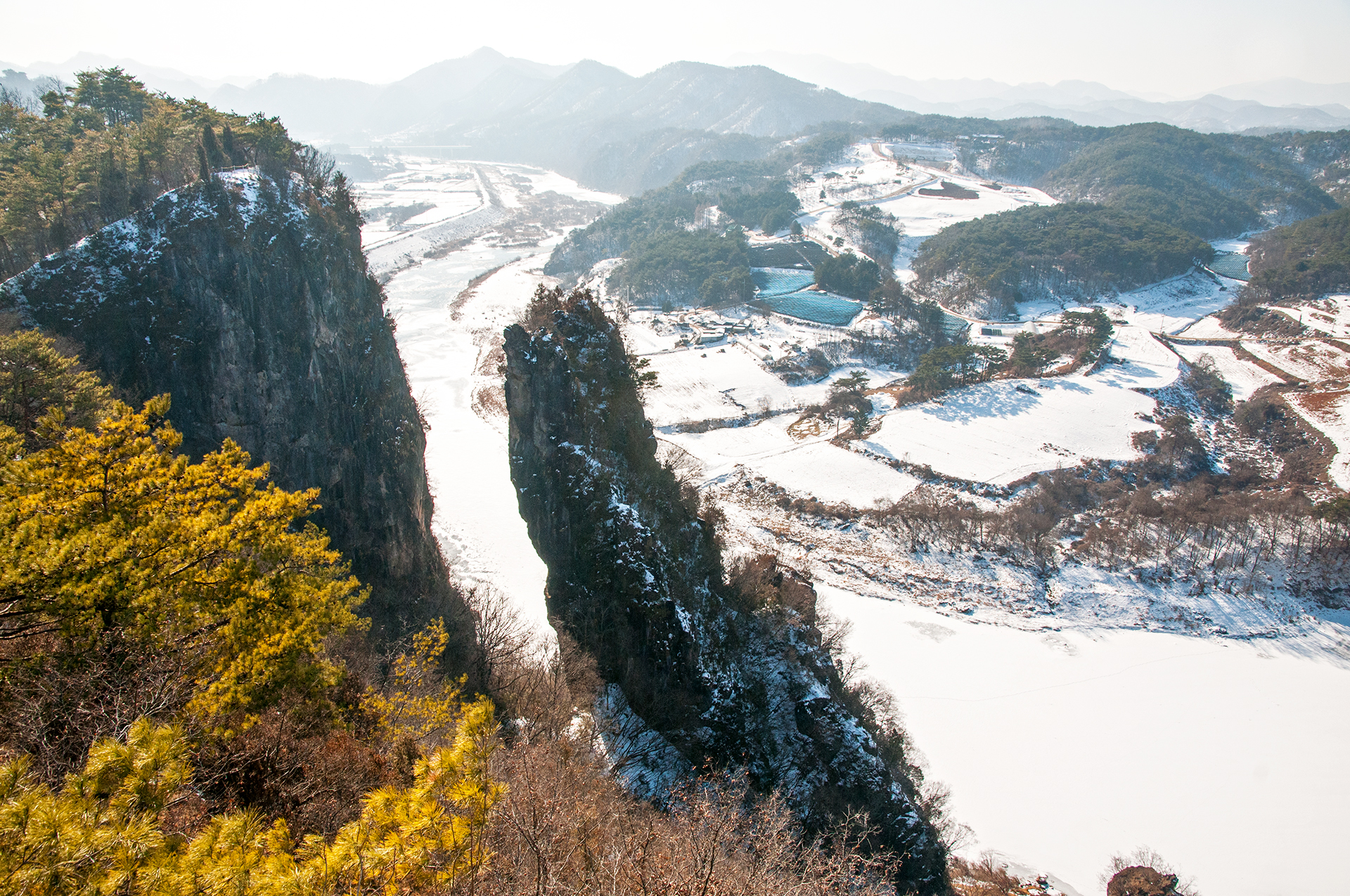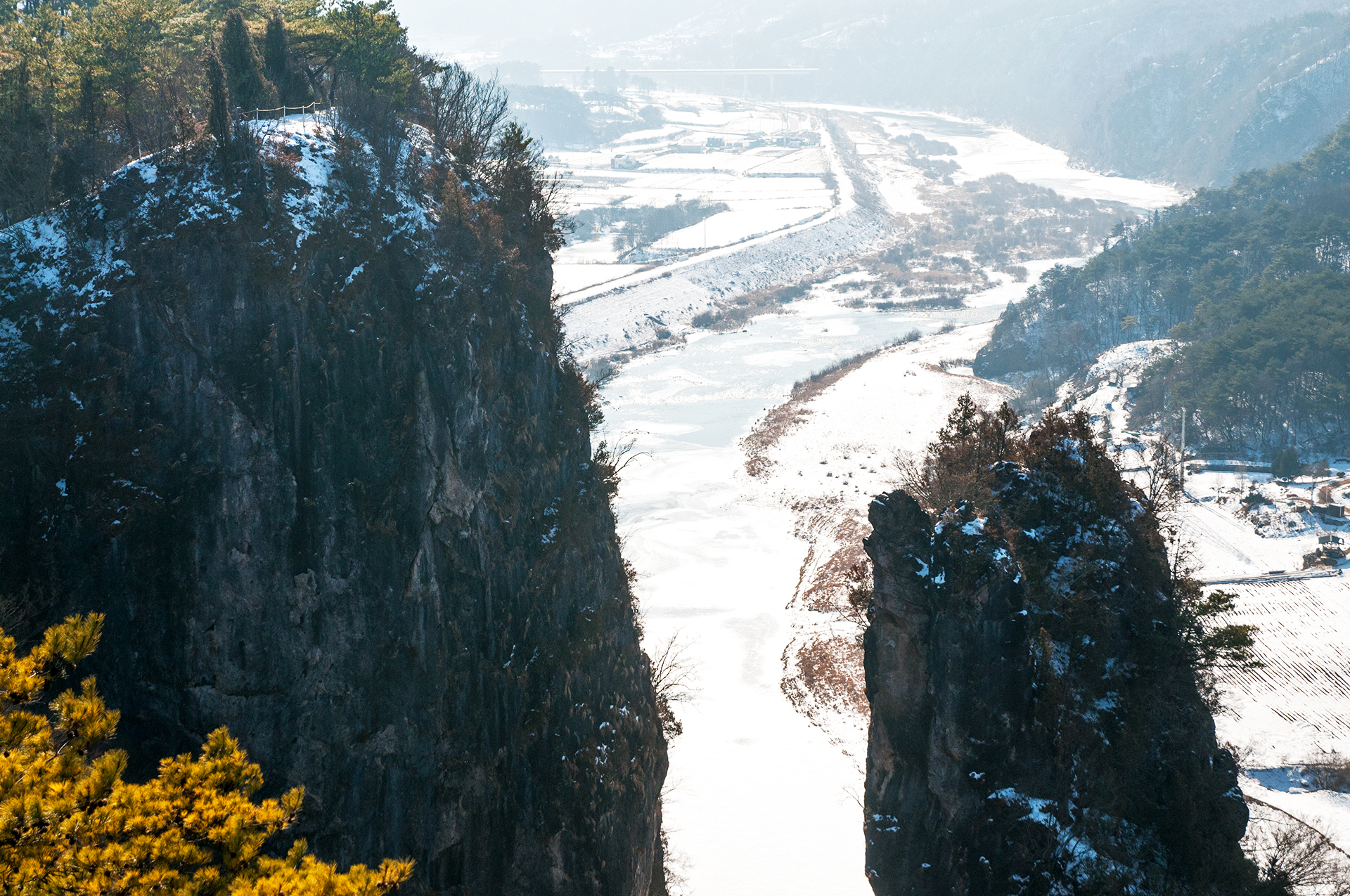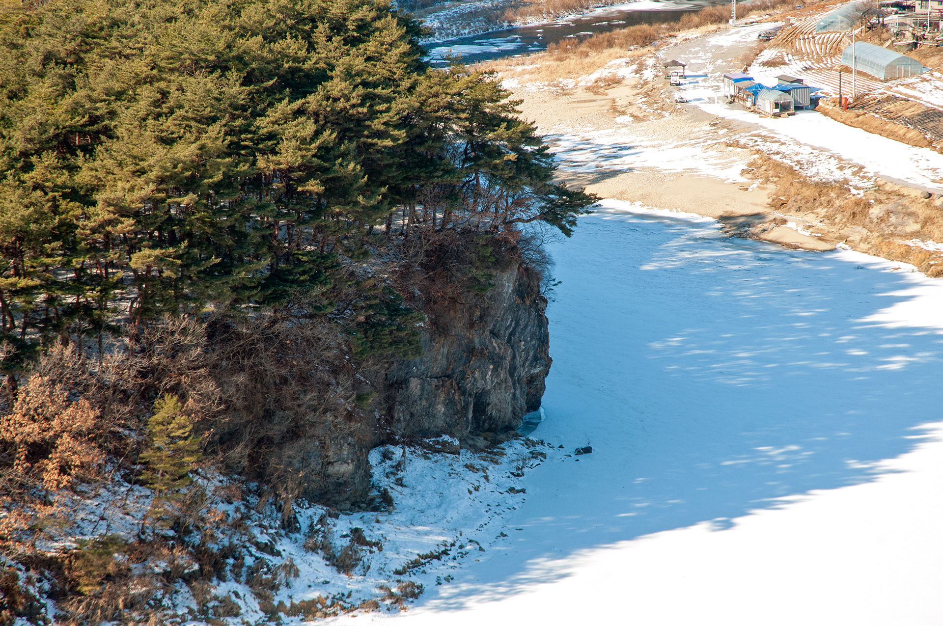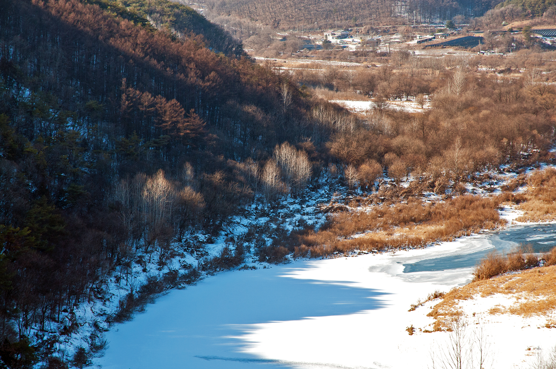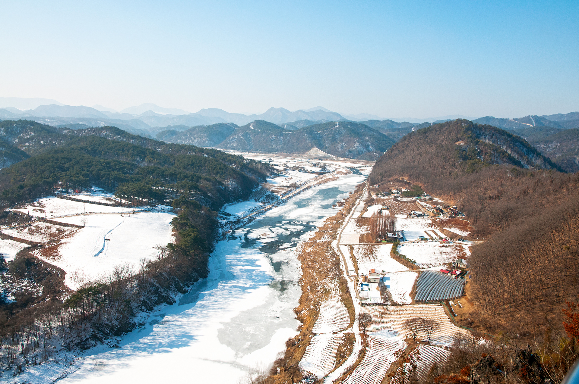 서강의 푸른 물은 추위에 꽁꽁 얼어 하얗게 변했지만, 층암절벽과 어우러져 마치 한국화를 보는 듯한 느낌을 준다.