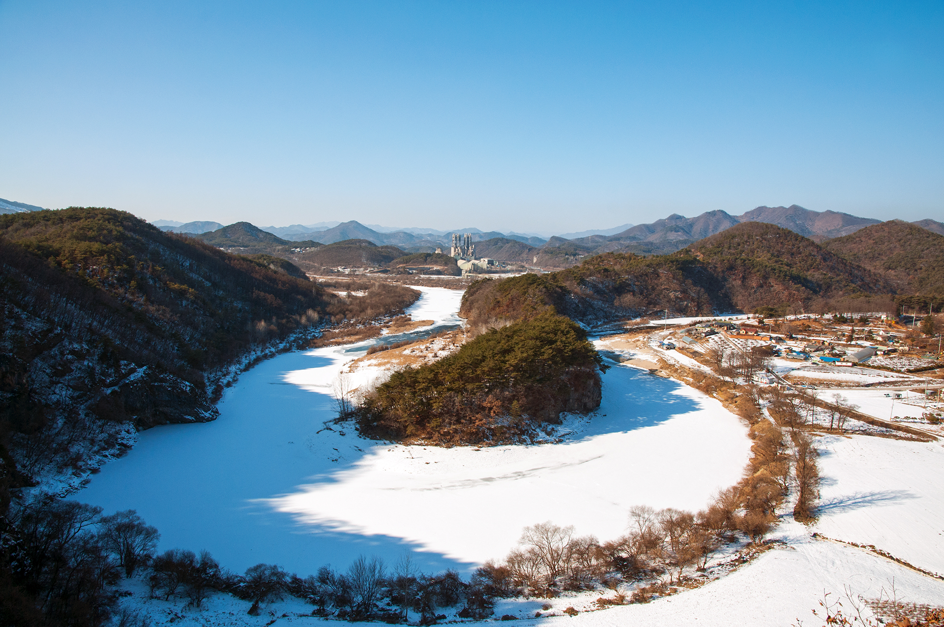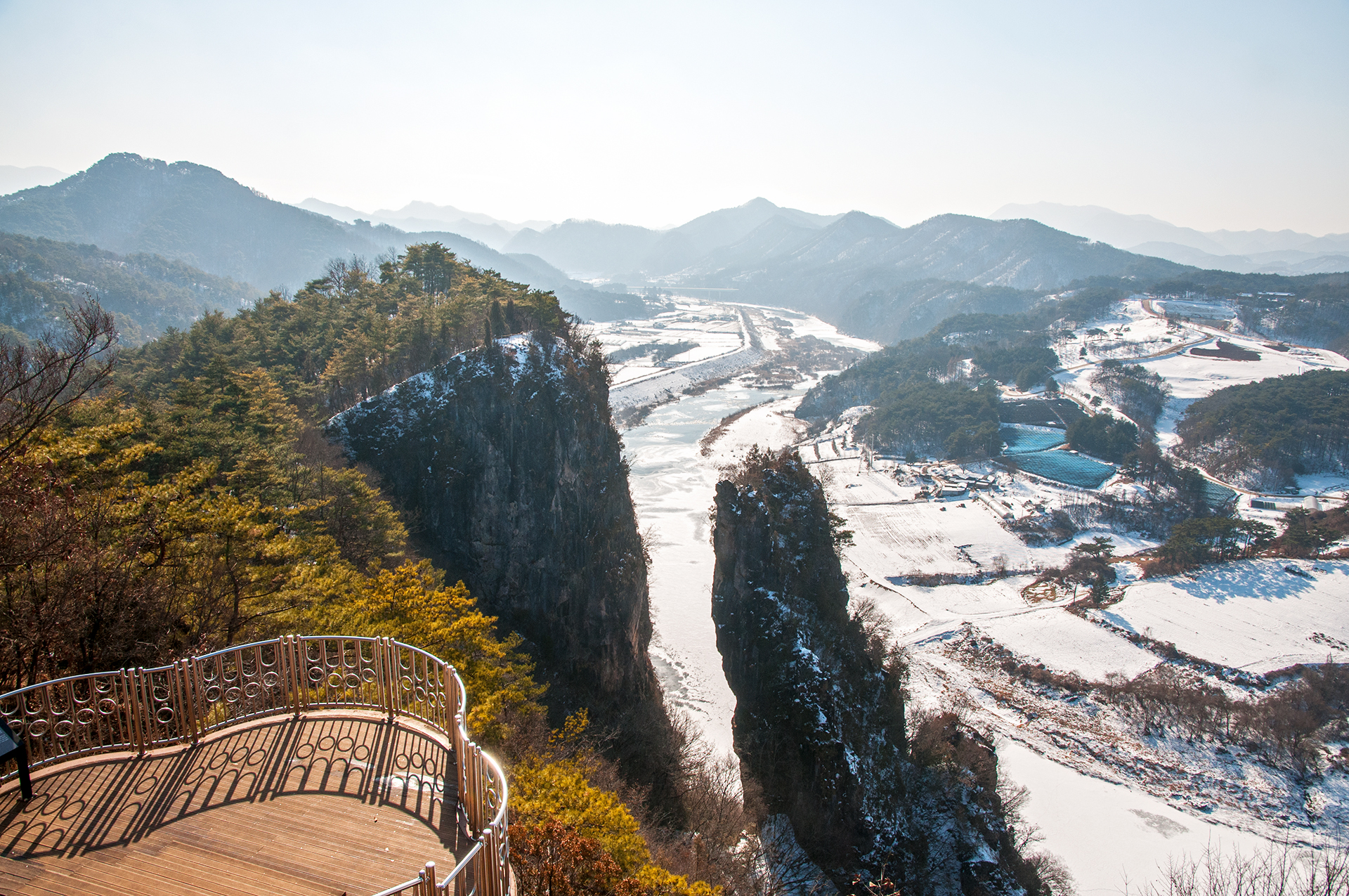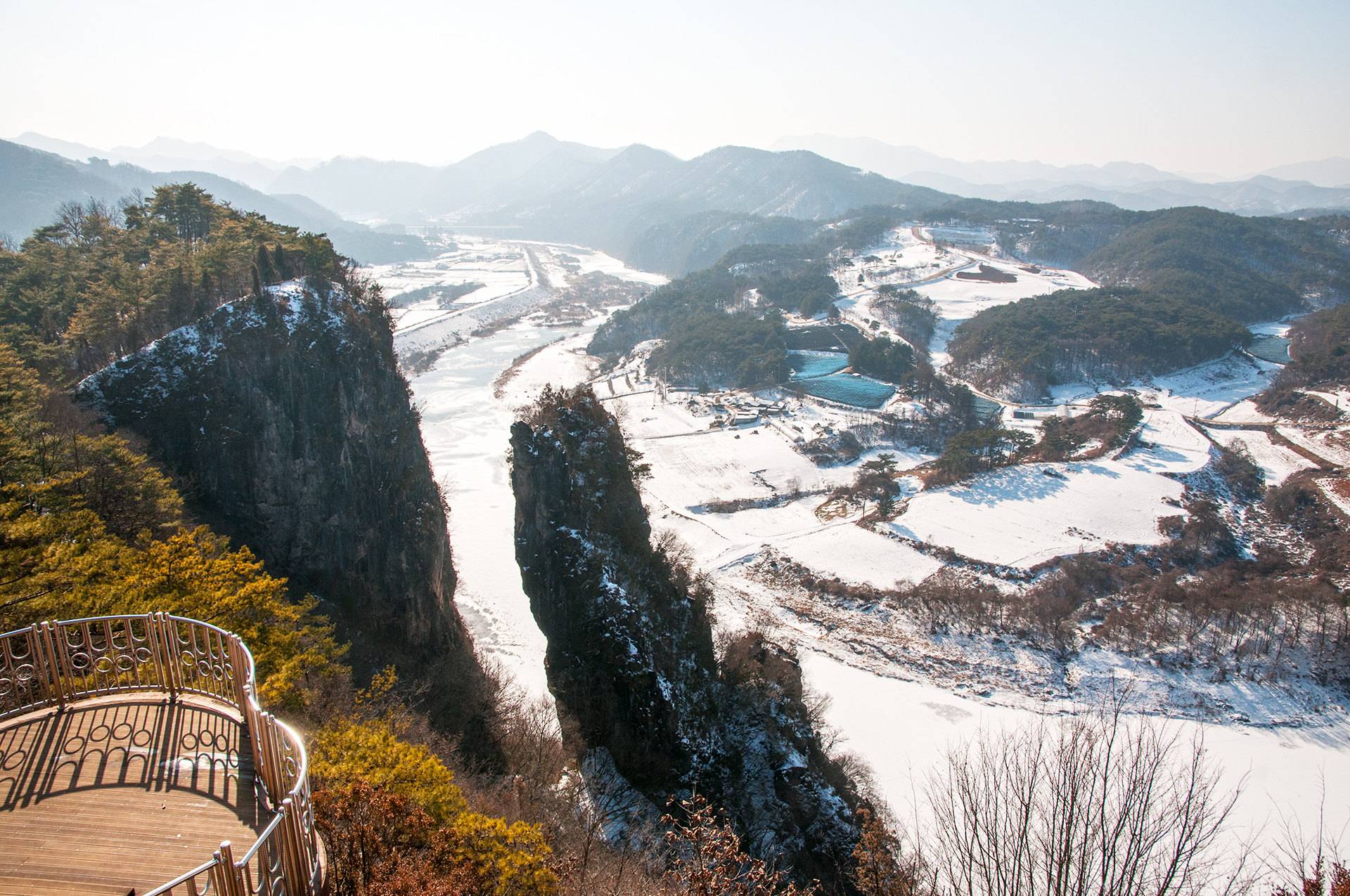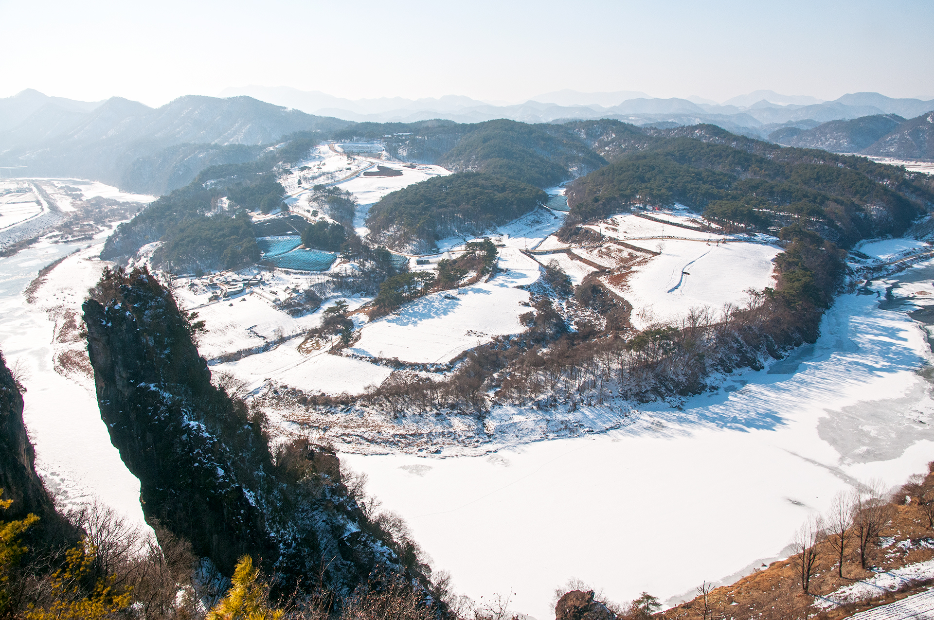 서강의 푸른 물은 추위에 꽁꽁 얼어 하얗게 변했지만, 층암절벽과 어우러져 마치 한국화를 보는 듯한 느낌을 준다.