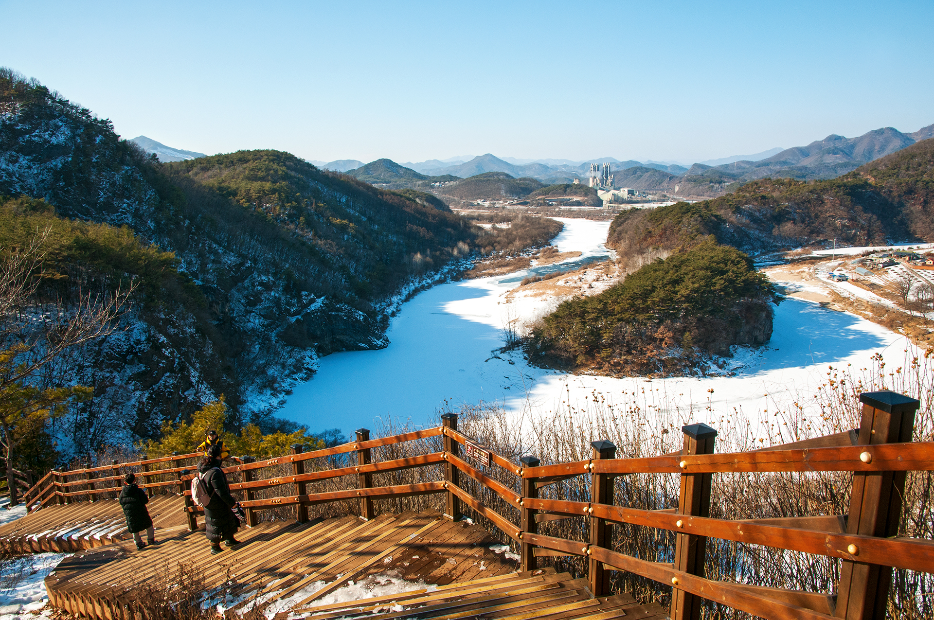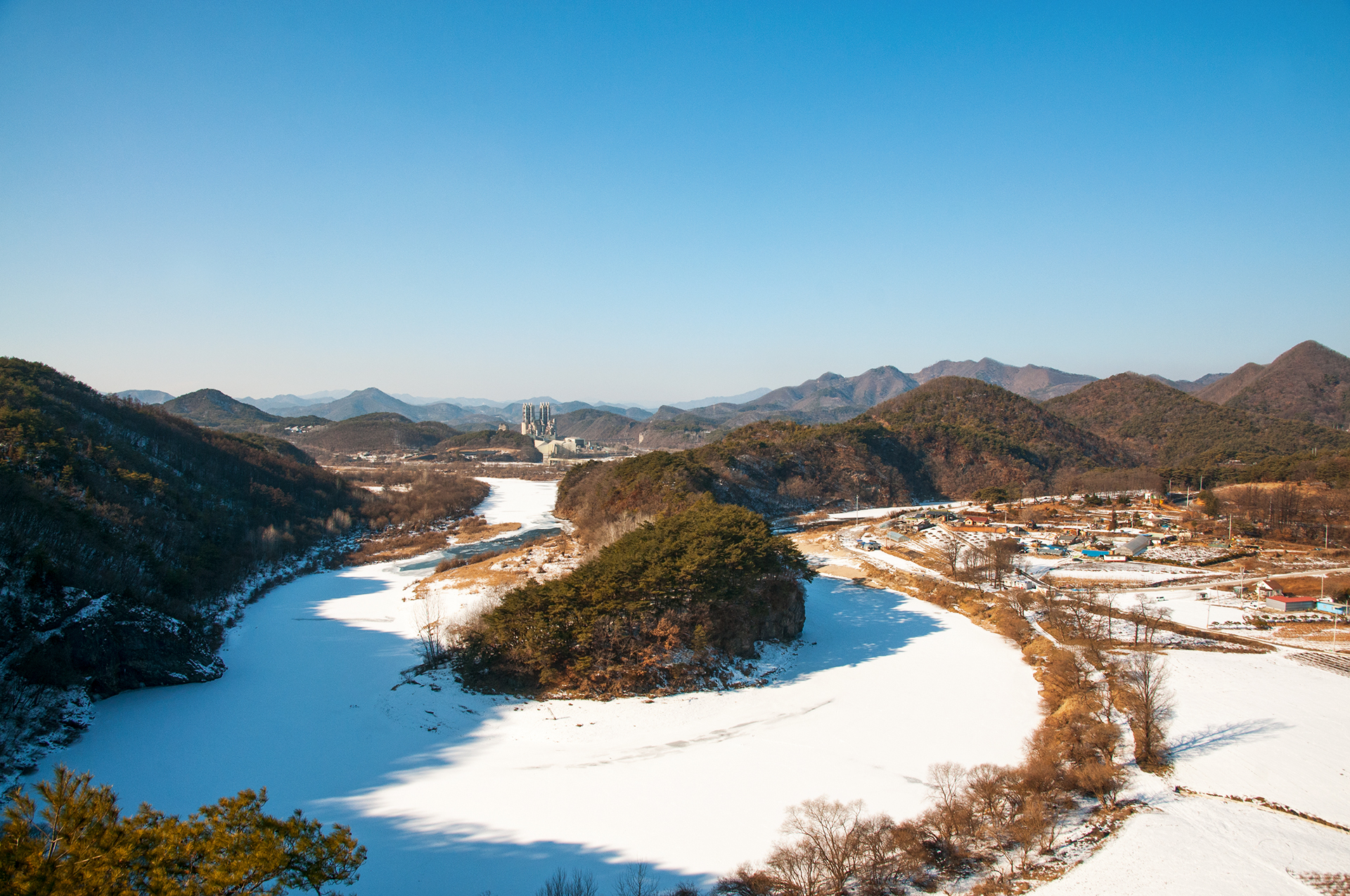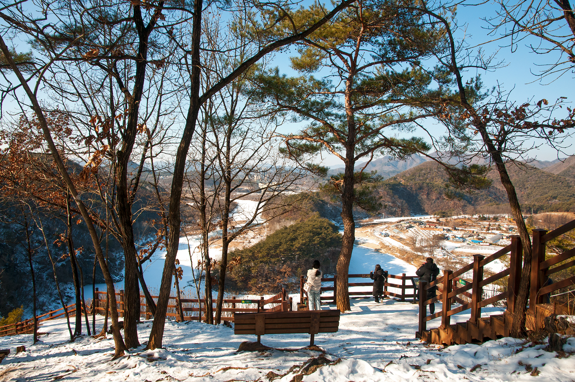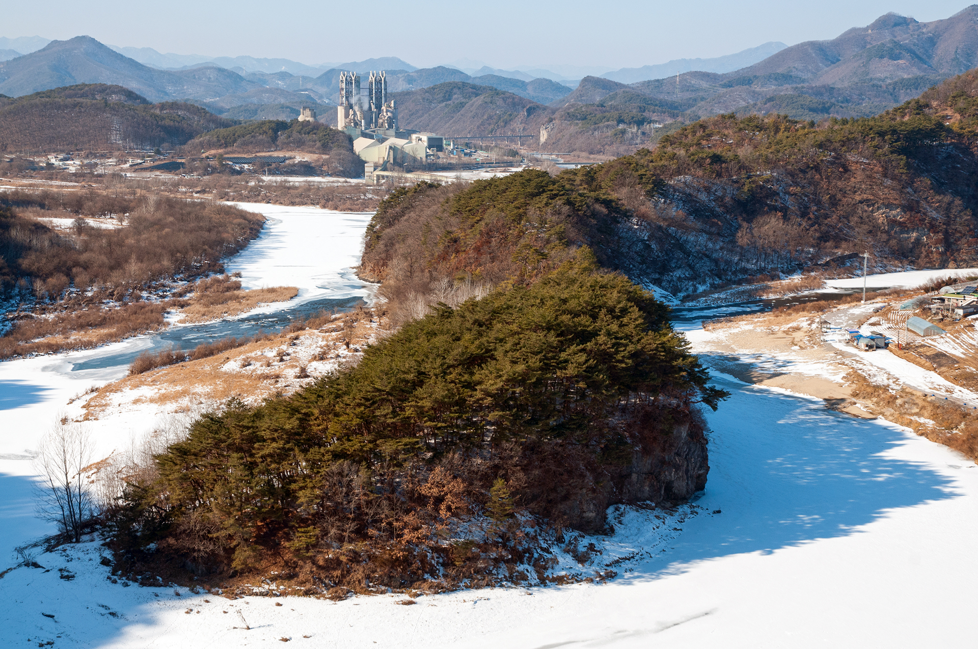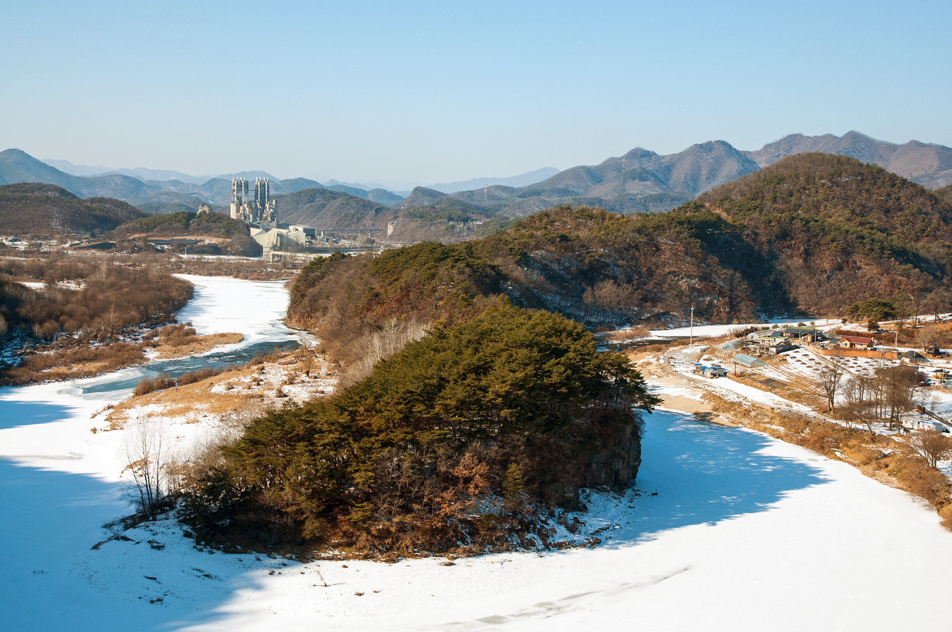 서강의 푸른 물은 추위에 꽁꽁 얼어 하얗게 변했지만, 층암절벽과 어우러져 마치 한국화를 보는 듯한 느낌을 준다.
