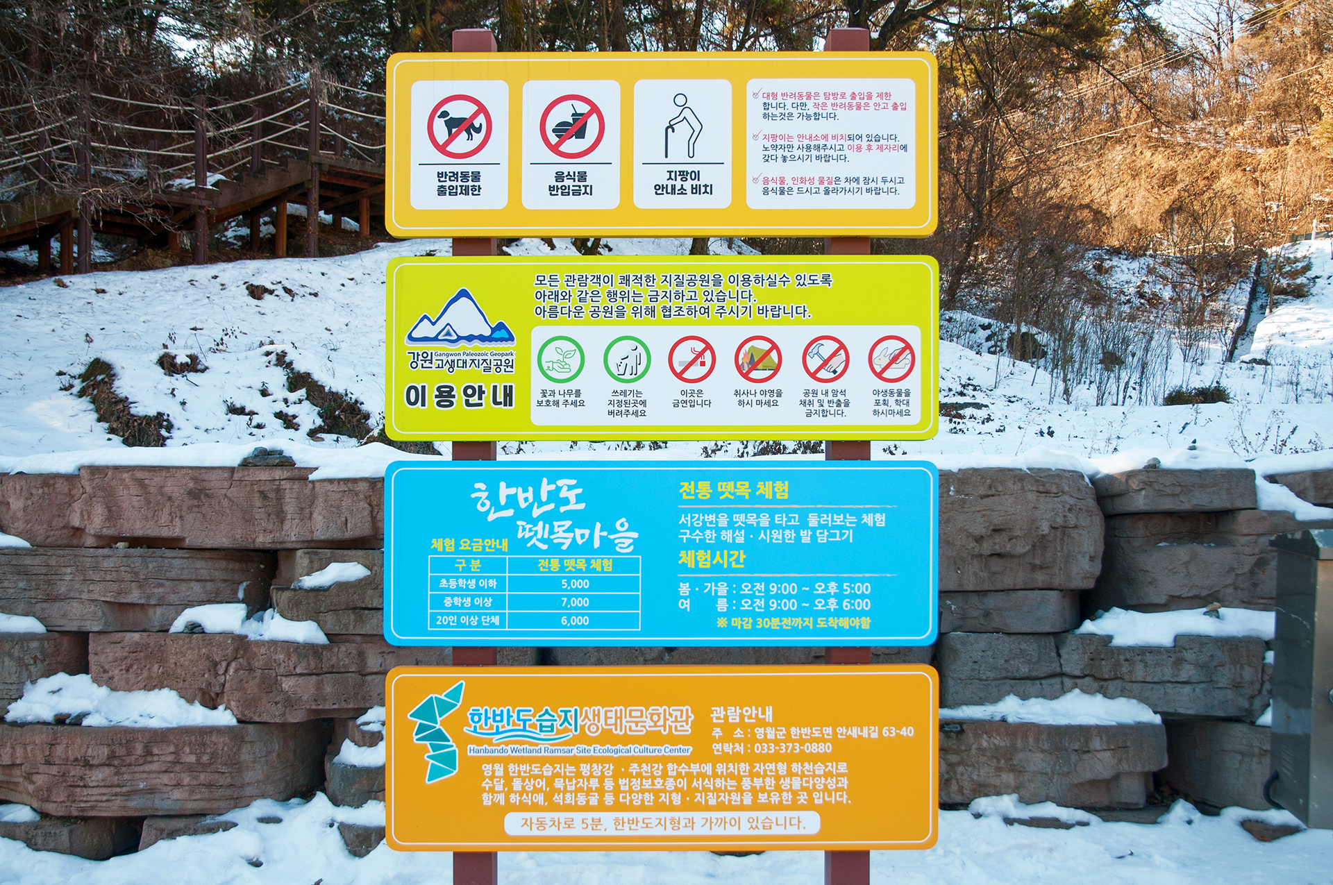 한반도 지형을 둘러싼 서강변을 뗏목을 타고 둘러보는 뗏목체험을 할수 있는데 겨울에는 운영하지 않는다.