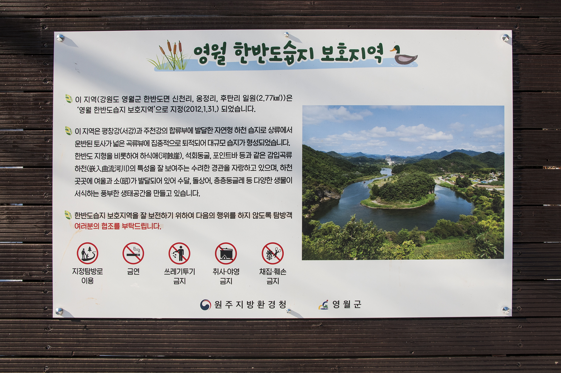 이 지역은 2012년 1월31일에 "영월 한반도습지 보호지역"으로 지정되었다고 한다.