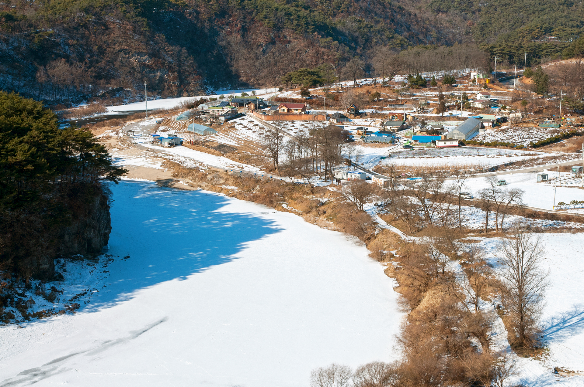 눈이 쌓인 서강은 동해, 서해, 남해 바다를 표현하기에 부족함이 없다.