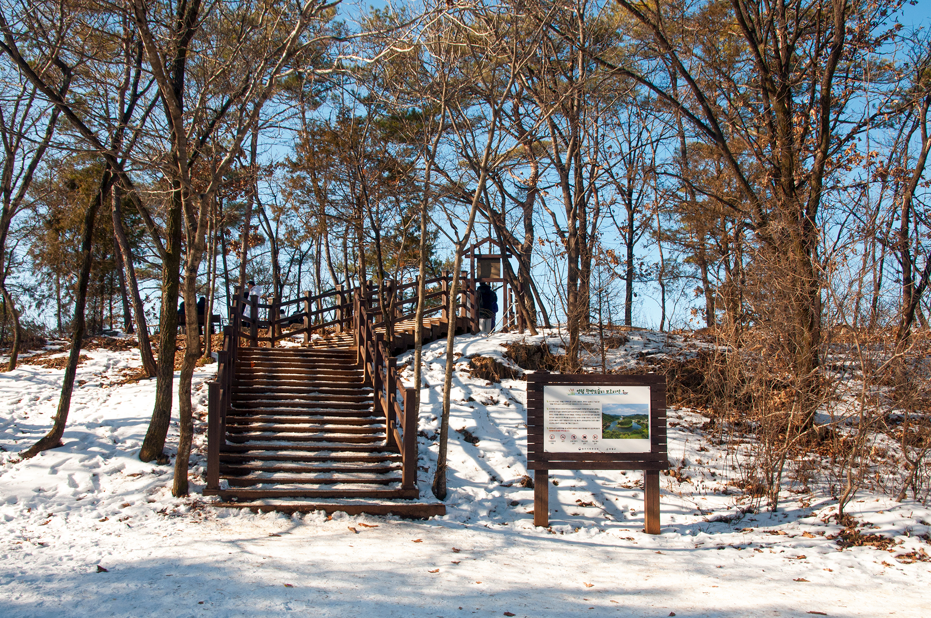 전망대에서 왼쪽 아래로 내려가는 데크계단이 새롭게 만들어져 있어 그리로 내려가 본다.
