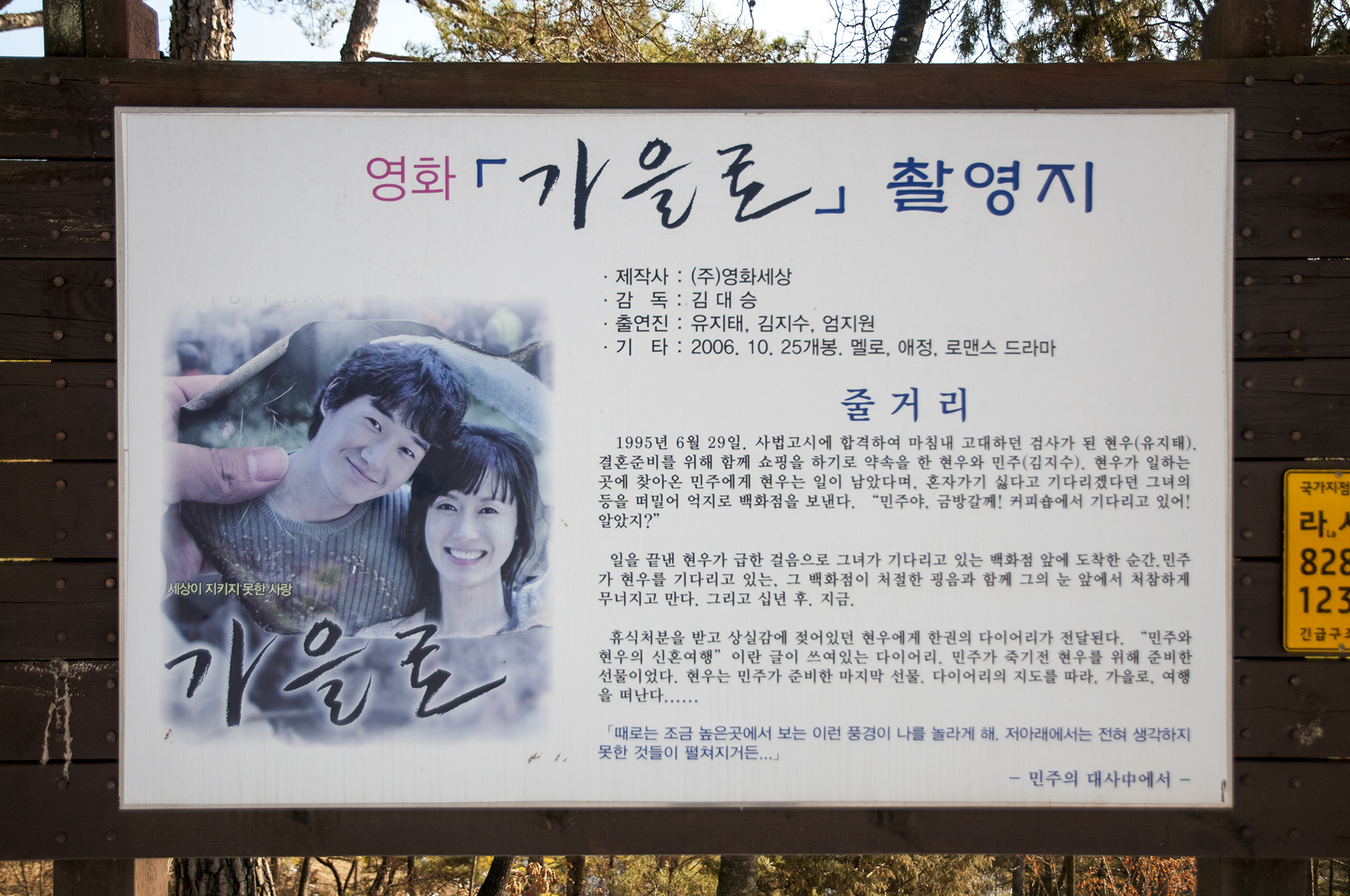 이곳은 영화 "가을로" 촬영지로 널리 알려지게 되었는데, 나 또한 첫 방문 당시에 영화를 보고 찾아갔었다.