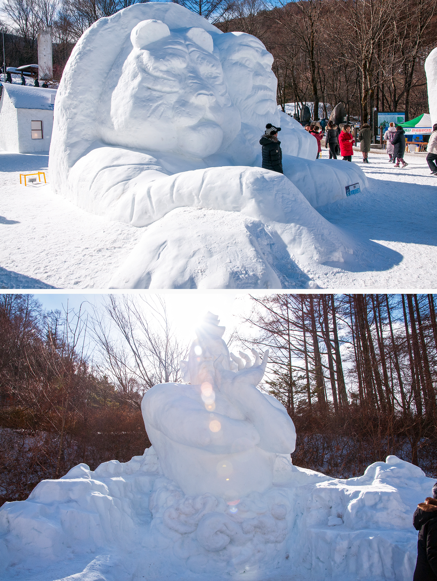이날은 태백 눈축제가 열리는 기간이라 많은 얼음조각 작품들을 만날수 있었다.