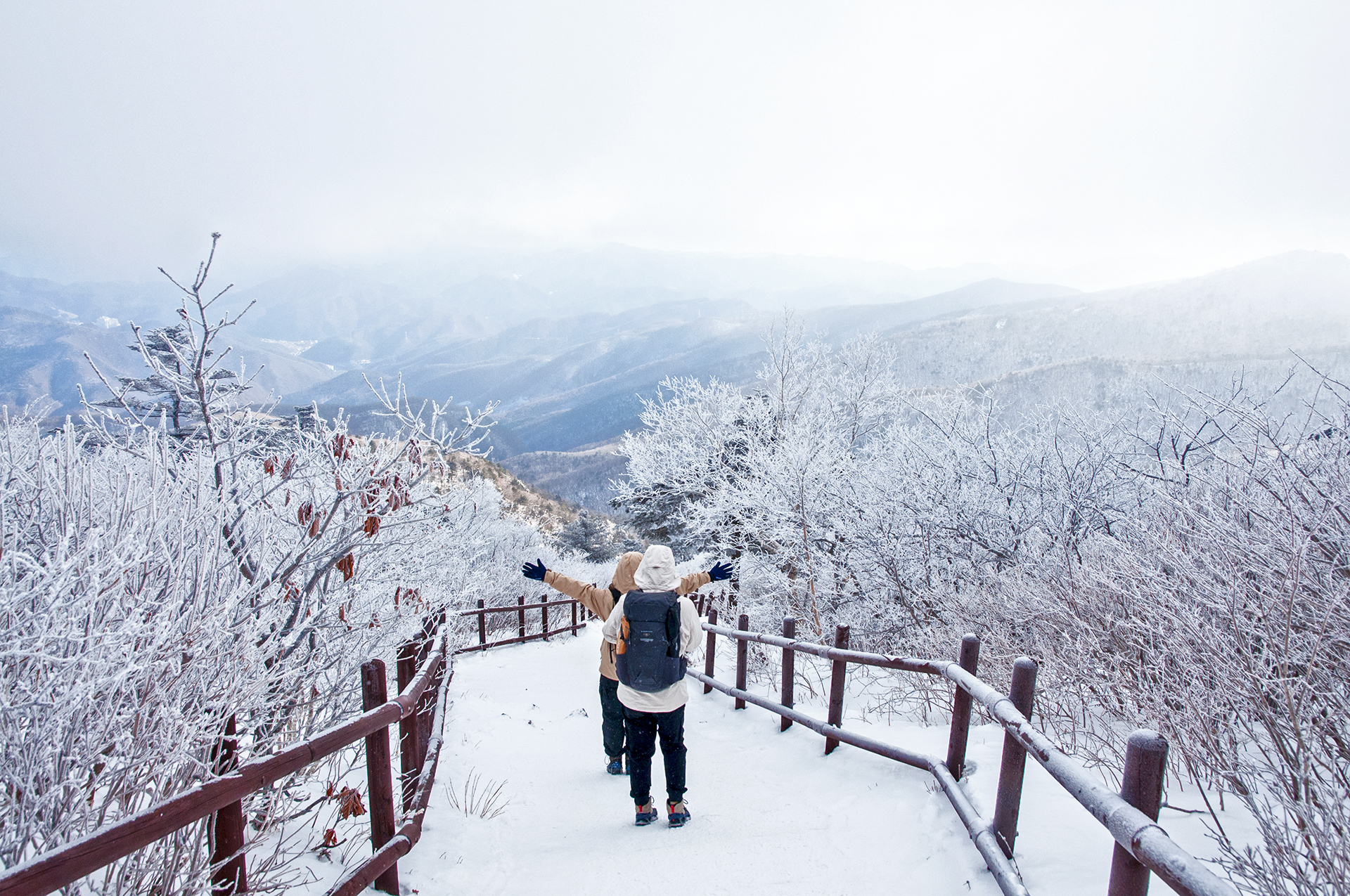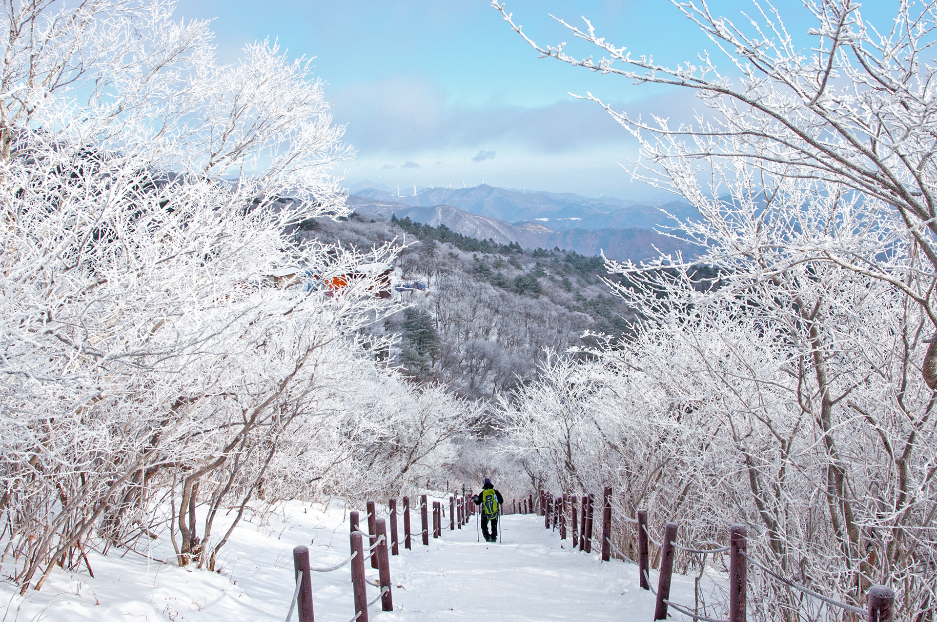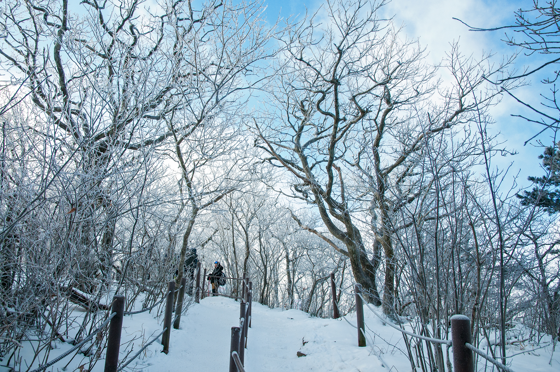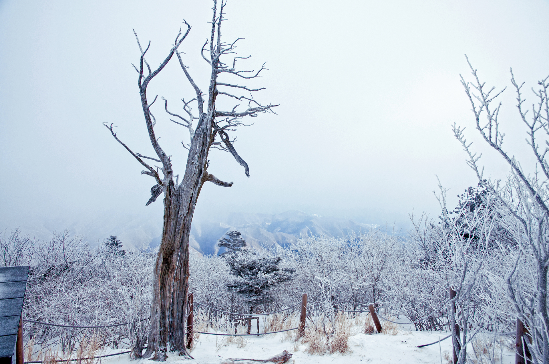 햐얀 눈꽃으로 뒤덮인 태백산의 겨울은 그야말로 장관이라 할수 있다.