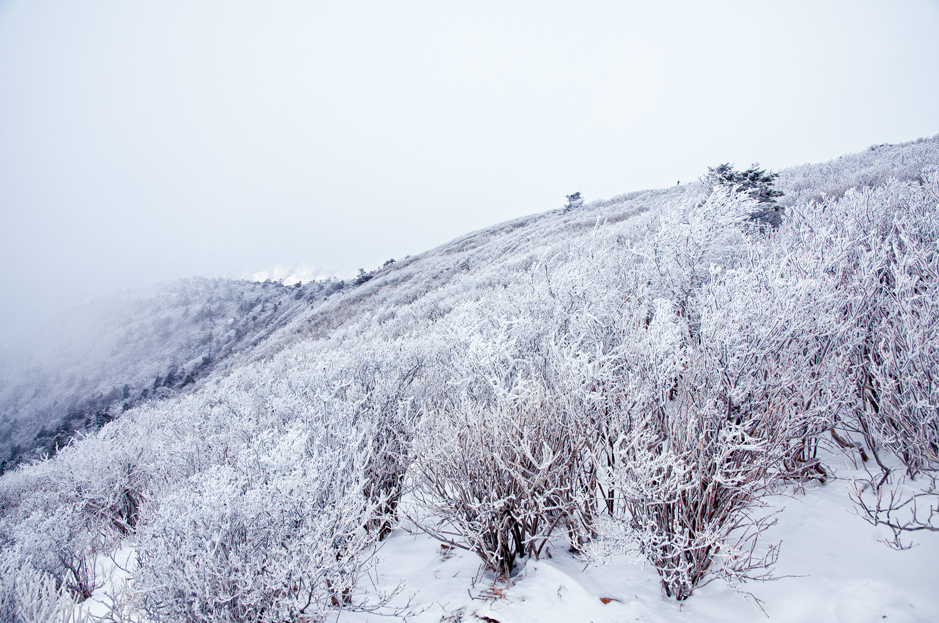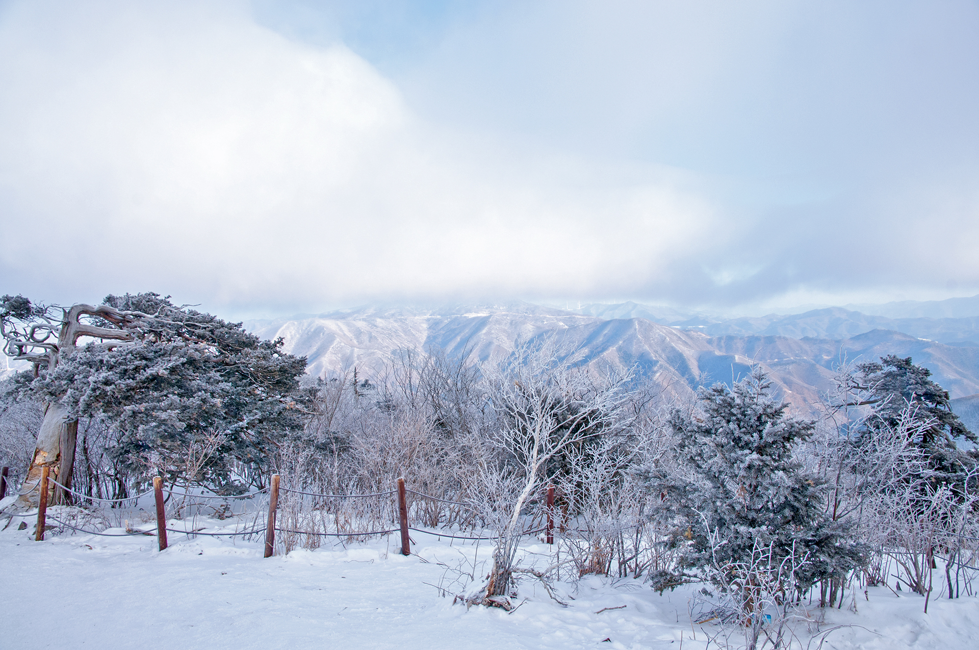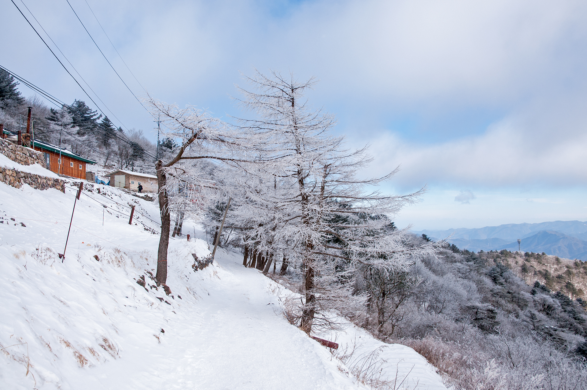 해가 구름사이로 들어갔다가 잠시 나오기라도 할때면 멋진 눈꽃이 반짝반짝 빛나게 된다.