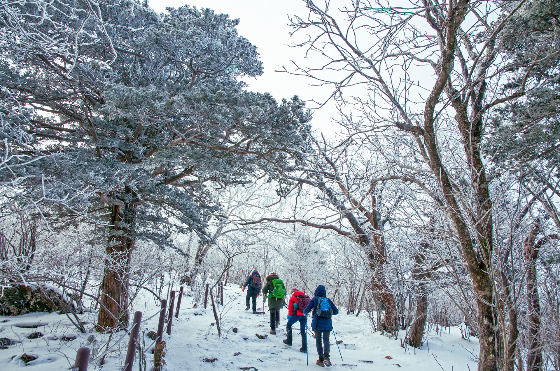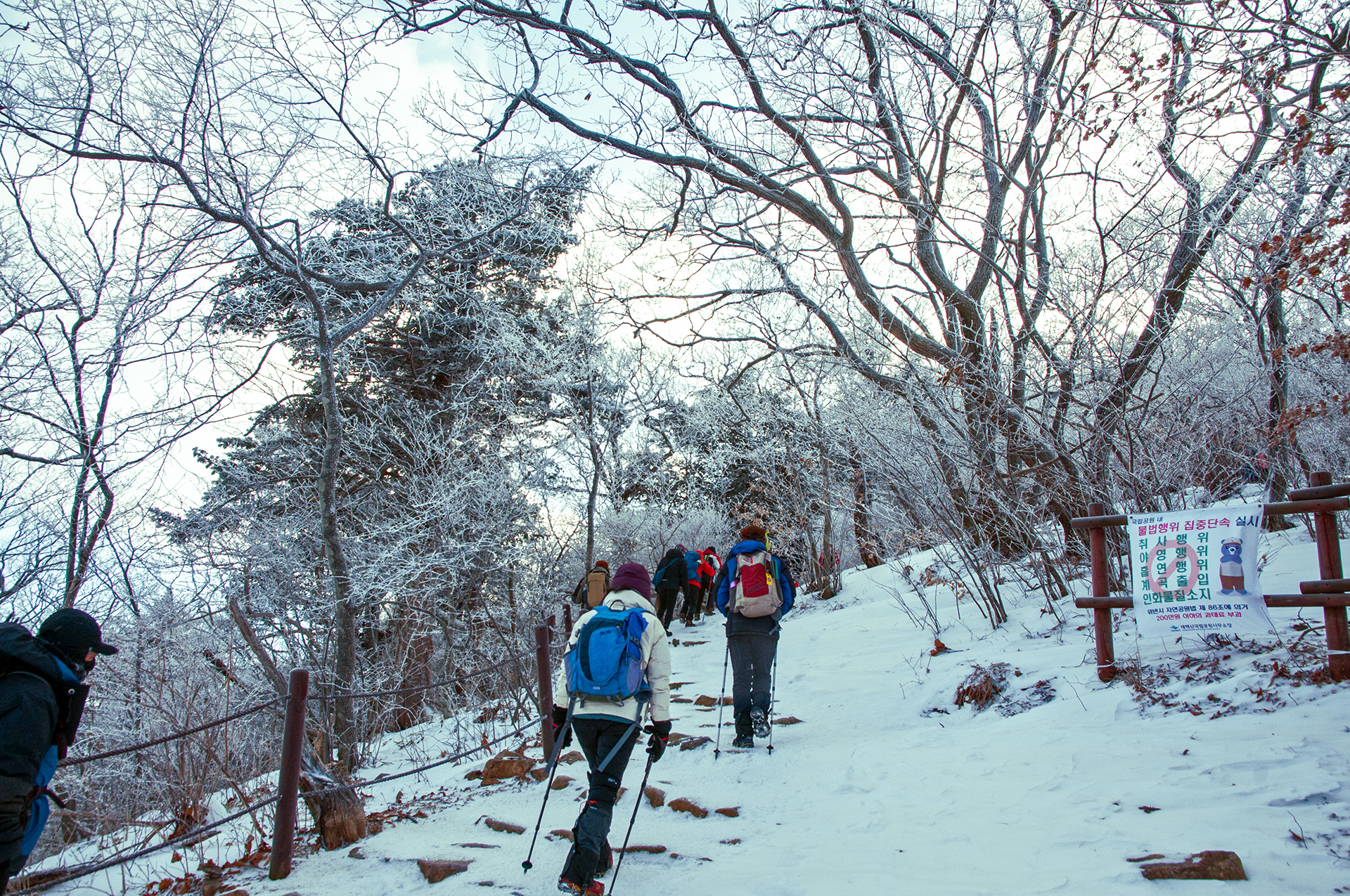 겨울 산행으로 워낙 인기가 높다보니 산객들이 줄서서 올라갈 정도로 많은 인파가 몰리는 곳이라 일찍 출발해 이른 아침 주차장에 도착했다.