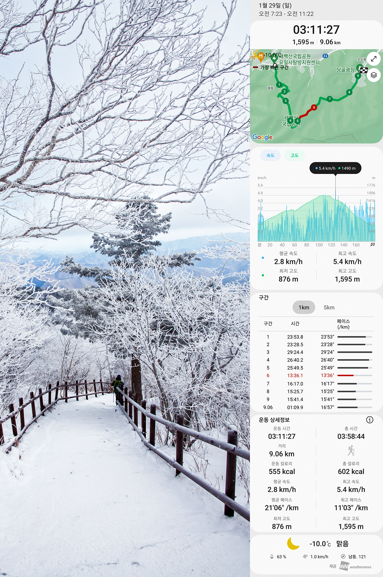 실제 걸은거리는 촬영 때문인지 9.06km로 늘어났고, 3시간58분이 기록되었다.