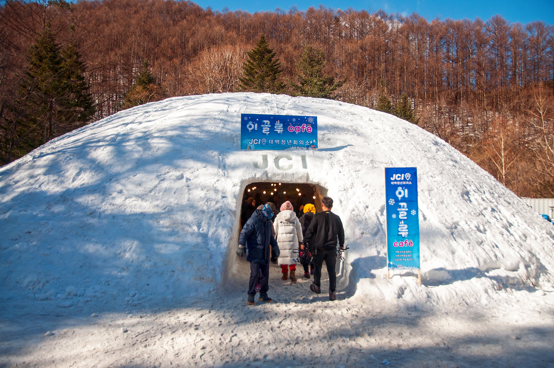 이글루 카페가 열려있어 잠시 안에 들어가보니 생각보다 따뜻했지만, 사람이 너무 많아 여유있게 커피 한잔 마실수 있는 장소로는 부적합했다.