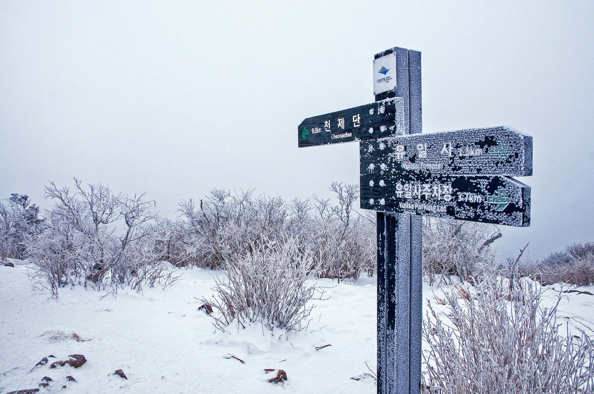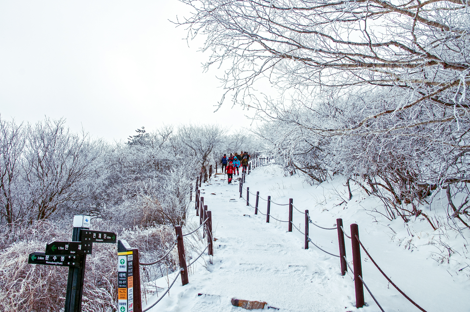 천제단까지는 비록 300m의 짧은 거리지만 겨울이면 최고의 풍경을 보여주는 능선길이다.