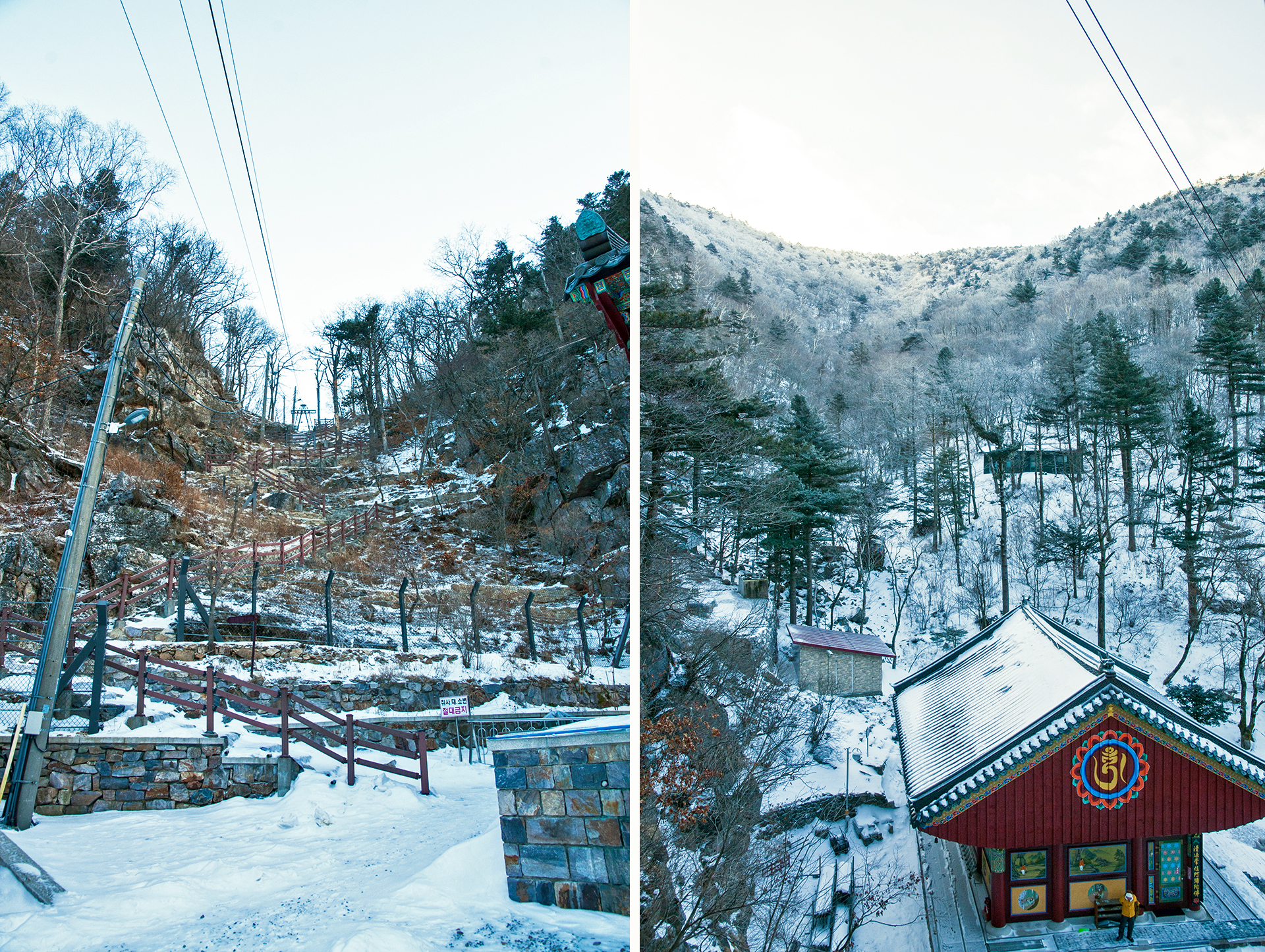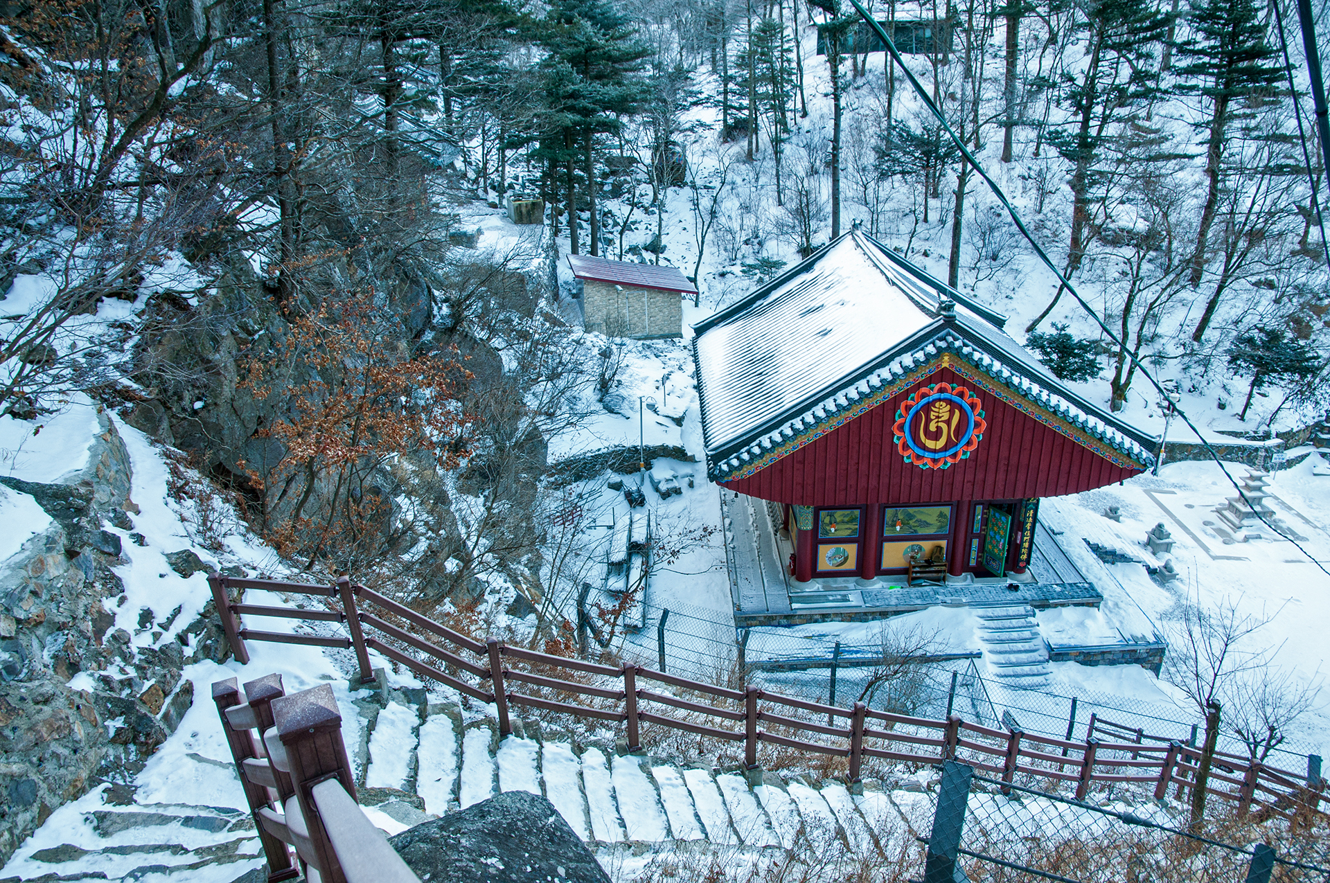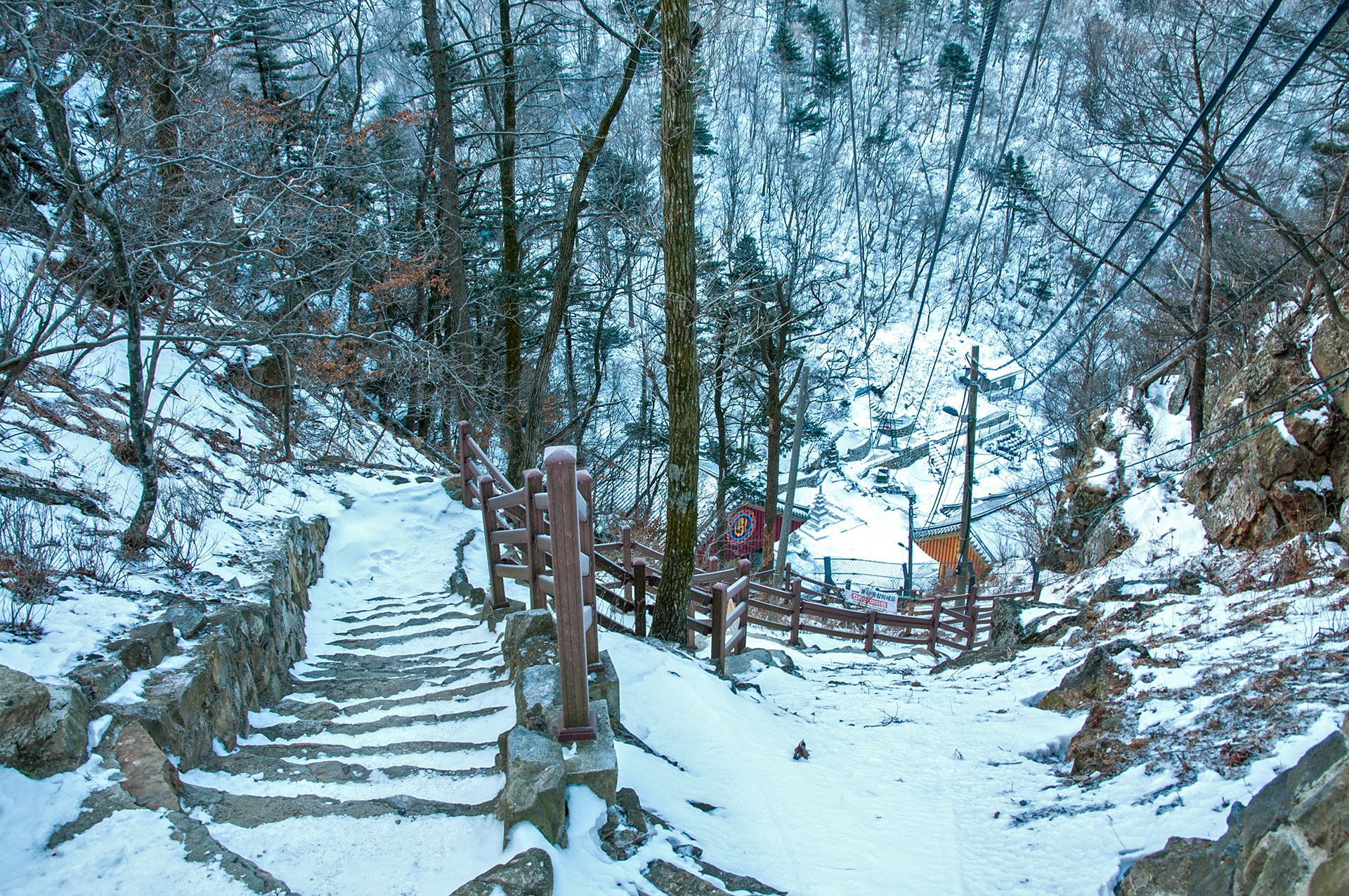 유일사 쉼터에서 유일사까지는 100m 거리지만 이렇게 가파른 돌계단을 내려갔다가 다시 올라와야 한다.