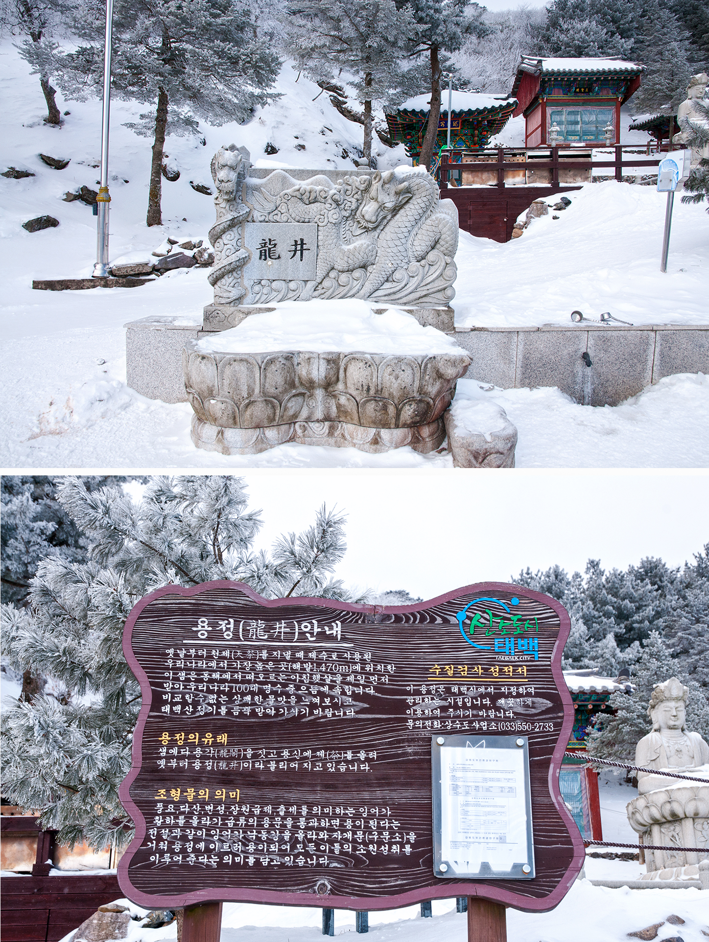 동해에서 떠오르는 아침햇살을 제일 먼저 받아 우리나라 100대 명수 중 으뜸에 속한다. 비교할수 없는 상쾌한 물맛을 느껴보고 태백산 정기를 듬뿍 받아 가라는 안내글이 있다.