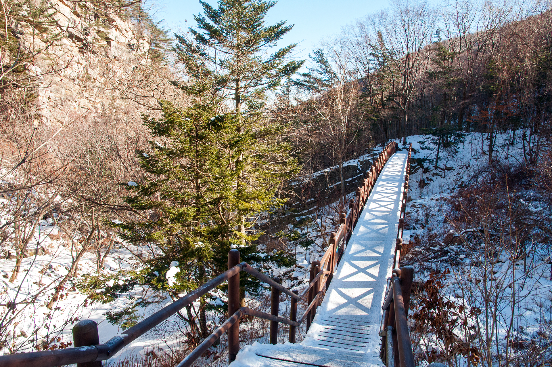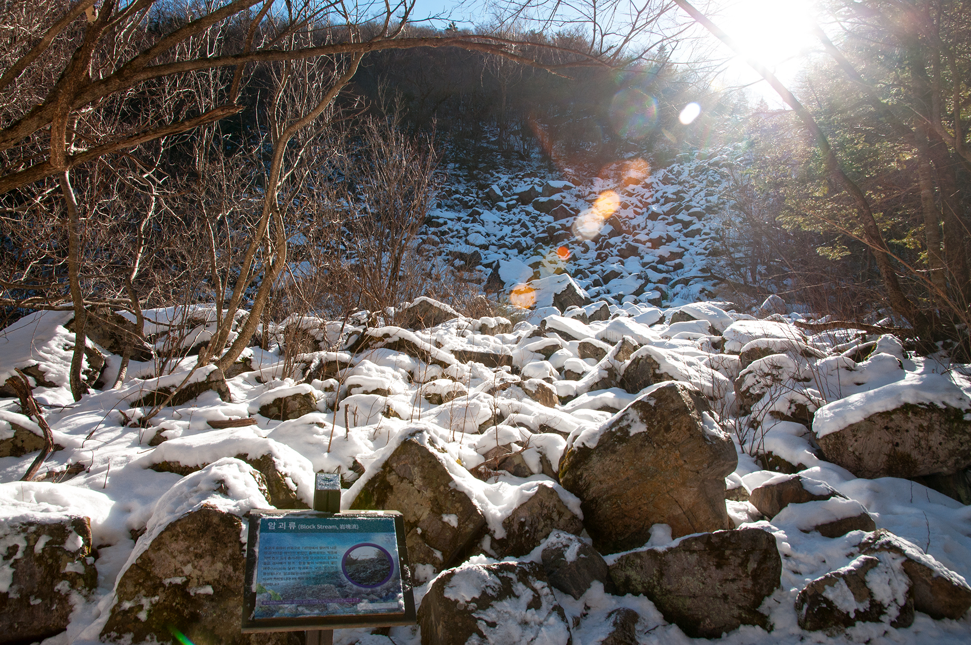 계곡 아래에서 매서운 바람이 눈도 뜰수 없을 정도로 몰아친다. 그런 이유에서인지 아무도 가는 사람이 없었다.